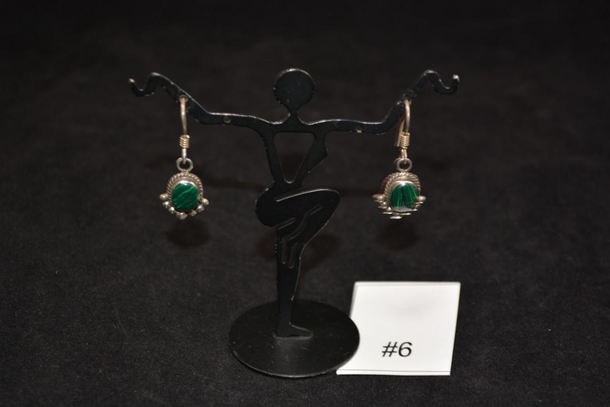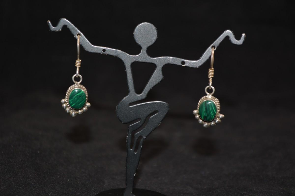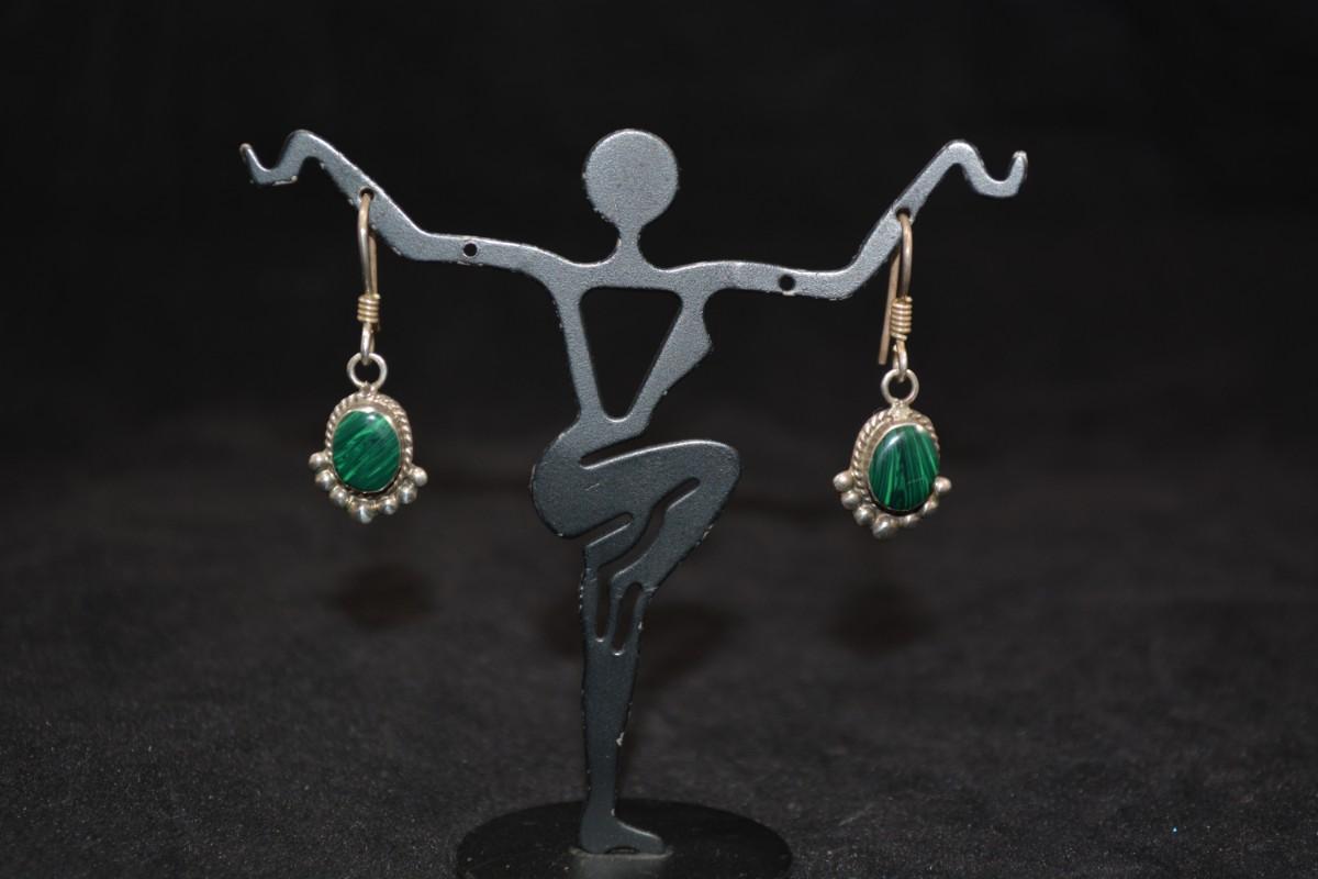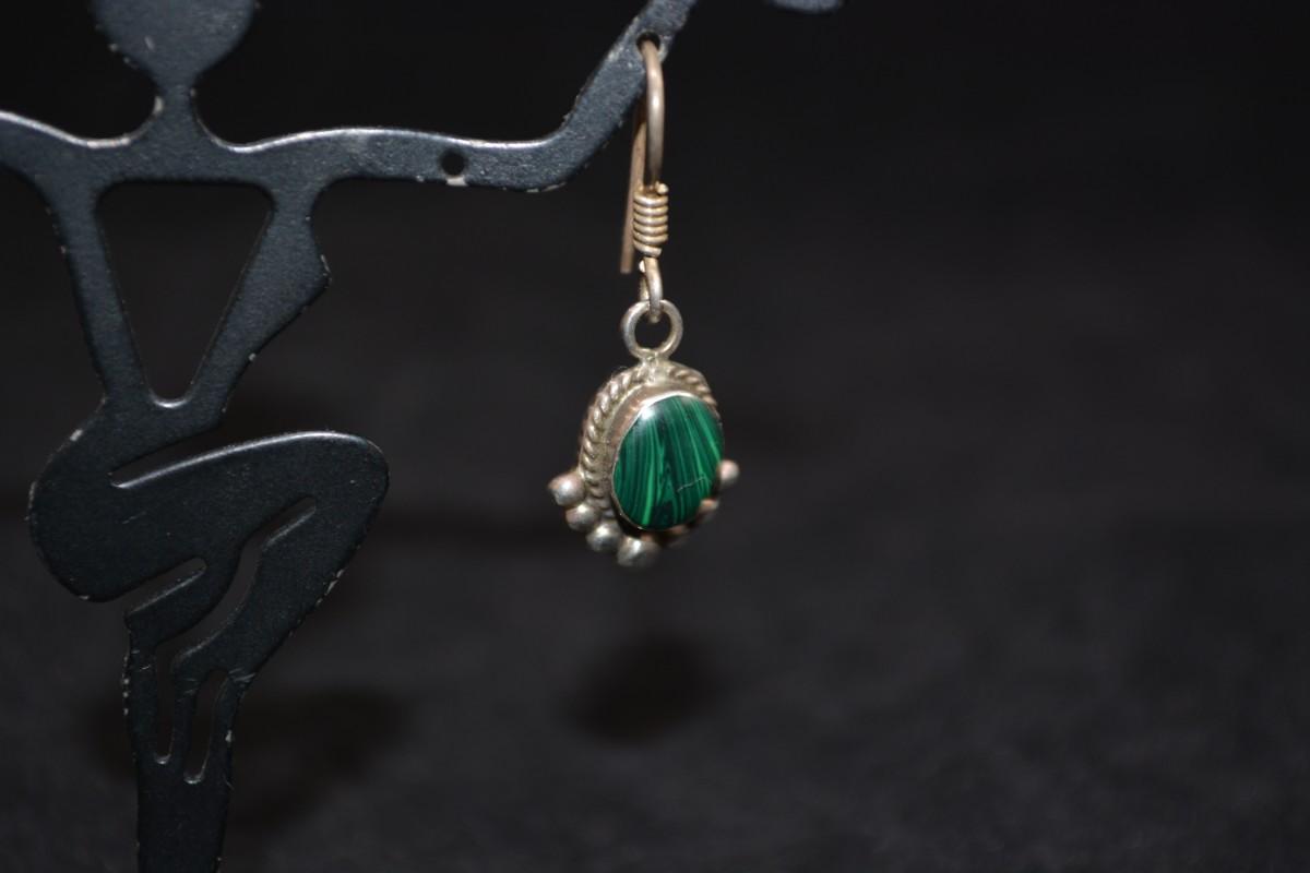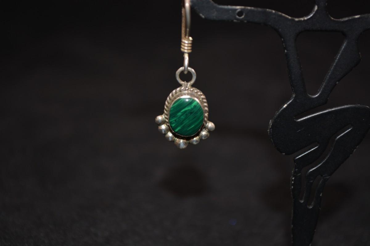 925 Sterling Drop Earrings w/ Malachite 3.7g