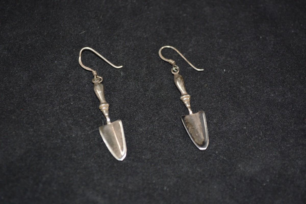 925 Sterling Garden Trowel Drop Earrings 3.2g