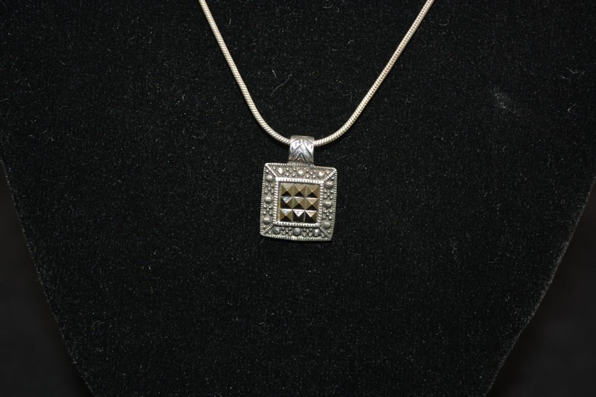 925 Sterling Marcasite Pendant w/ 925 Serpentine Chain 16”/18”, 4.5g