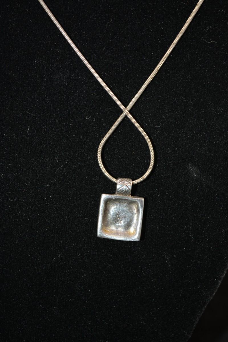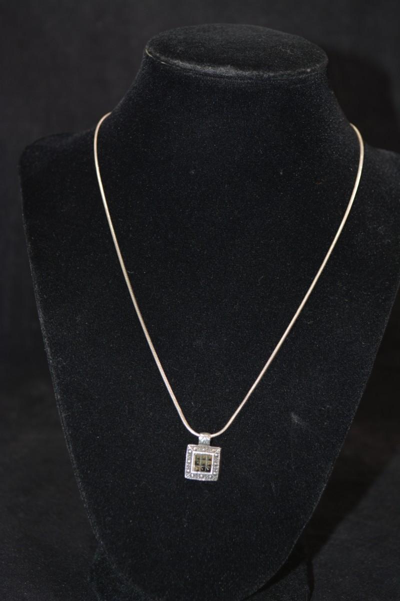 In good condition, no flaws to note. The chain and pendant are stamped 925, all jewelry is tested prior to the auction.