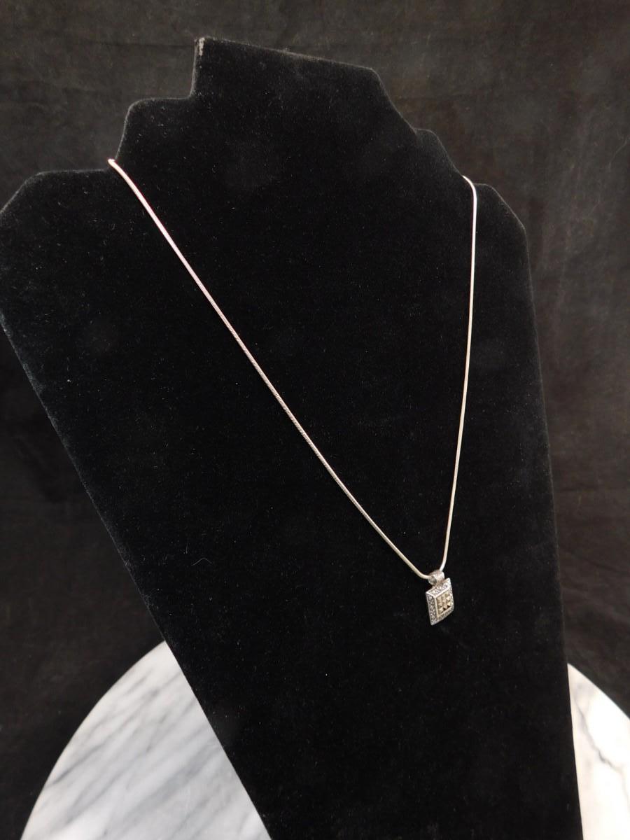 925 Sterling Marcasite Pendant w/ 925 Serpentine Chain 16" - 5.4g