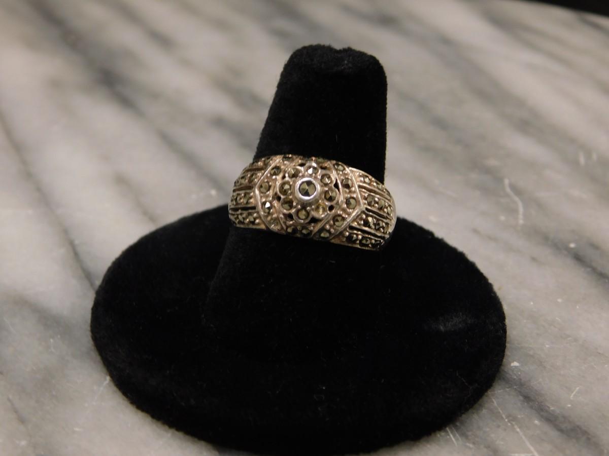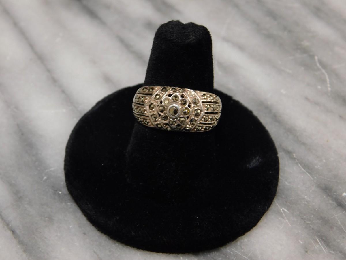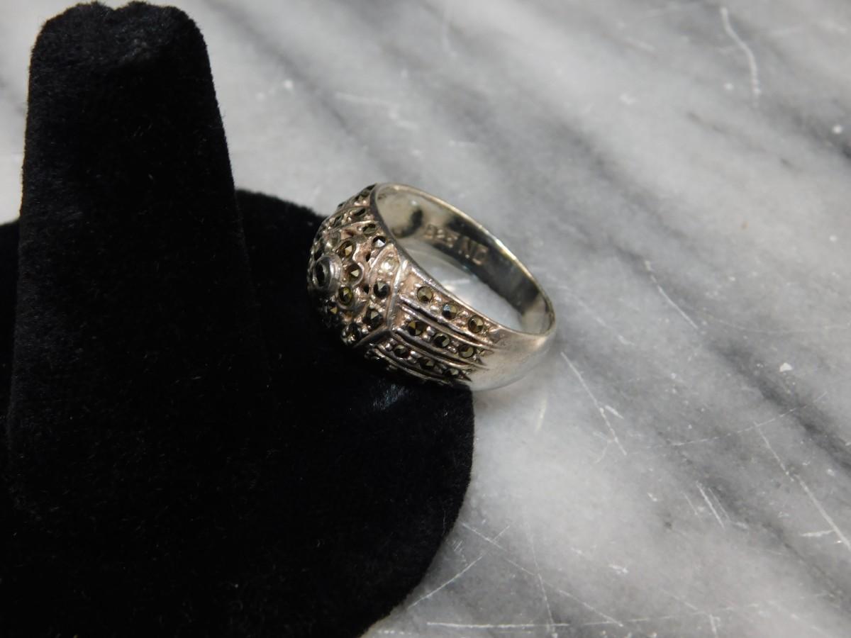 925 Sterling Marcasite Ring Size 8 - 4.5g