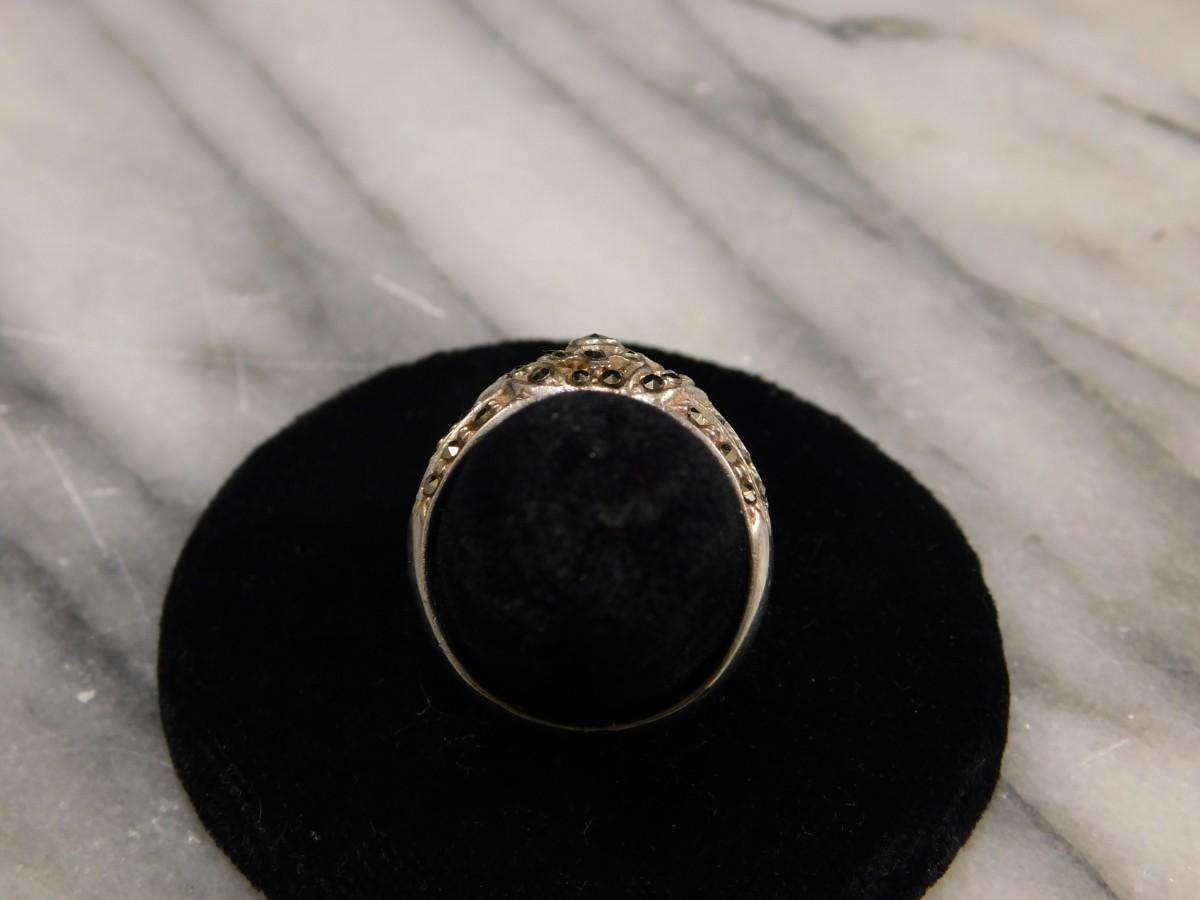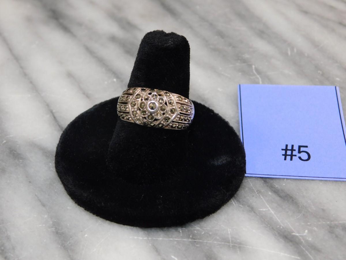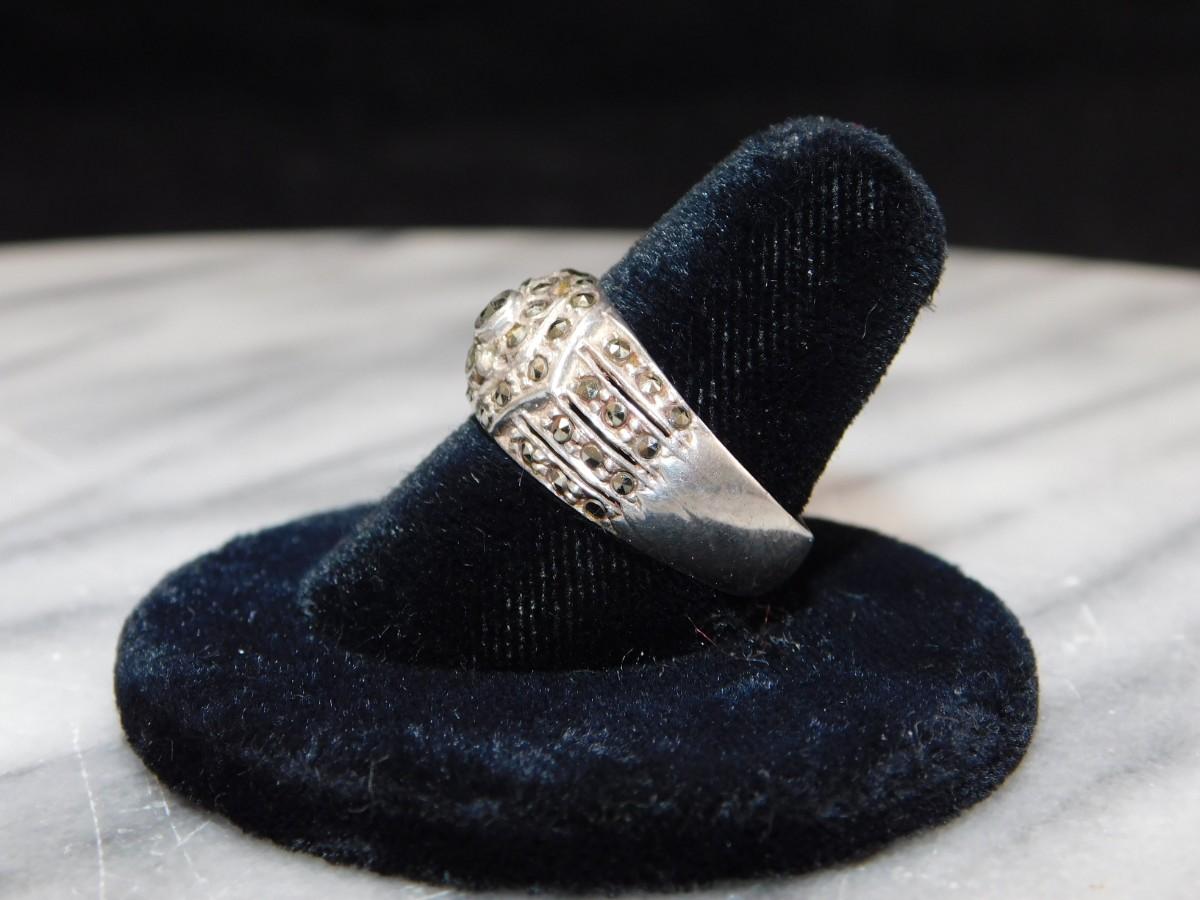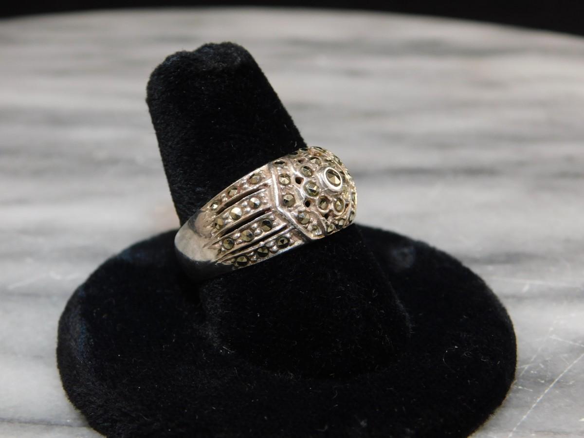 925 Sterling Marcasite Ring Size 8 - 4.5g
