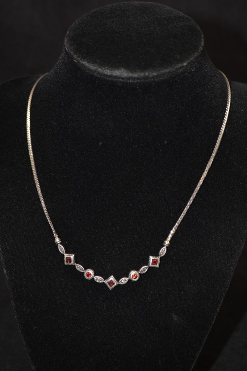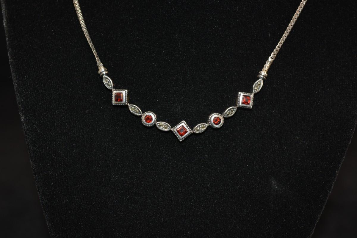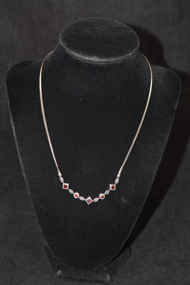 925 Sterling Necklace w/ Tourmaline 18”, 9.3g