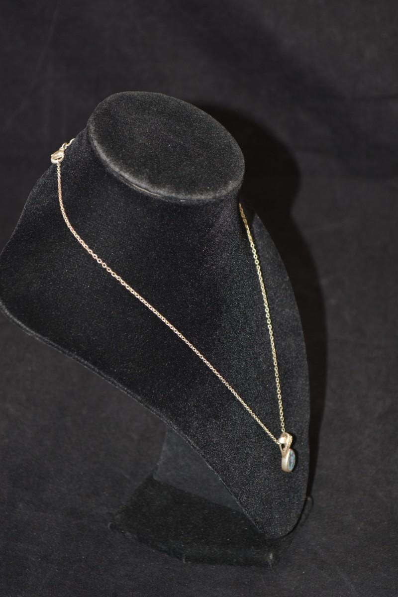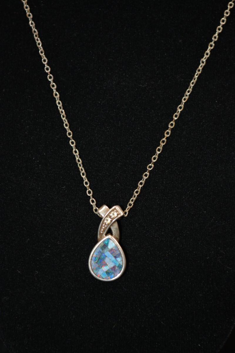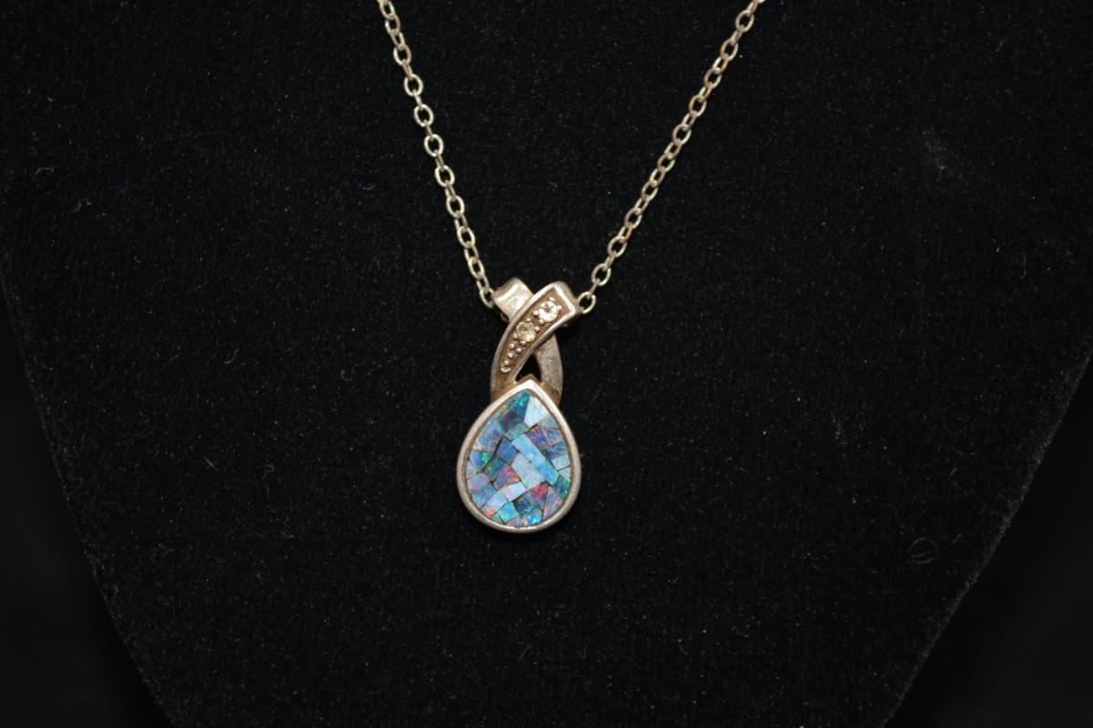 925 Sterling Pendant w/ Opal & Diamond Chip, Sterling Chain 18”, 4.0g