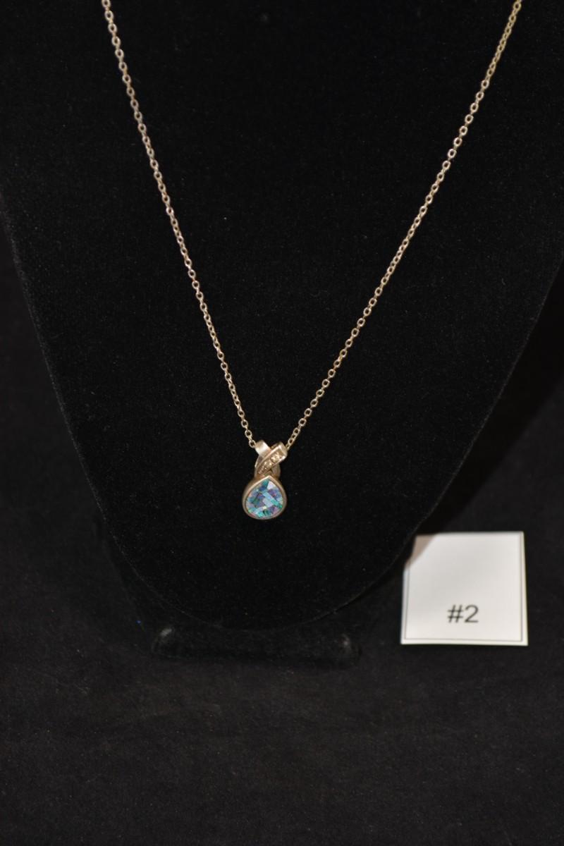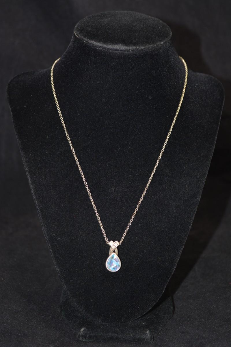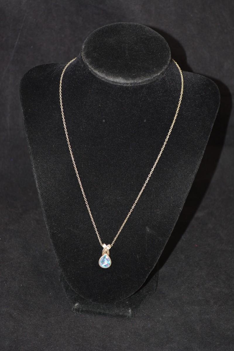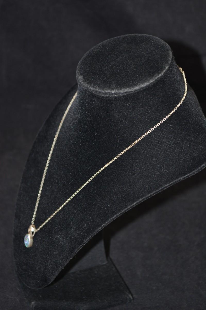 925 Sterling Pendant w/ Opal & Diamond Chip, Sterling Chain 18”, 4.0g