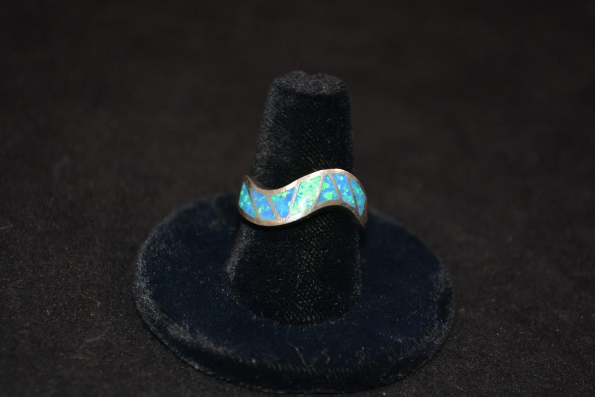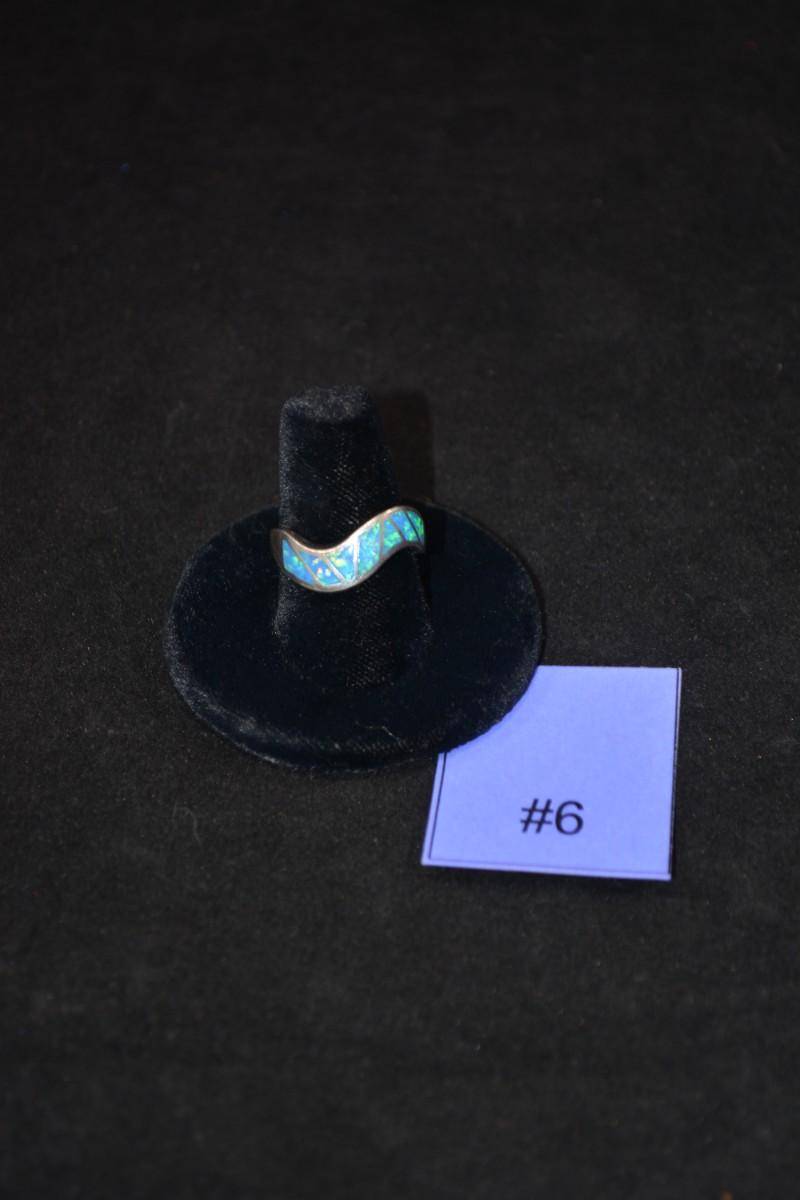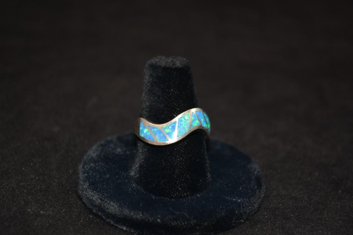 925 Sterling Ring w/ Opal Chips in Resin Size 8, 5.3g