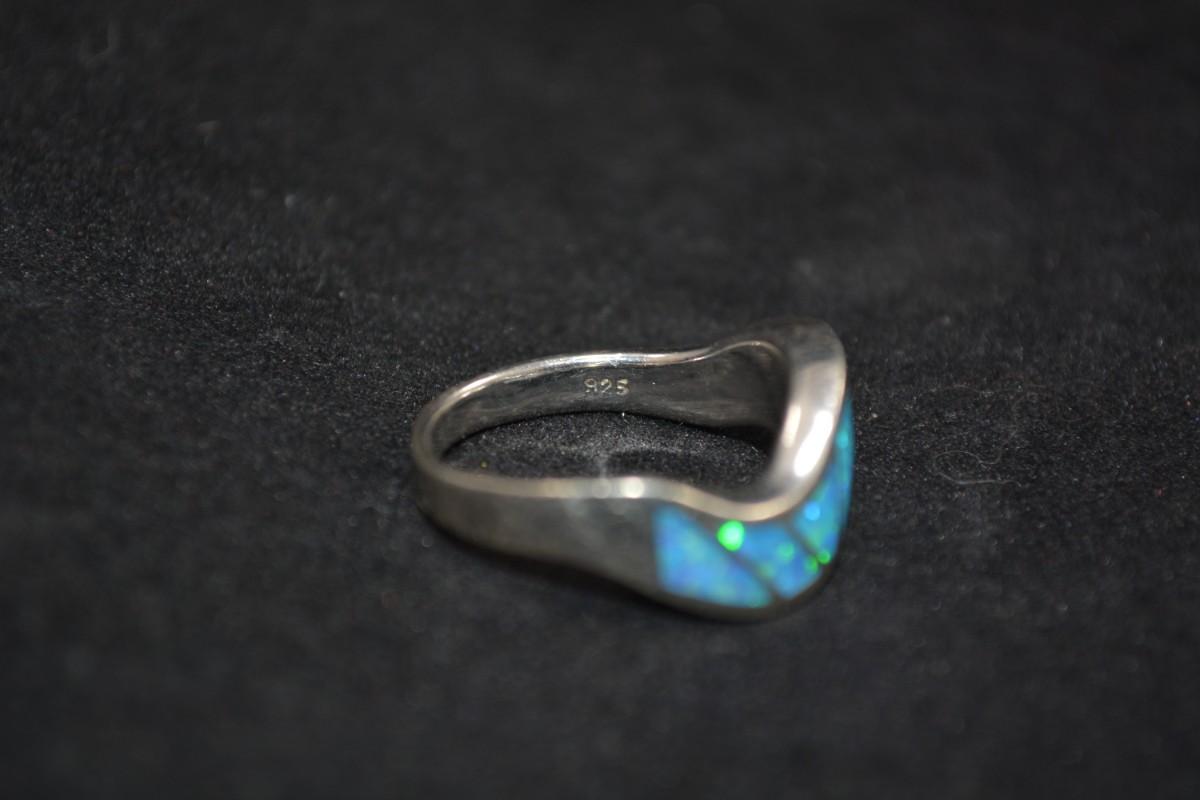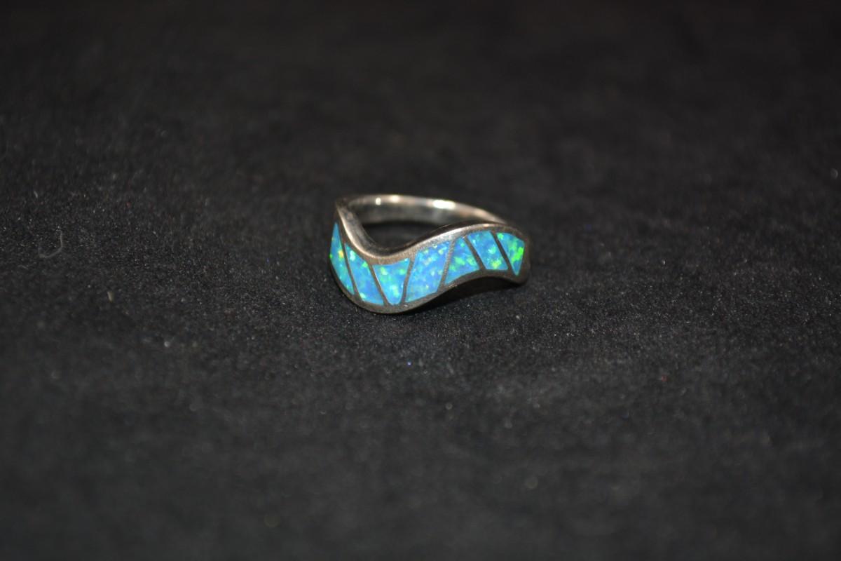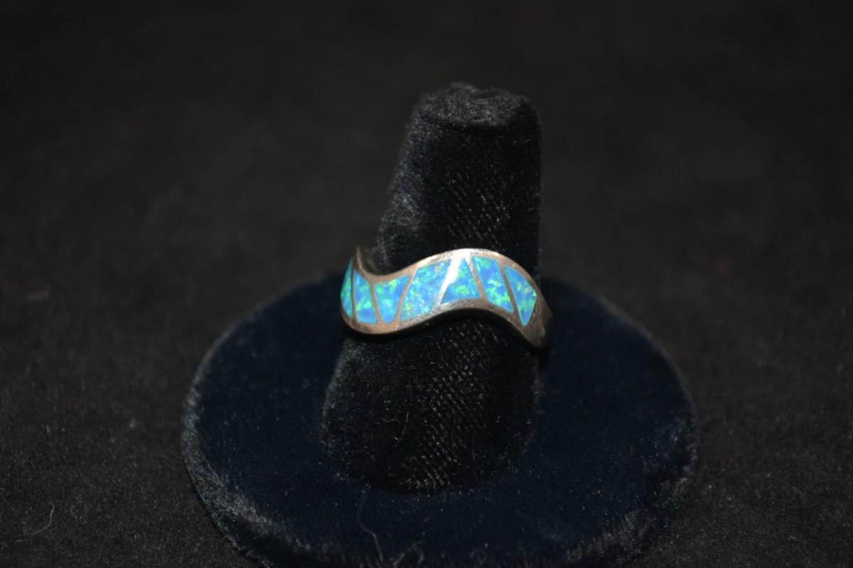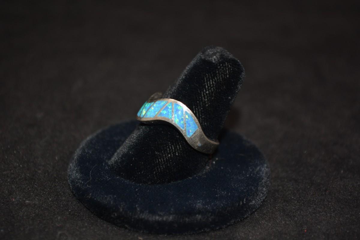925 Sterling Ring w/ Opal Chips in Resin Size 8, 5.3g