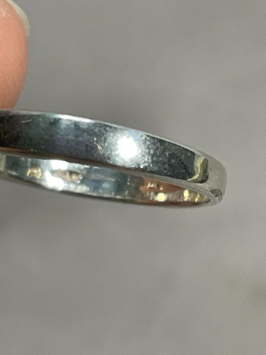 Pretty everyday ring that is a size 6. It weighs about 2.61 grams and is marked 925.