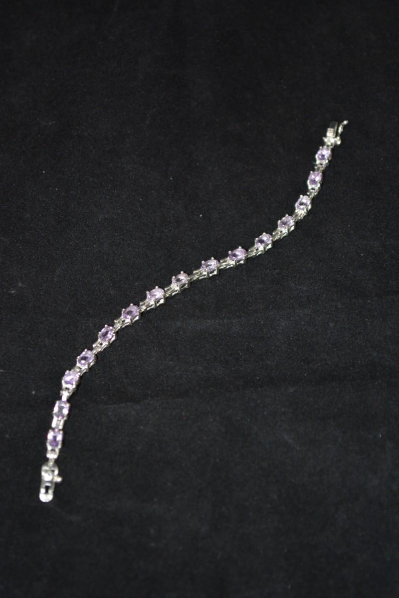 925 Sterling Silver & Amethyst Tennis Bracelet 7”, 8.9g