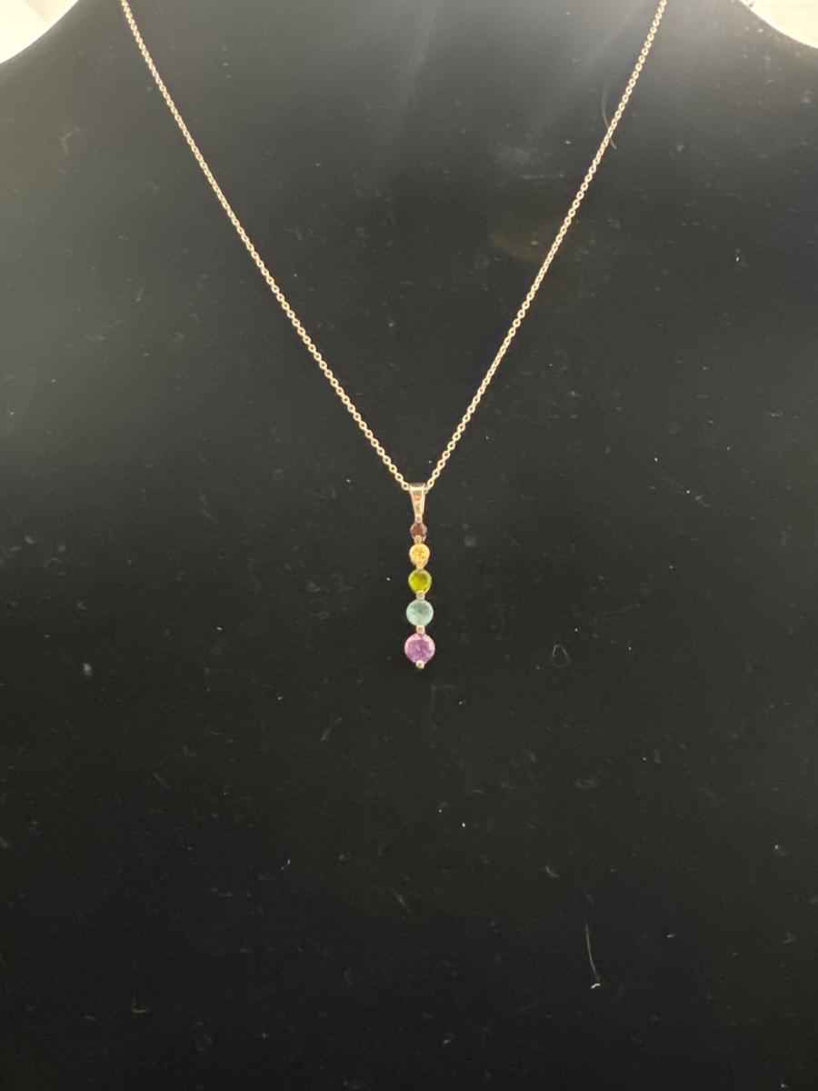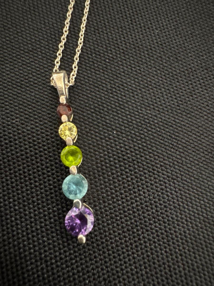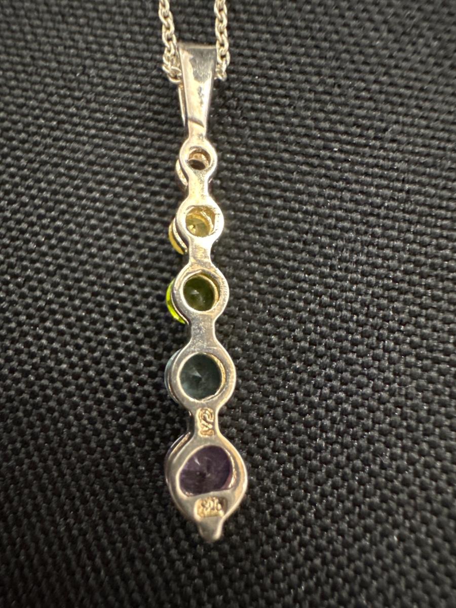 925 Sterling silver chain and 925 pendant with Multicolored gemstones