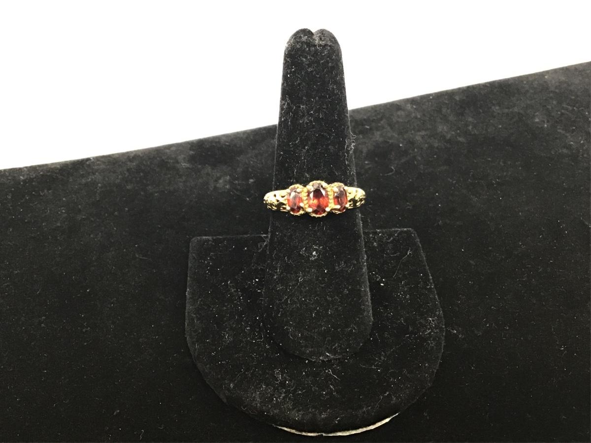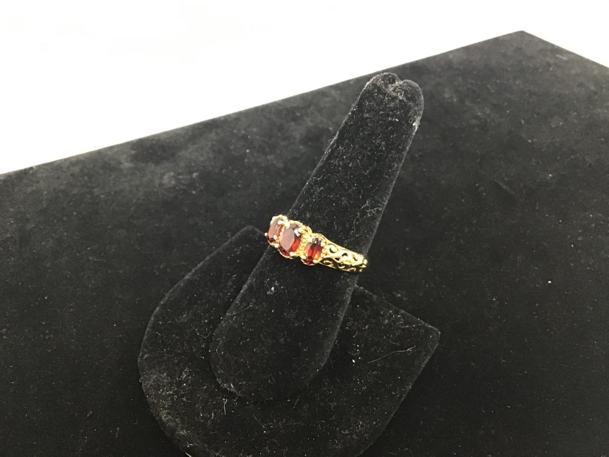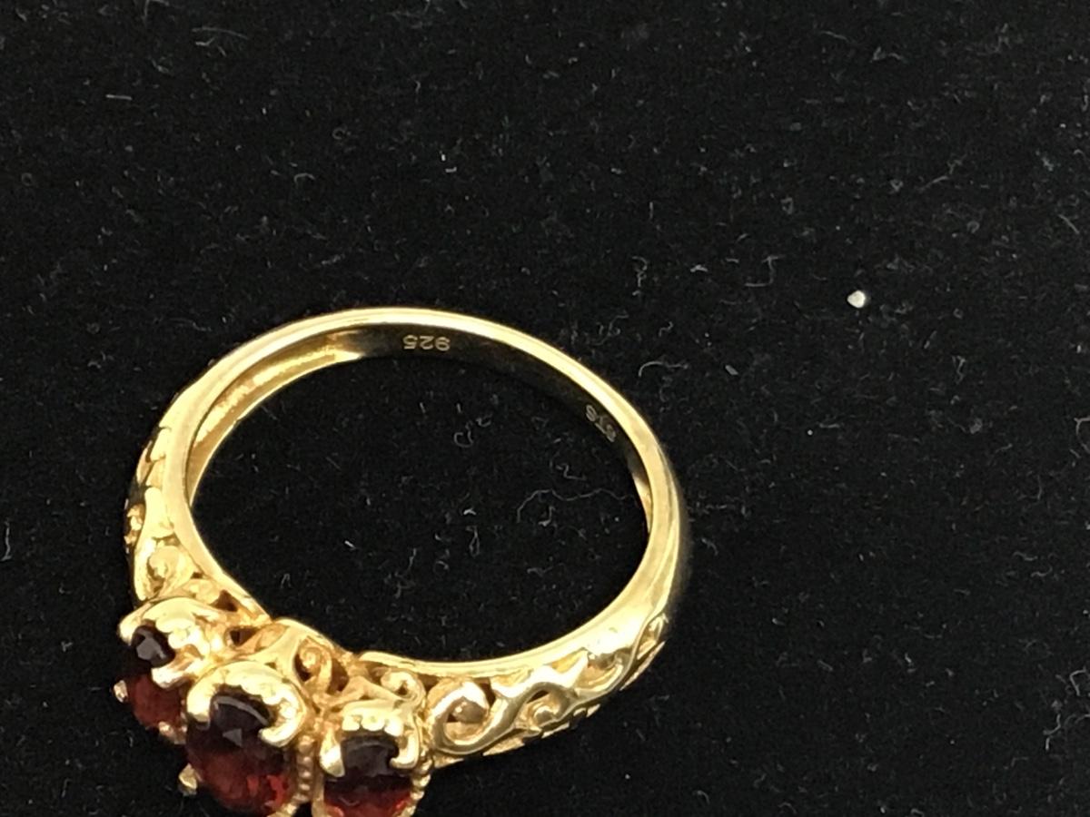925 Sterling Silver Gold Plated Ruby Red Gemstone Vintage Oval