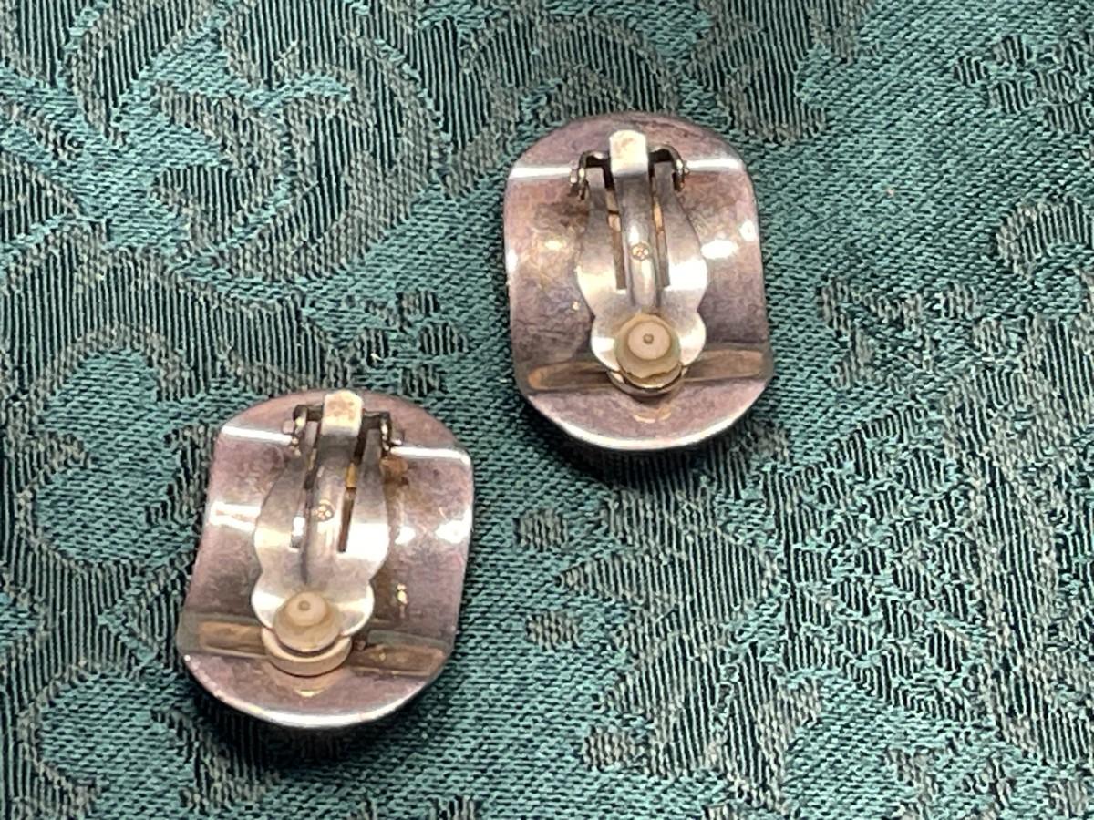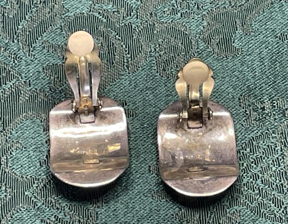 These are marked 925 and are about 1.25" long. Total weight is about 8 grams.