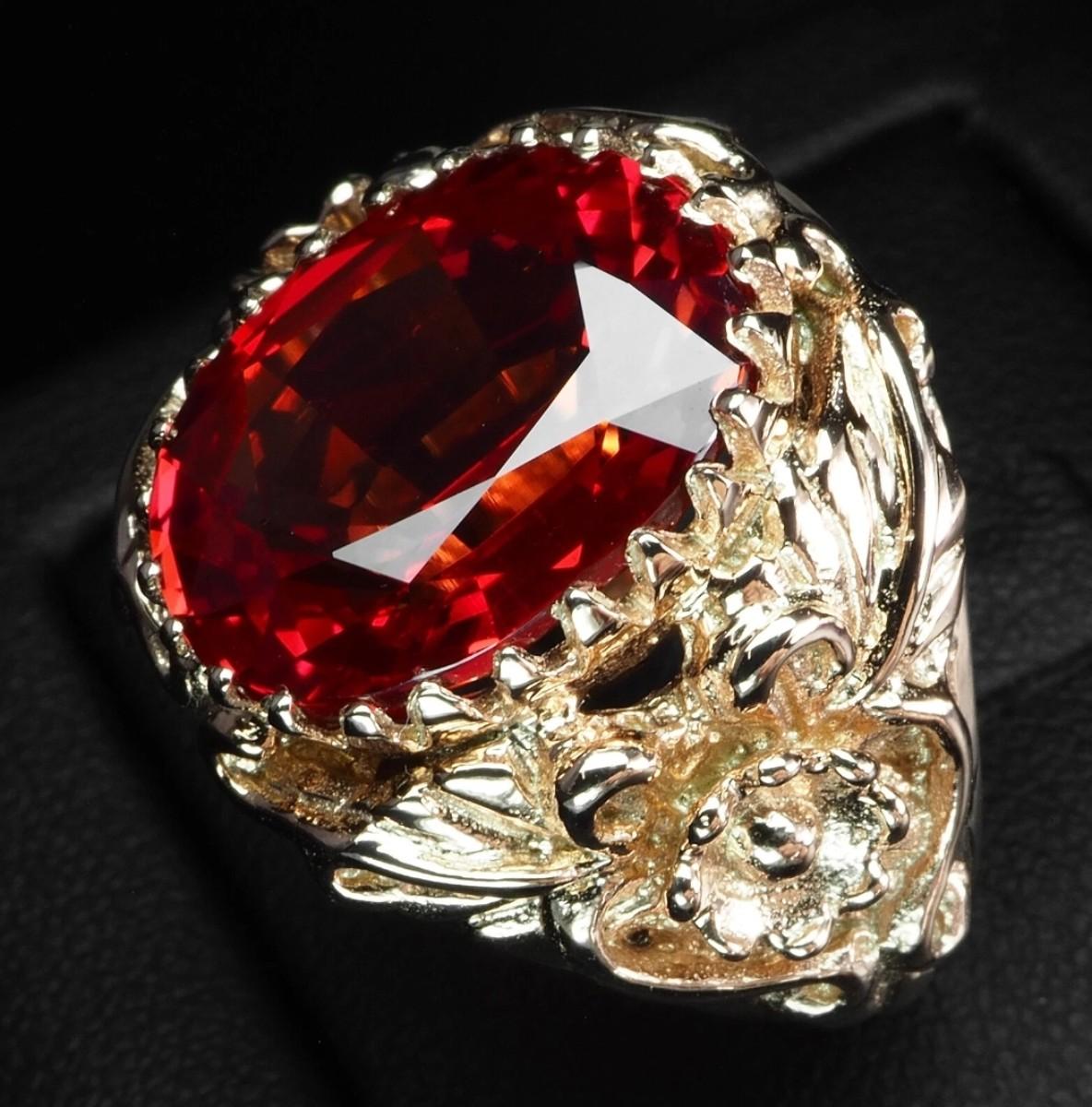925 Sterling Silver Rose Gold Plated Rings Estate Sunset Orange Sapphire 13.50Ct