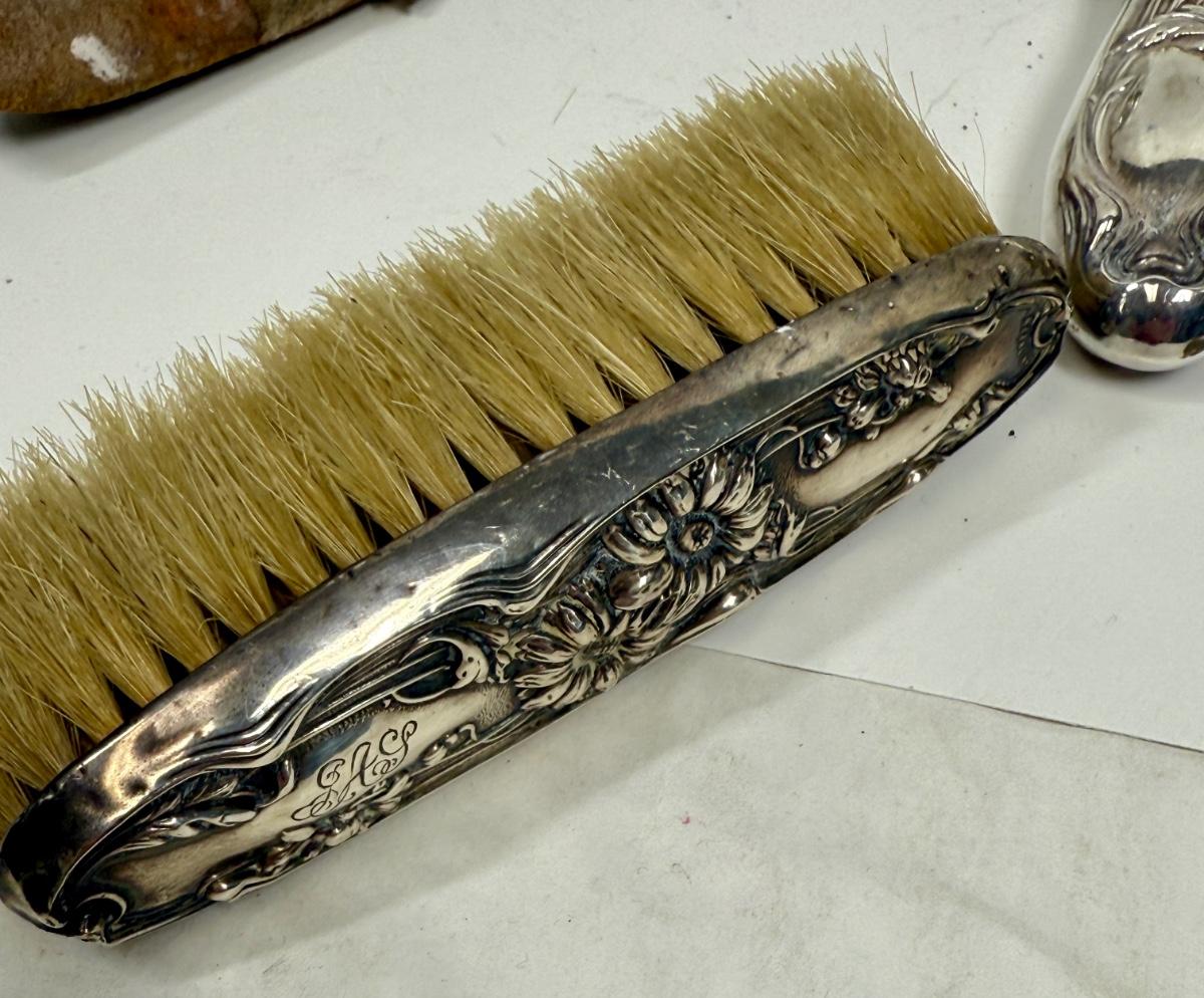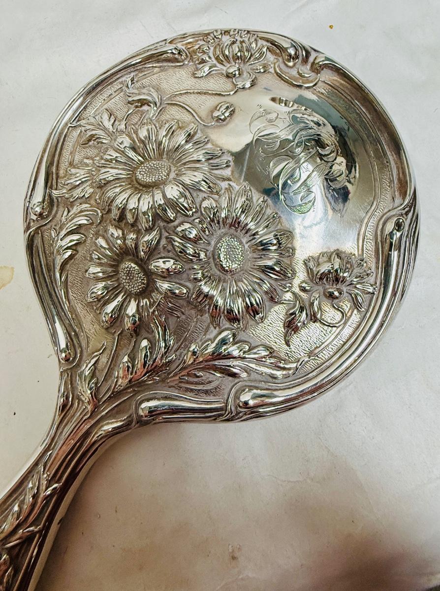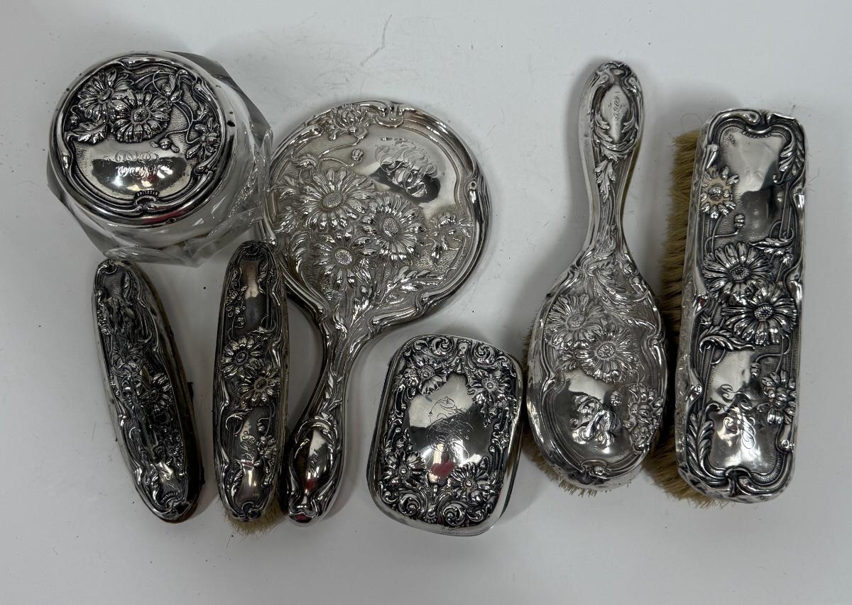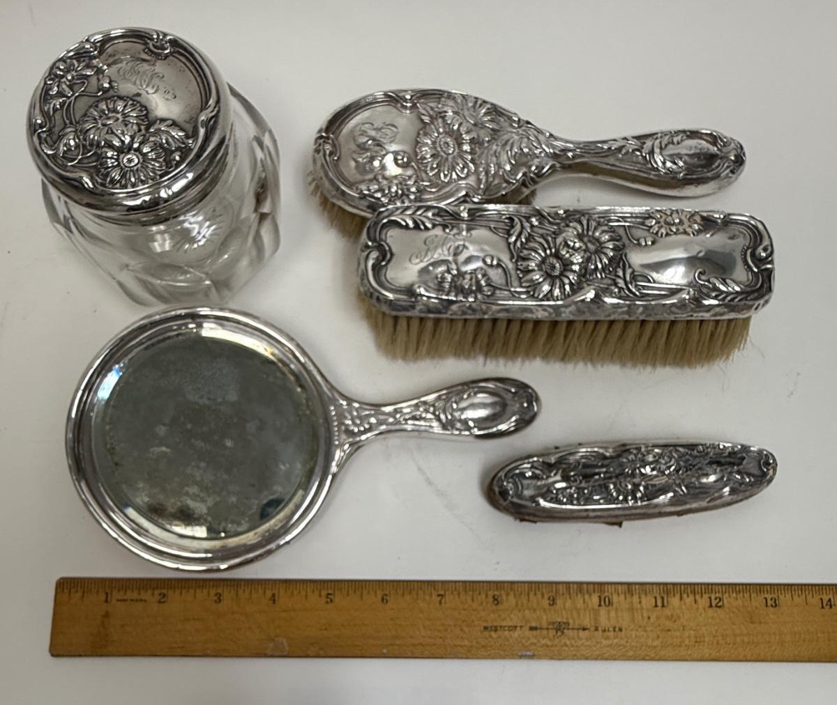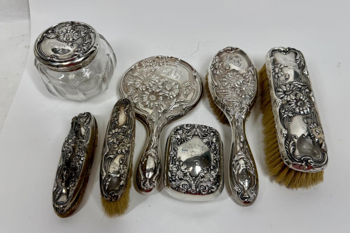 Antique Vanity Set Sterling Silver 7 pieces Monogramed 1902 Floral Pattern