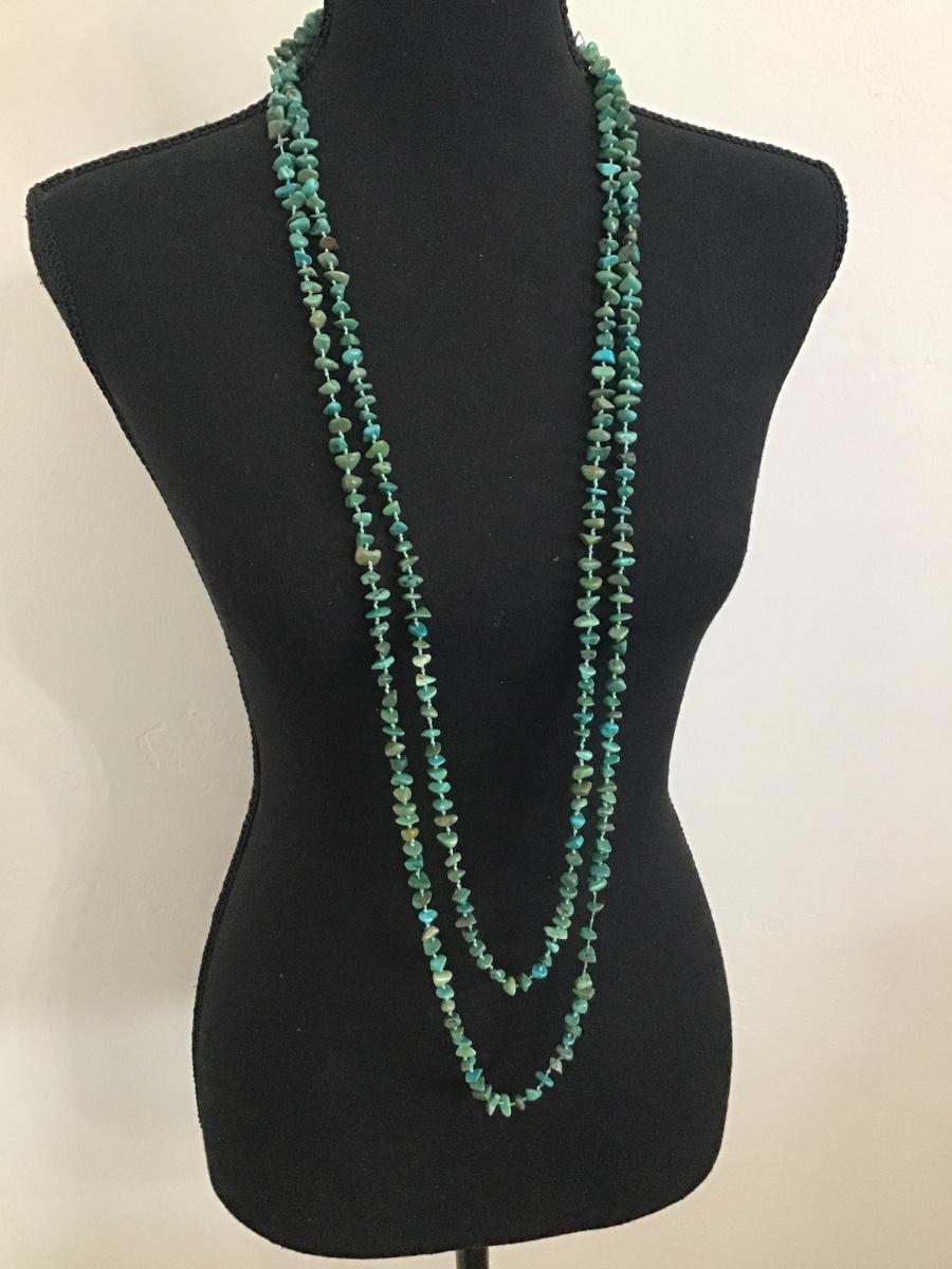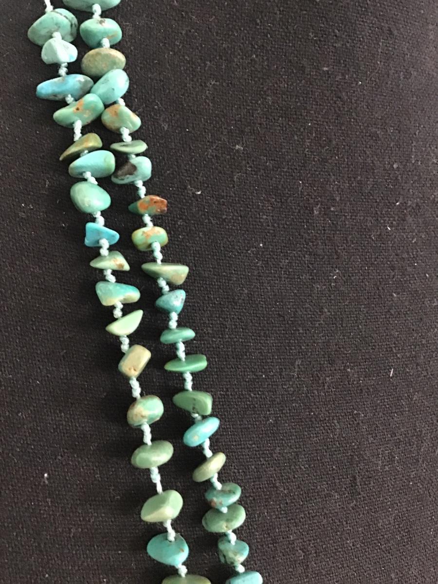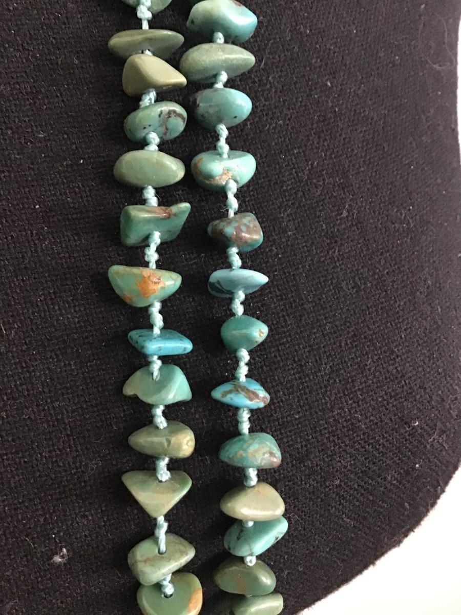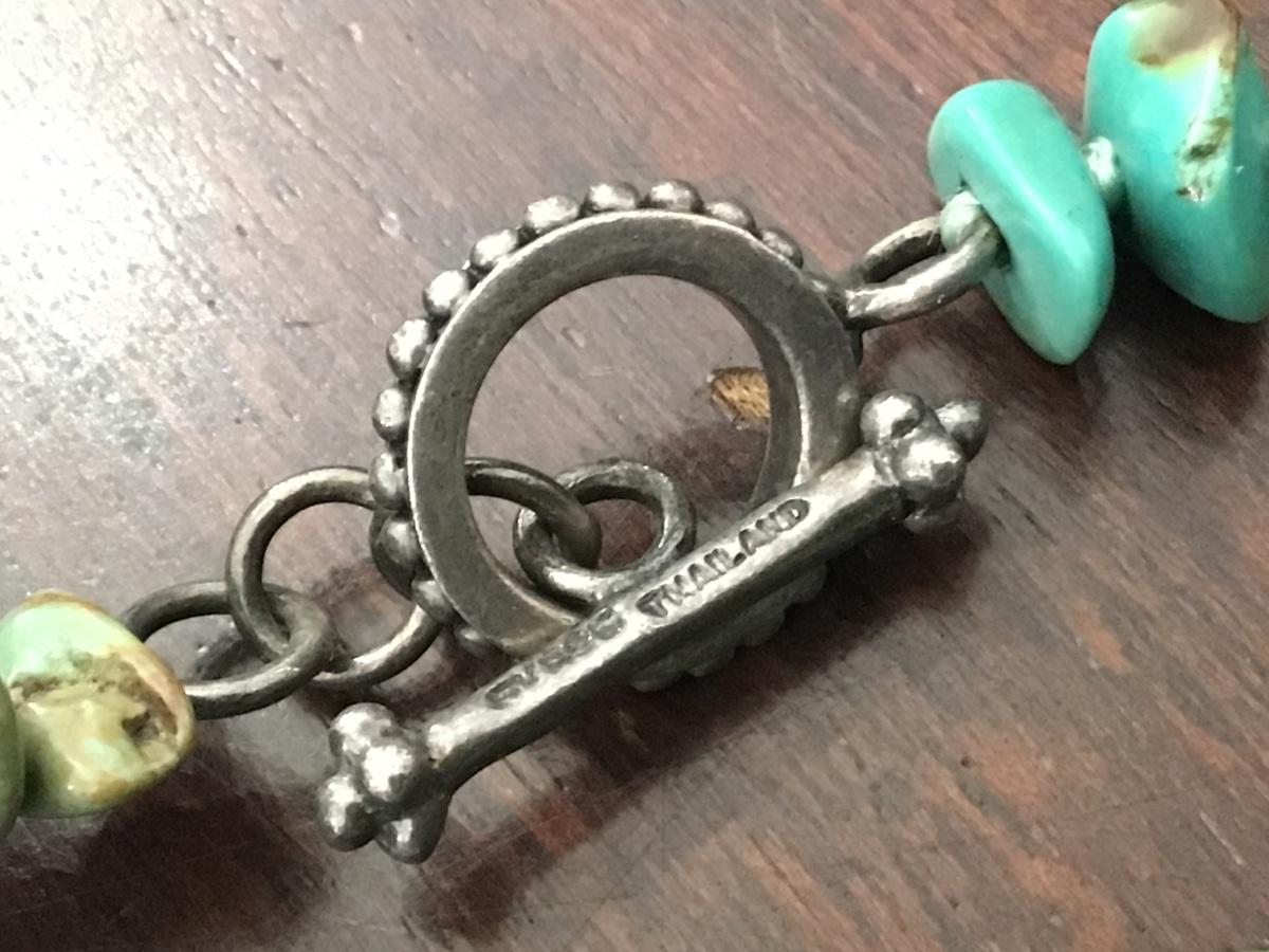 925 Thailand Toogle Clasp Turquoise Chip Knotted Necklace Vintage
