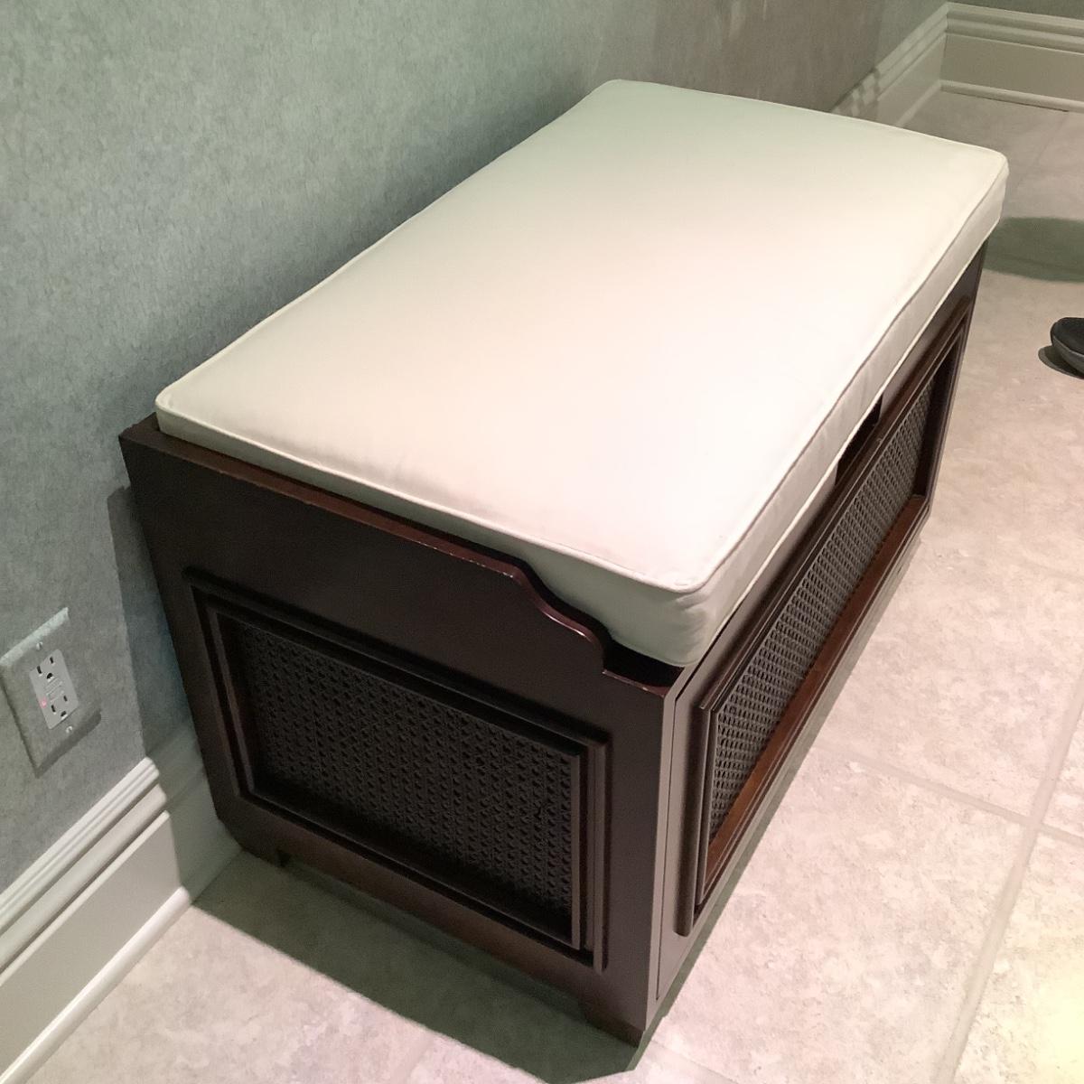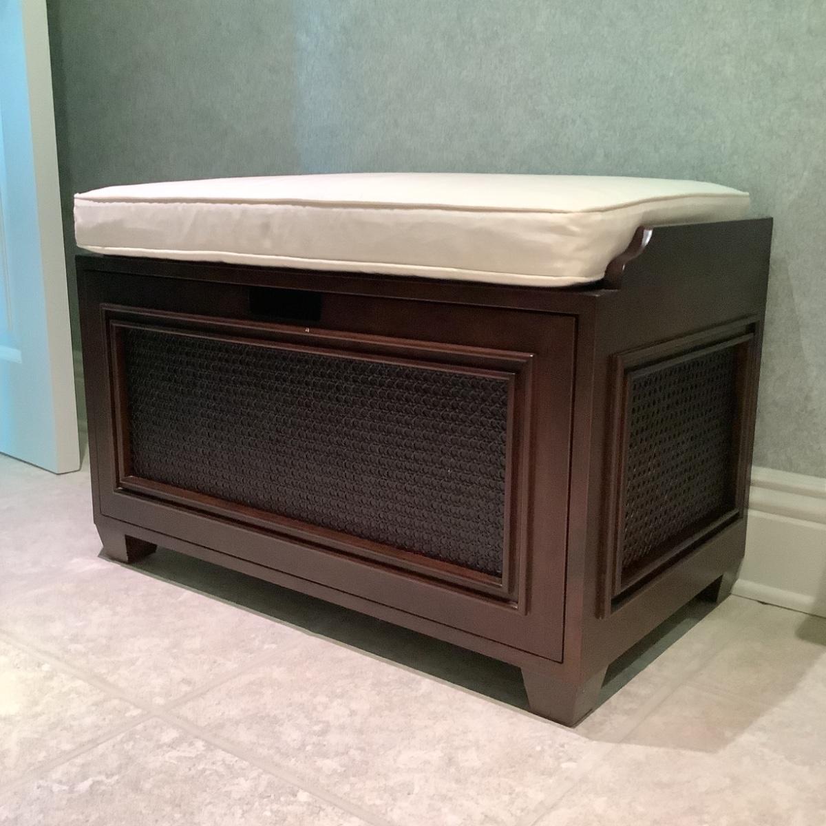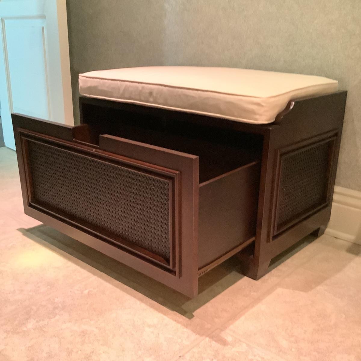 926 Mahogany & Cane Storage Bench with Cushion