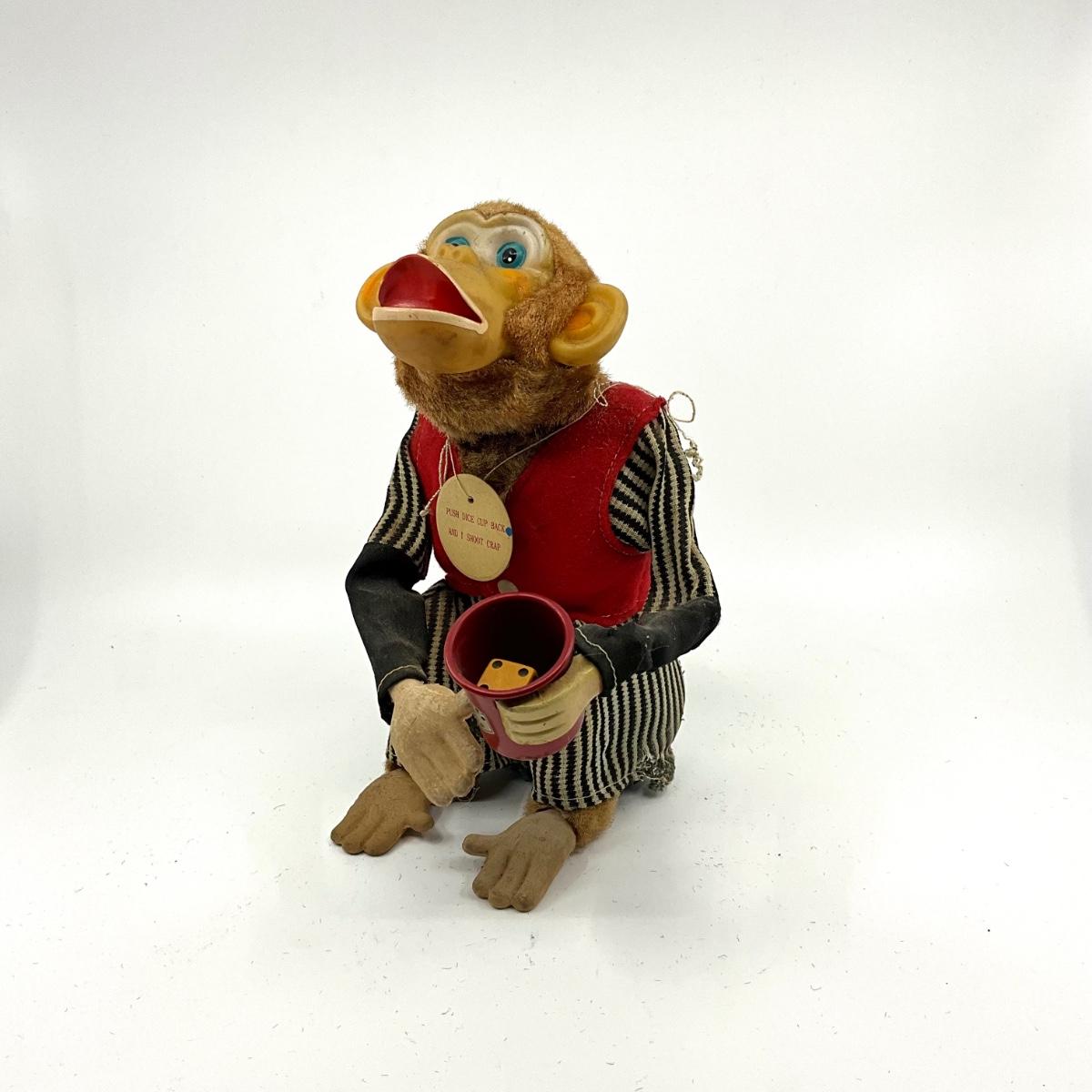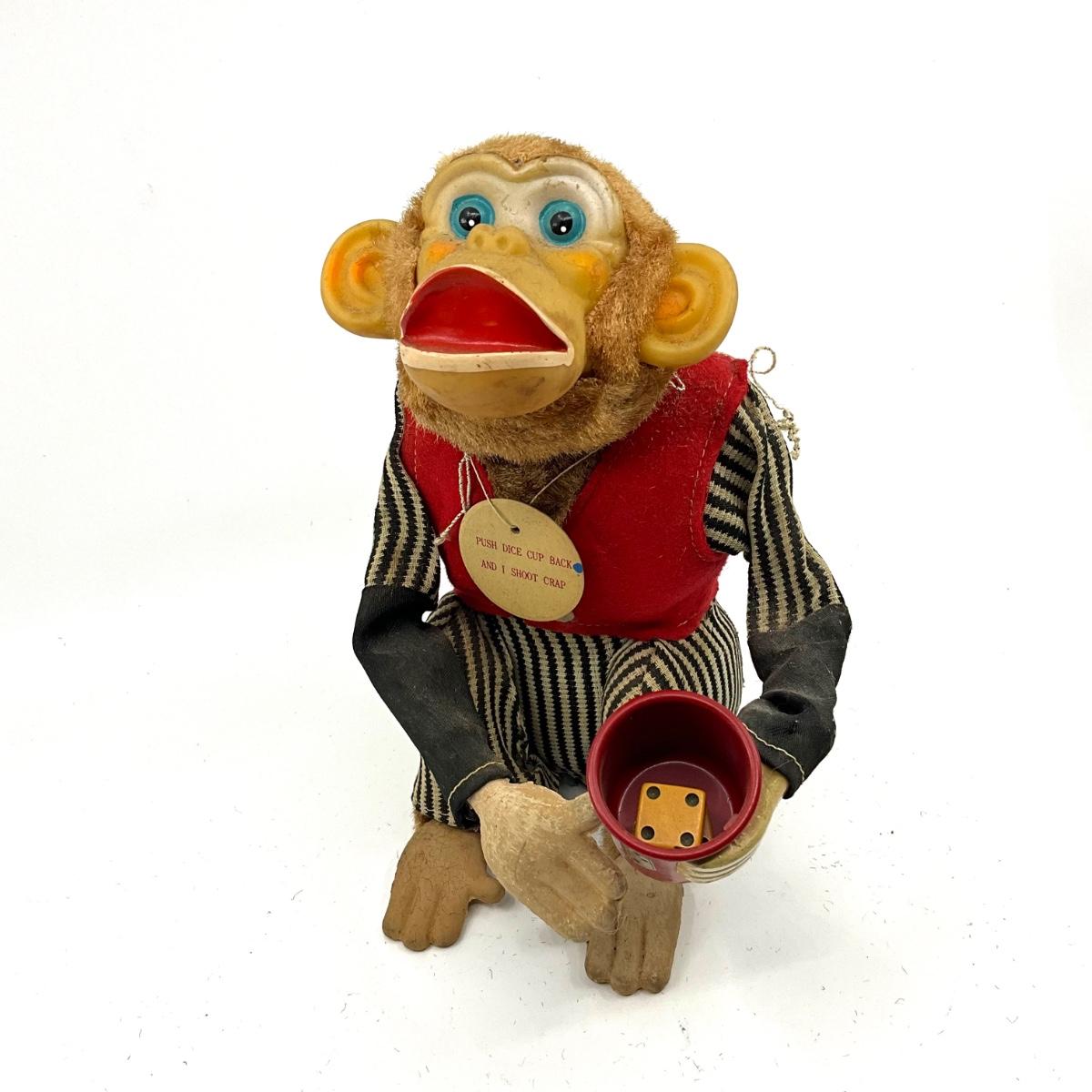 928 Vintage 1950 Cragston Craps Shooting Monkey with Dice Mechanical Toy