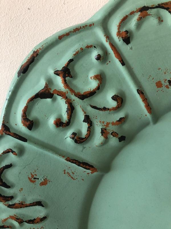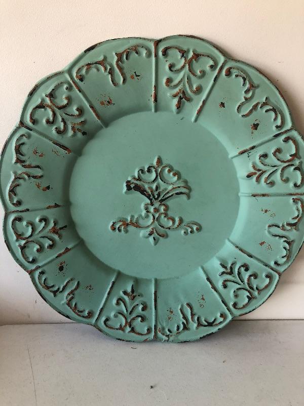 Mint green wall decor good condition measures 24 inches in diameter. This is an ONSITE Auction all items will need to be picked up on location. Please see auction description for pick up procedures.