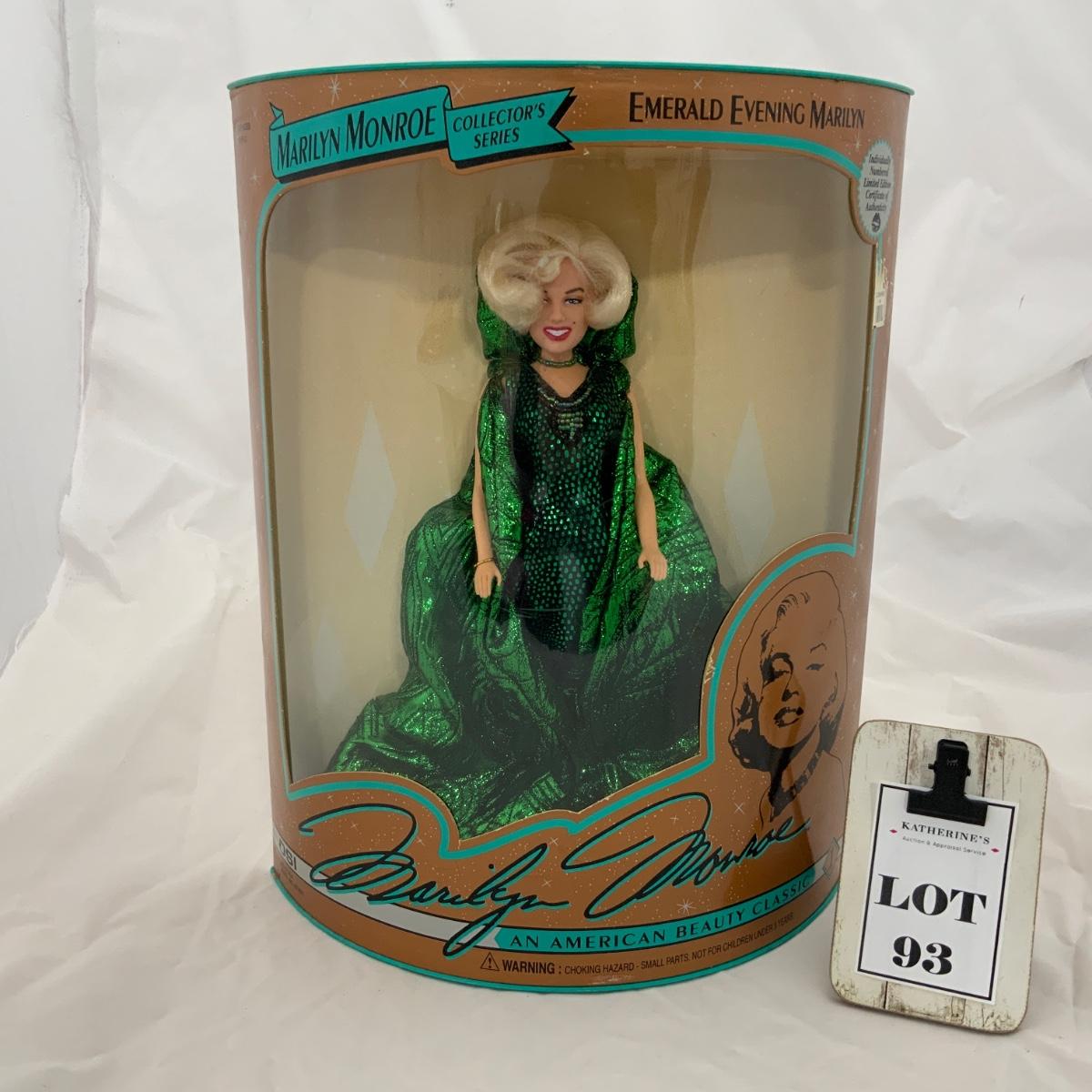 Emerald Evening Marilyn Monroe Doll, produced by DSI in 1993. Box does show some wear. Please see photos for details and condition. !!! Proceeds from this auction will be donated to the NEW COMMUNITY SHELTER in Green Bay, Wisconsin. Please see Sale Description to the Left for more information. !!! ::: Shipping is available on this lot. If you require shipping you must let us know at the close of the auction. We will coordinate with you after the item has been won. Shipping fees will include insurance up to or exceeding the value of all items being mailed. If you have any questions regarding this lot please contact the auctioneer either via this website, by direct email or by phone. PICK UP TIMES and other important information can be found in the TERMS and DESCRIPTION of the auction. Please take a look for pertinent information. Thanks!