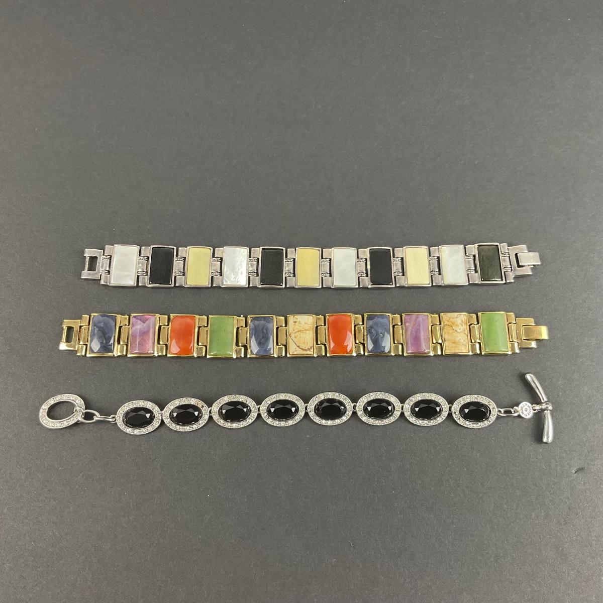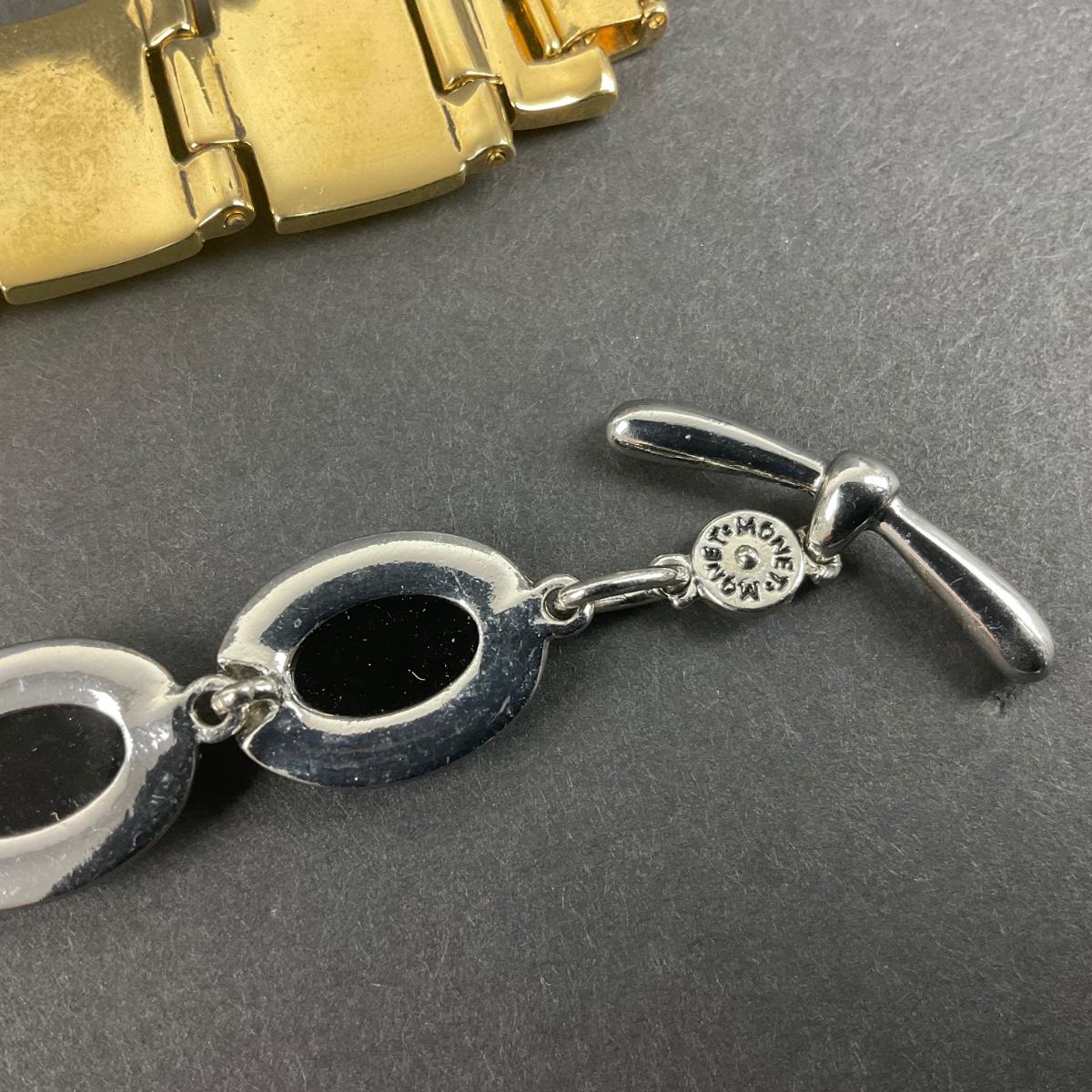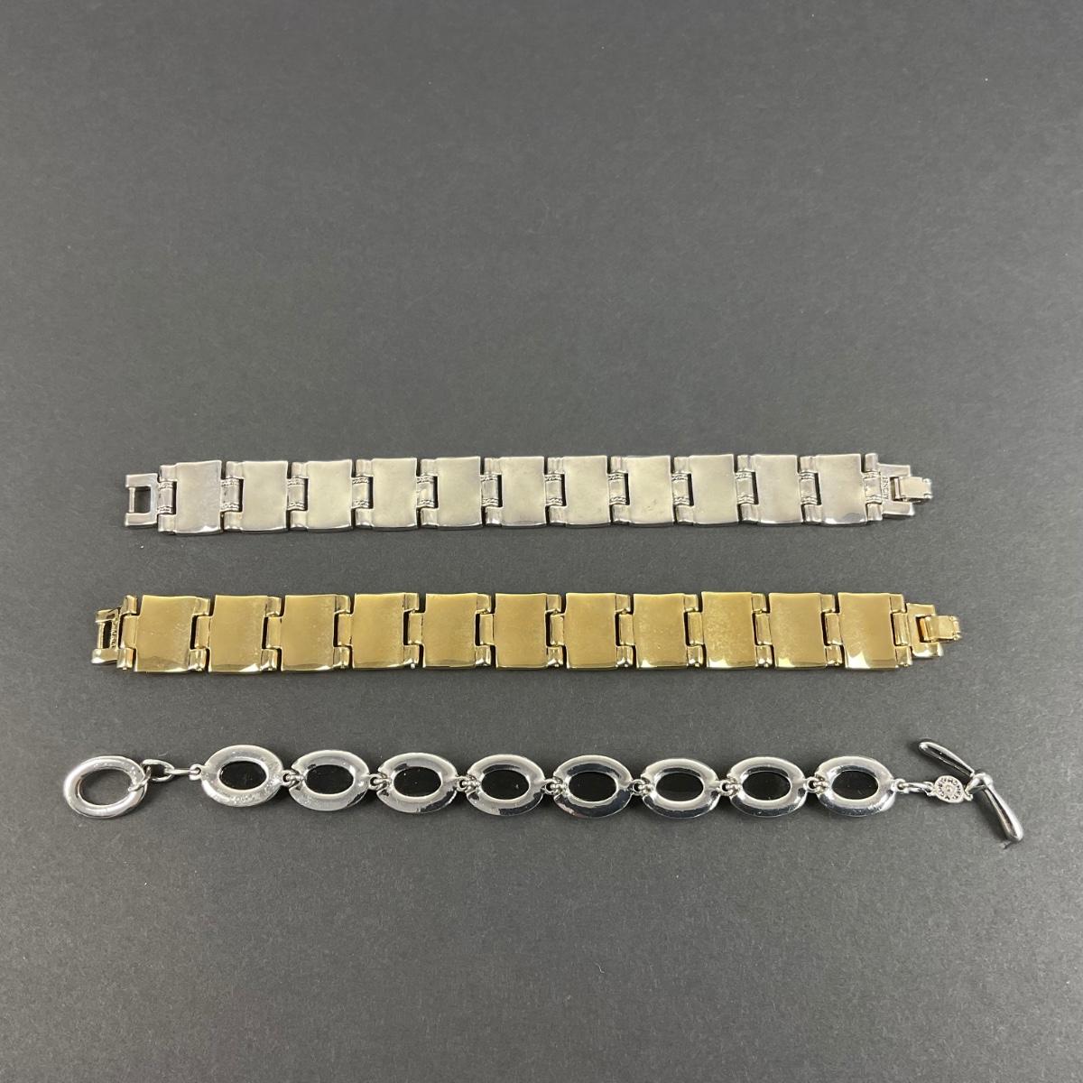 Assortment of three marked Monet bracelets. Please see photos for details and condition. Any condition statement is given as a courtesy to a client, is an opinion, and should not be treated as a statement of fact. Reference to condition written, oral or within a condition report shall not be regarded as a full account of condition and may not include all defects, alterations, or restorations. Absence of a condition report does not imply a lot is flawless or lacking imperfections or damage. Katherine’s Auction & Appraisal Service shall have no responsibility for any error or omission. Returns shall not be accepted on the basis of condition. ::: Shipping is available on this lot. If you require shipping you must let us know at the close of the auction. We will coordinate with you after the item has been won. Shipping fees will include insurance up to or exceeding the value of all items being mailed. If you have any questions regarding this lot please contact the auctioneer either via this website, by direct email or by phone. PICK UP TIMES and other important information can be found in the TERMS and DESCRIPTION of the auction. Please take a look for pertinent information. Thanks!