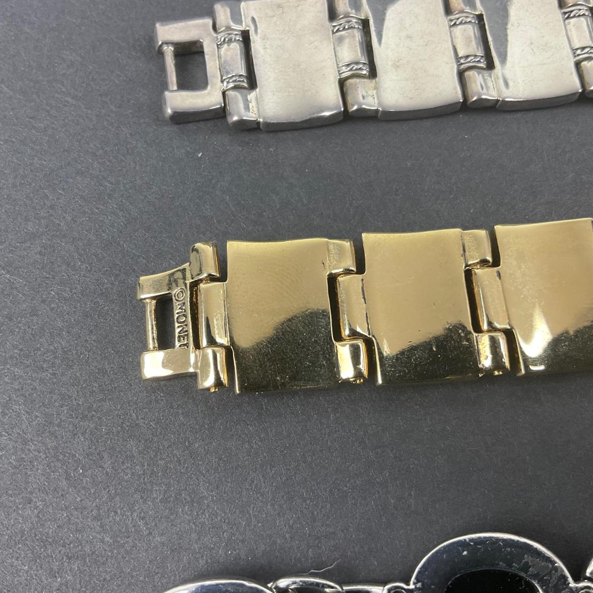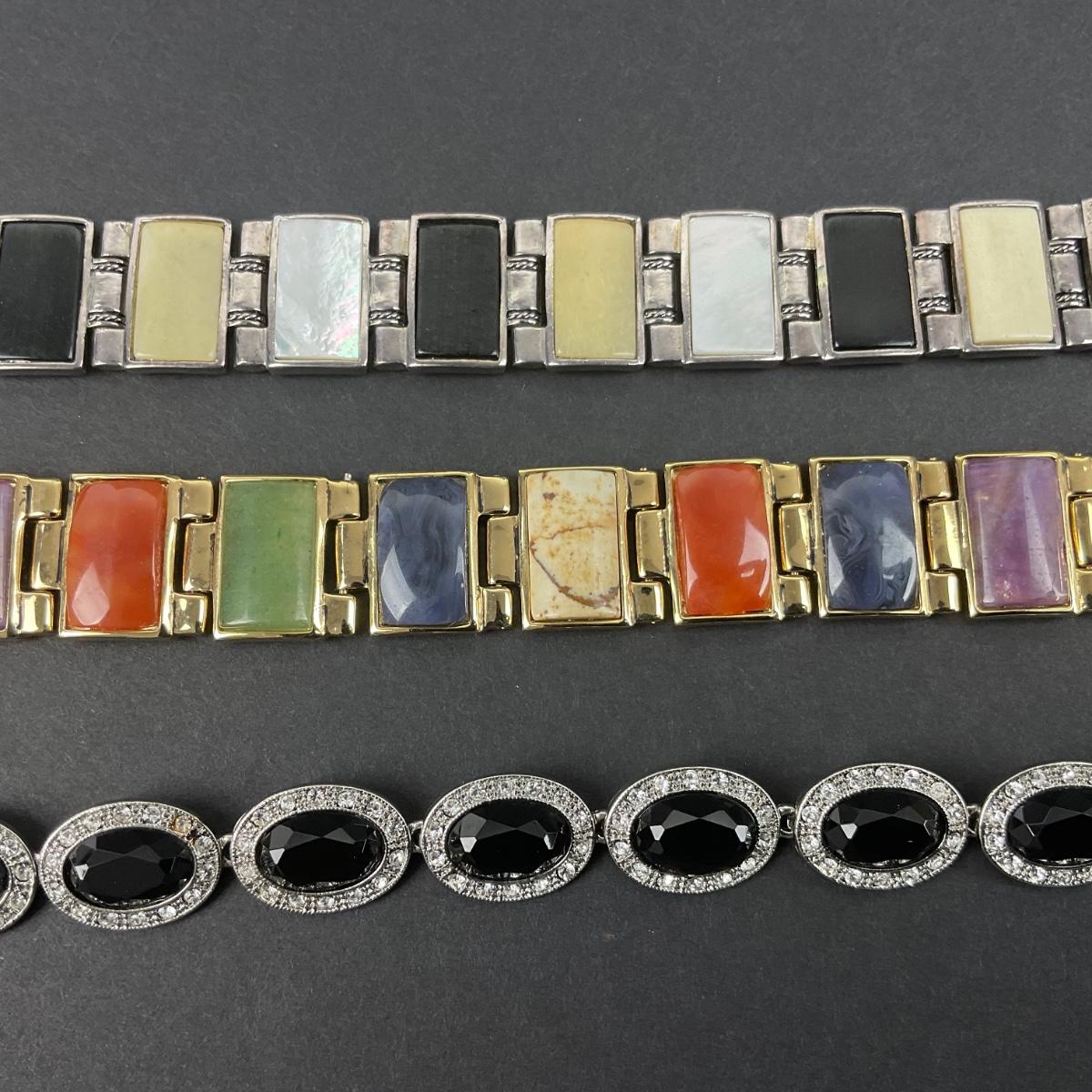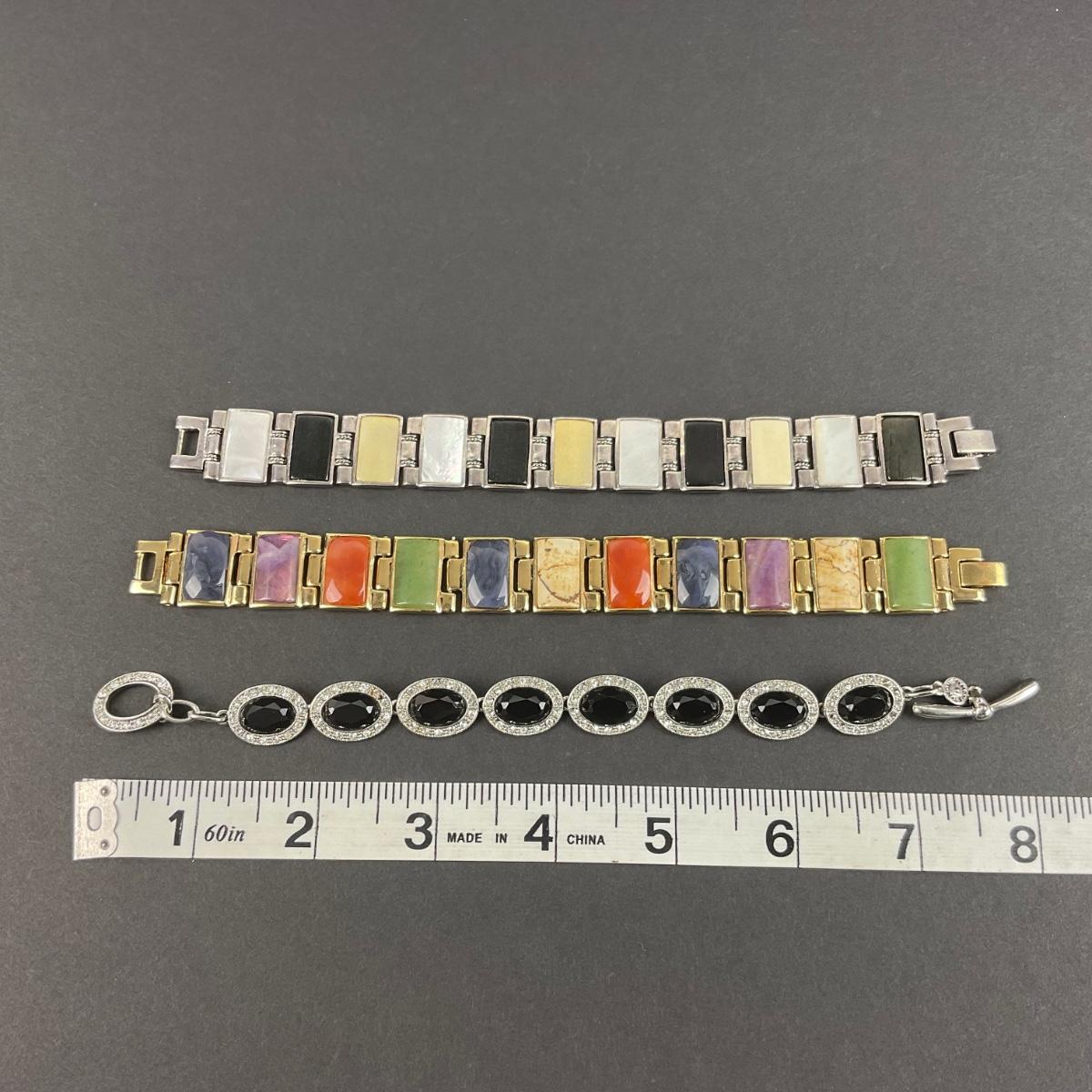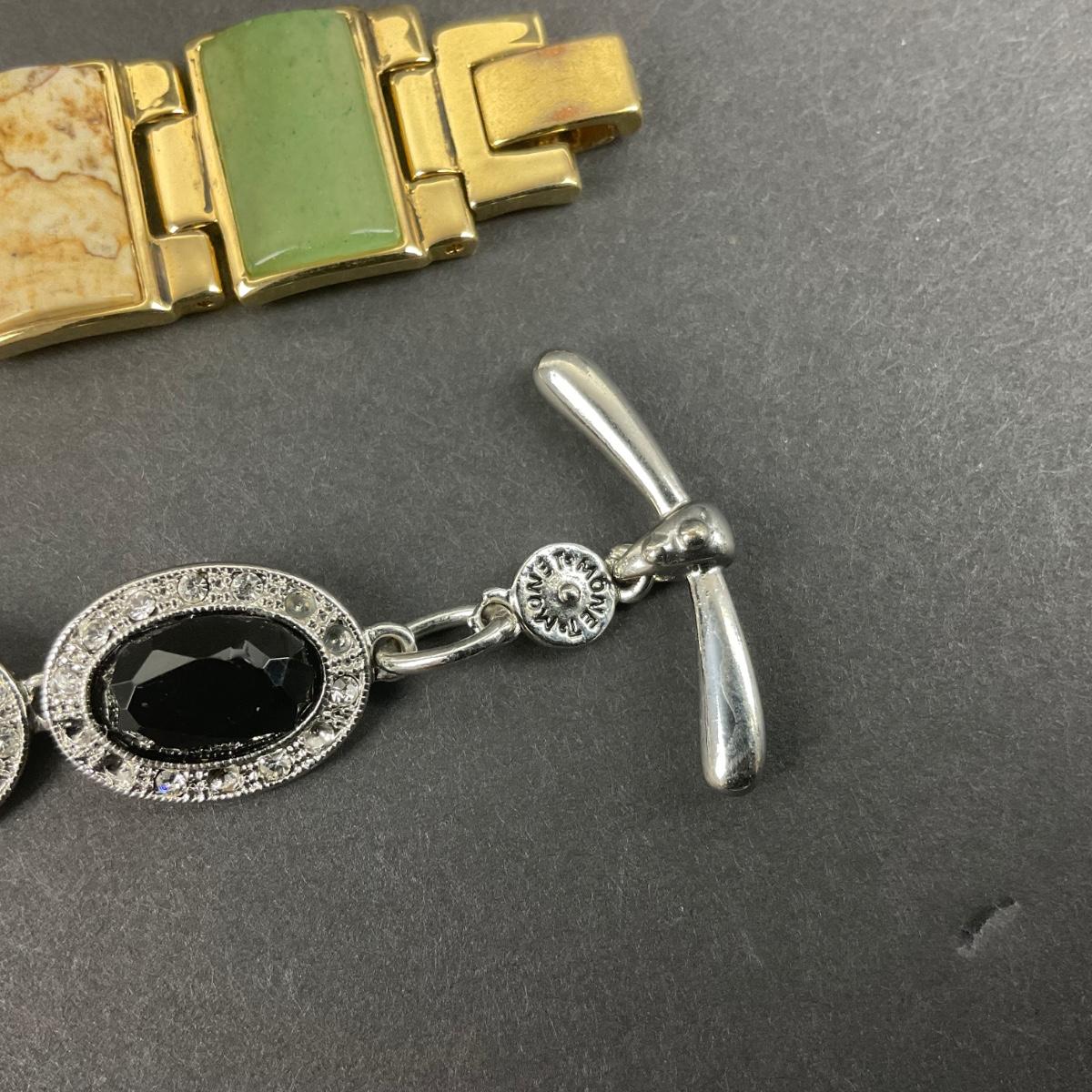 Assortment of three marked Monet bracelets. Please see photos for details and condition. Any condition statement is given as a courtesy to a client, is an opinion, and should not be treated as a statement of fact. Reference to condition written, oral or within a condition report shall not be regarded as a full account of condition and may not include all defects, alterations, or restorations. Absence of a condition report does not imply a lot is flawless or lacking imperfections or damage. Katherine’s Auction & Appraisal Service shall have no responsibility for any error or omission. Returns shall not be accepted on the basis of condition. ::: Shipping is available on this lot. If you require shipping you must let us know at the close of the auction. We will coordinate with you after the item has been won. Shipping fees will include insurance up to or exceeding the value of all items being mailed. If you have any questions regarding this lot please contact the auctioneer either via this website, by direct email or by phone. PICK UP TIMES and other important information can be found in the TERMS and DESCRIPTION of the auction. Please take a look for pertinent information. Thanks!
