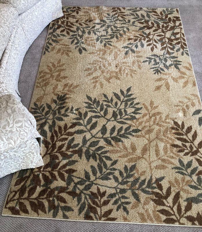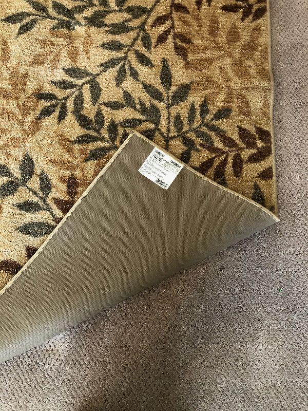 #93 RUG - Tan Earth Tone Leaf pattern.