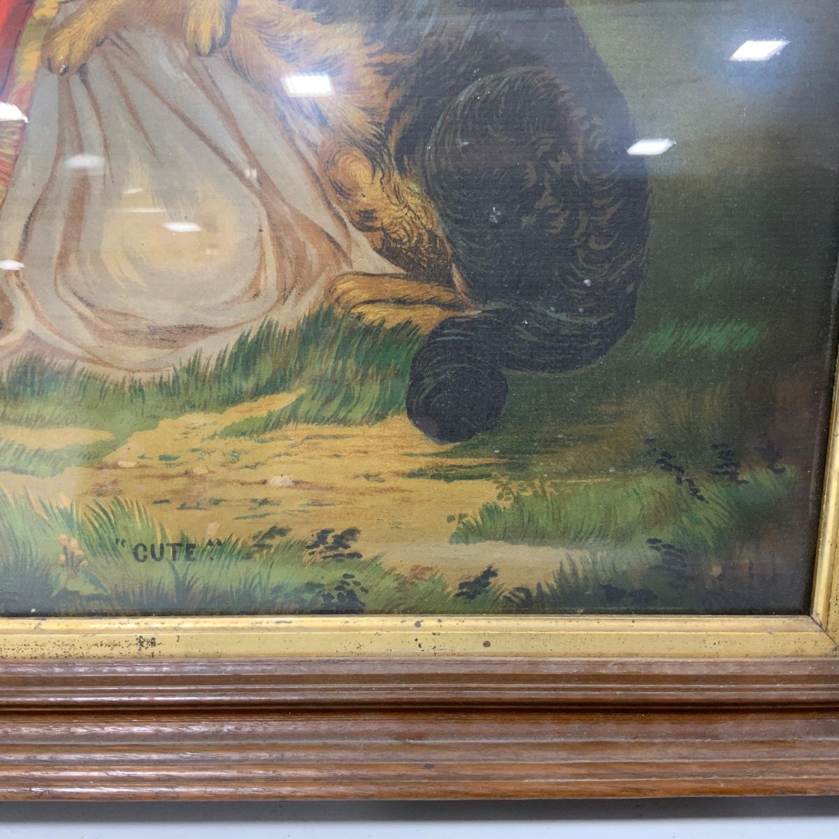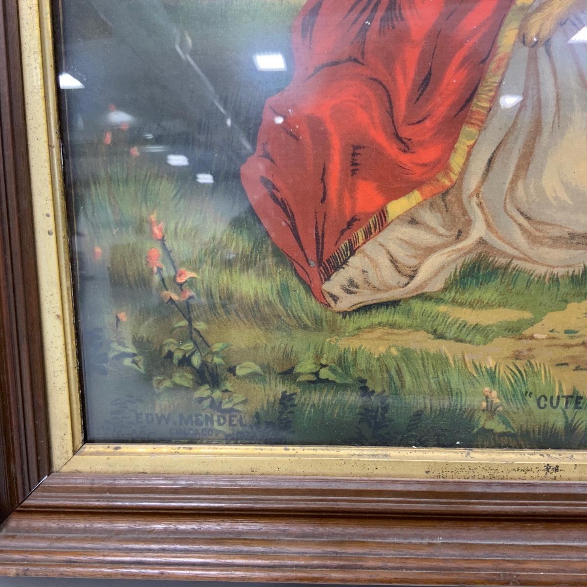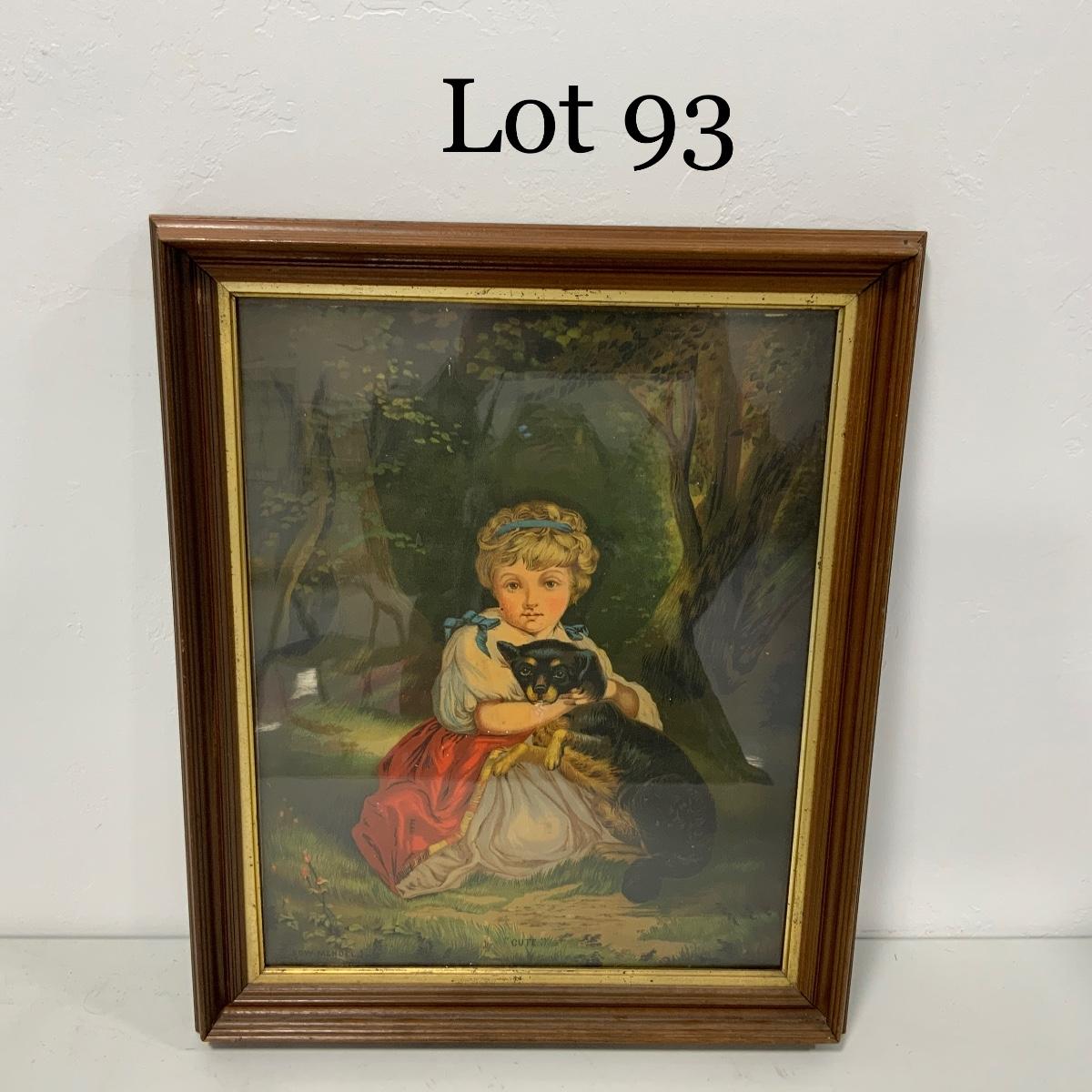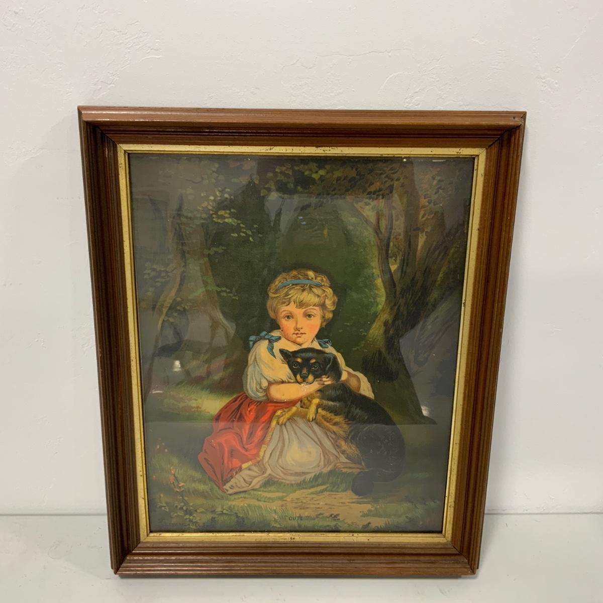 Delightful Victorian Oil Chomo Lithograph with a girl hugging a dog in the woods. The title of the picture is “Cute”, and the piece is circa 1860. These were produced up through the 1880s. Frame measures 24” x 20”. It looks as though the dog’s tongue may have been repaired years ago. Please see photos for details and condition. ::: Shipping is available on this lot. If you require shipping you must let us know at the close of the auction. We will coordinate with you after the item has been won. Shipping fees will include insurance up to or exceeding the value of all items being mailed. If you have any questions regarding this lot please contact the auctioneer either via this website, by direct email or by phone. PICK UP TIMES and other important information can be found in the TERMS and DESCRIPTION of the auction. Please take a look for pertinent information. Thanks!
