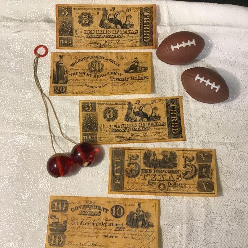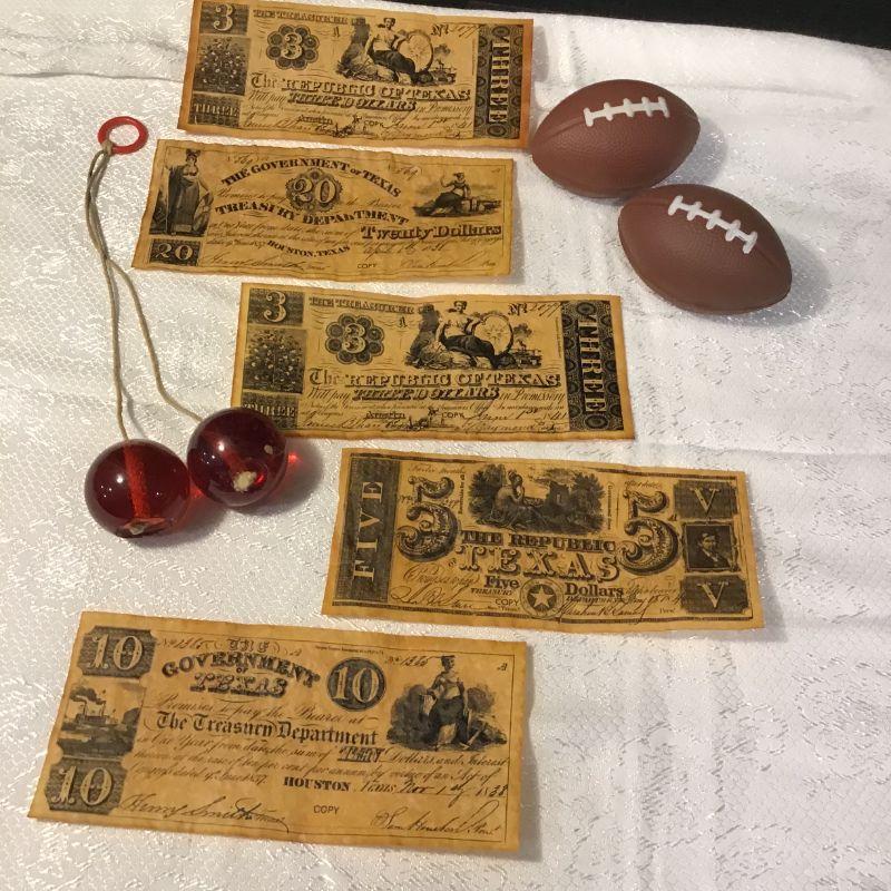 93 - Vintage "Clackers", footballs and Texas "cash"