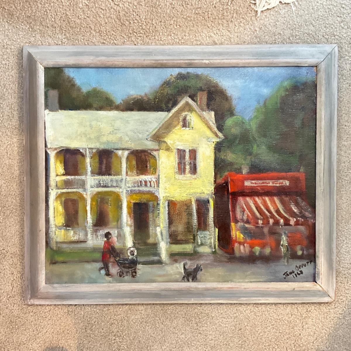 930 Circa 1963 Oil on Canvas " Street View Scene" by Jane Shannahan Offutt (1915-2000)