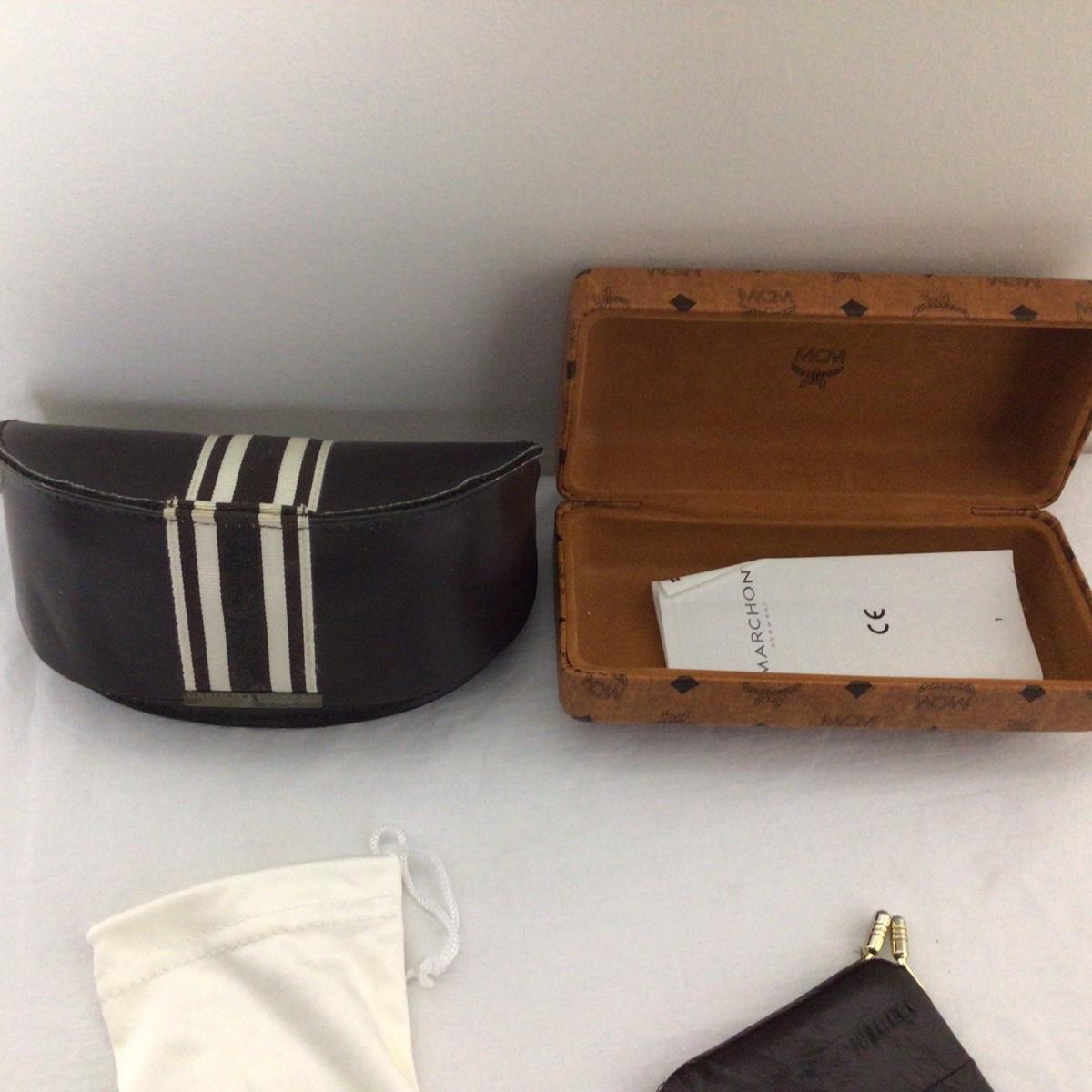 The lot contains Carolina Herrera Case, Marchon hard case and a vintage leather case.