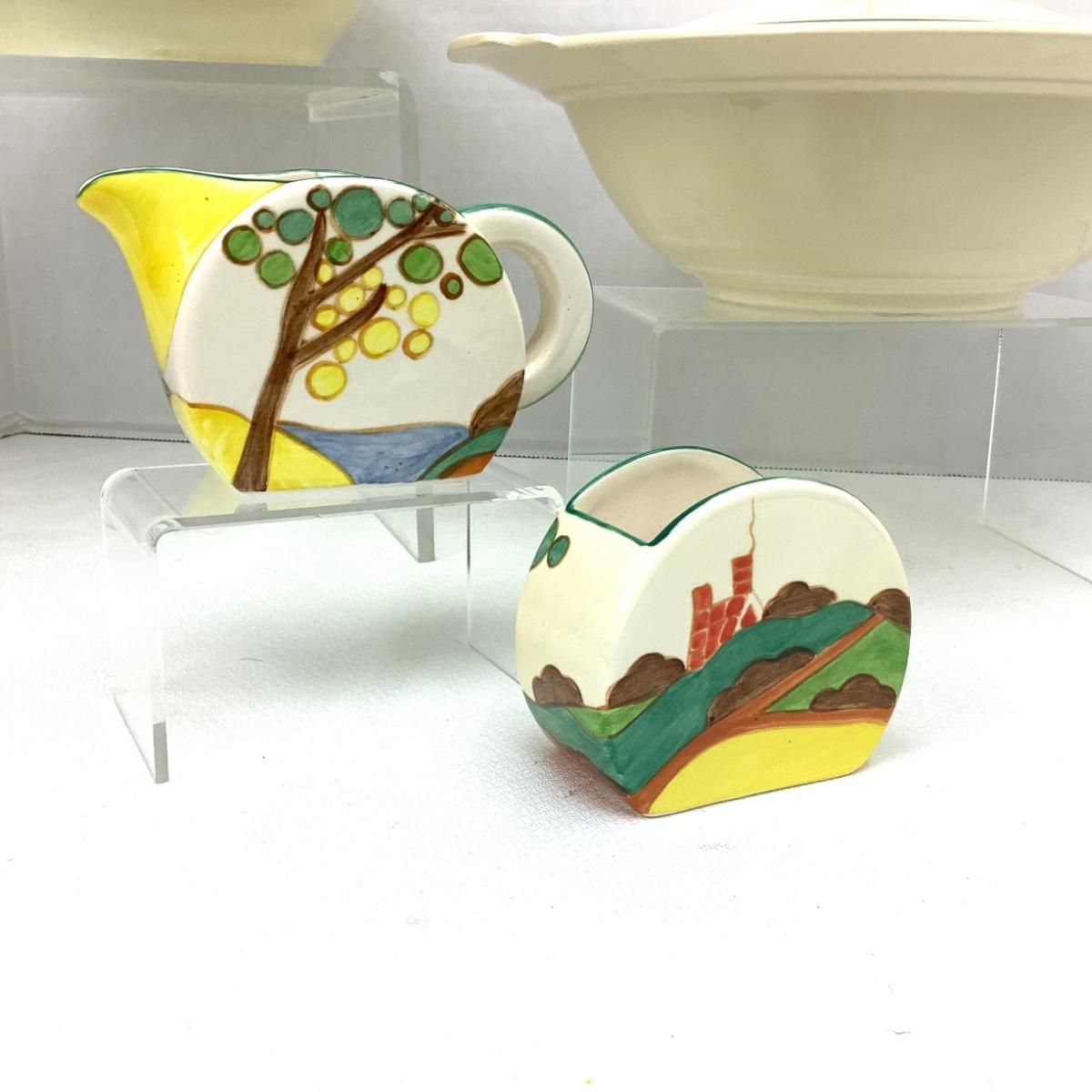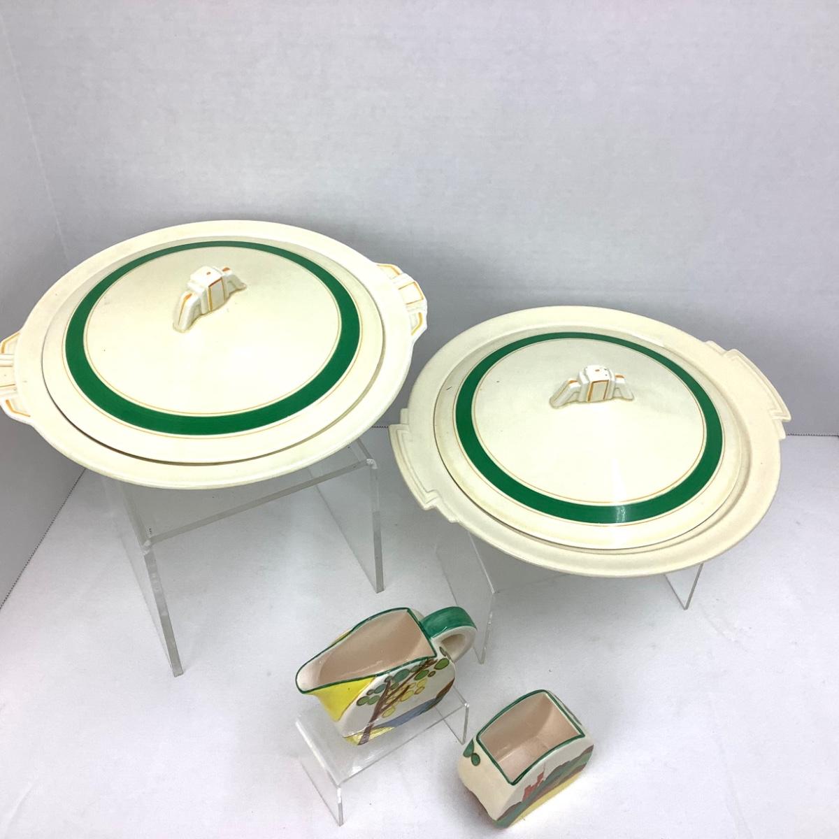 931 Johnson Brothers Covered Dishes & Clarice Cliff MMA Reproduction Cream & Sugar