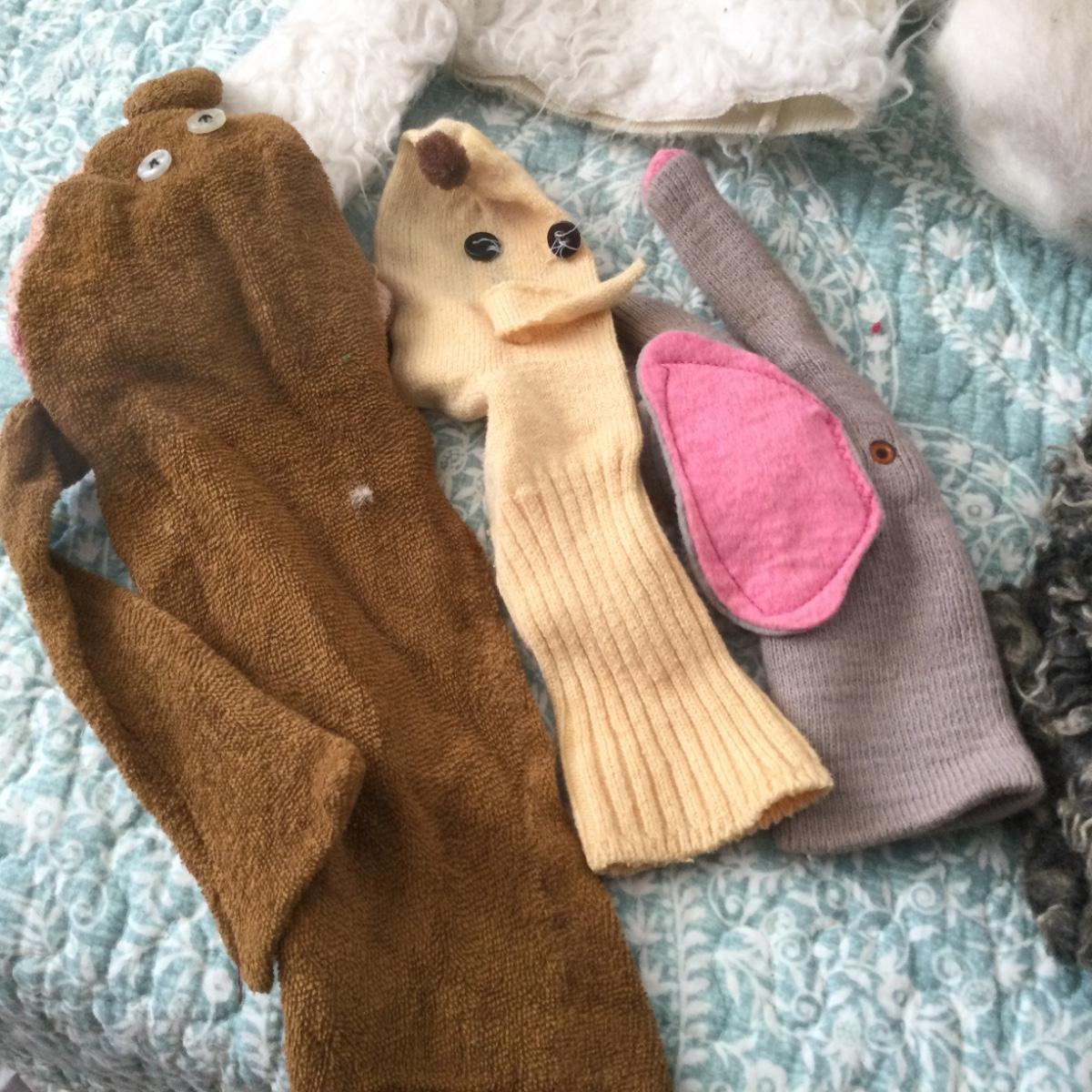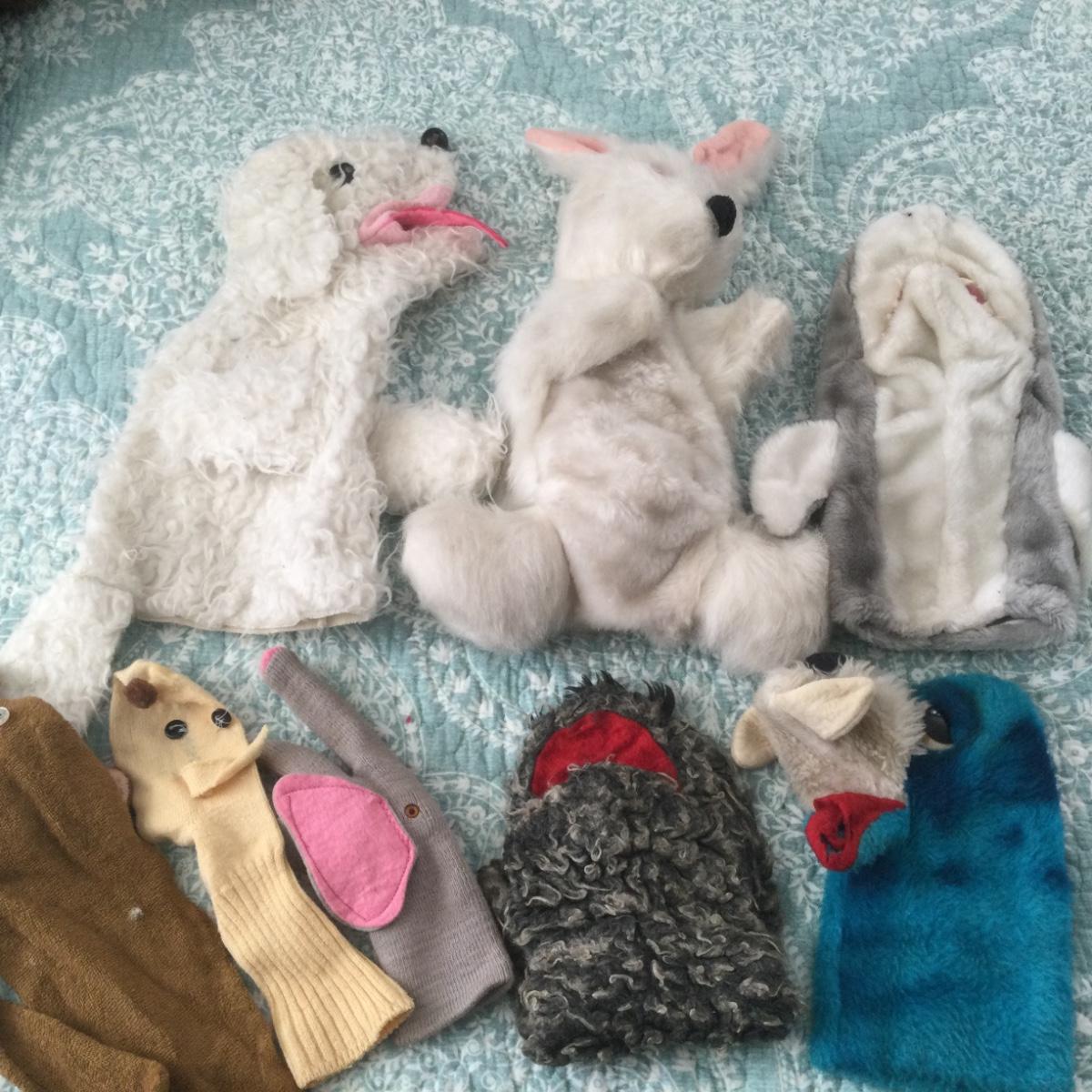 Well loved, assorted puppet animals.