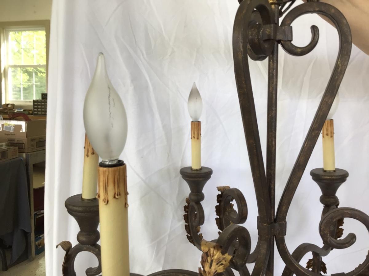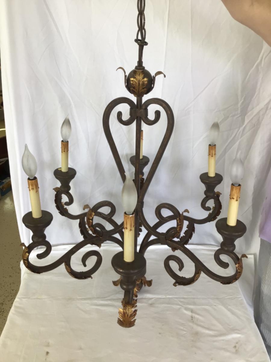 W/(6) candle lights. This chandelier is not an antique, made to look old.