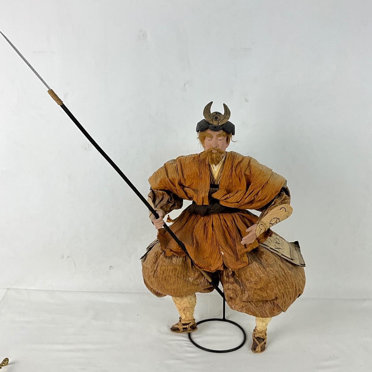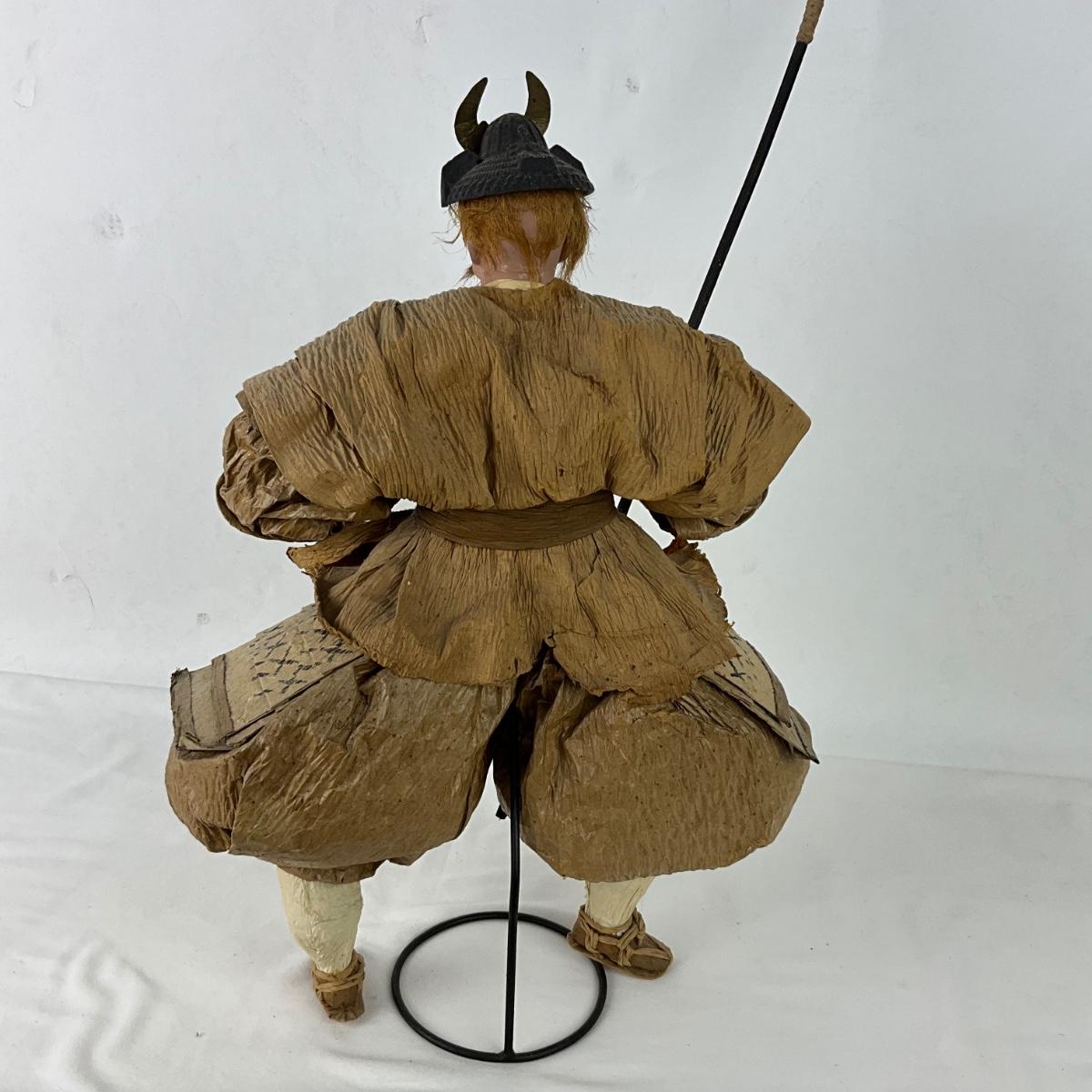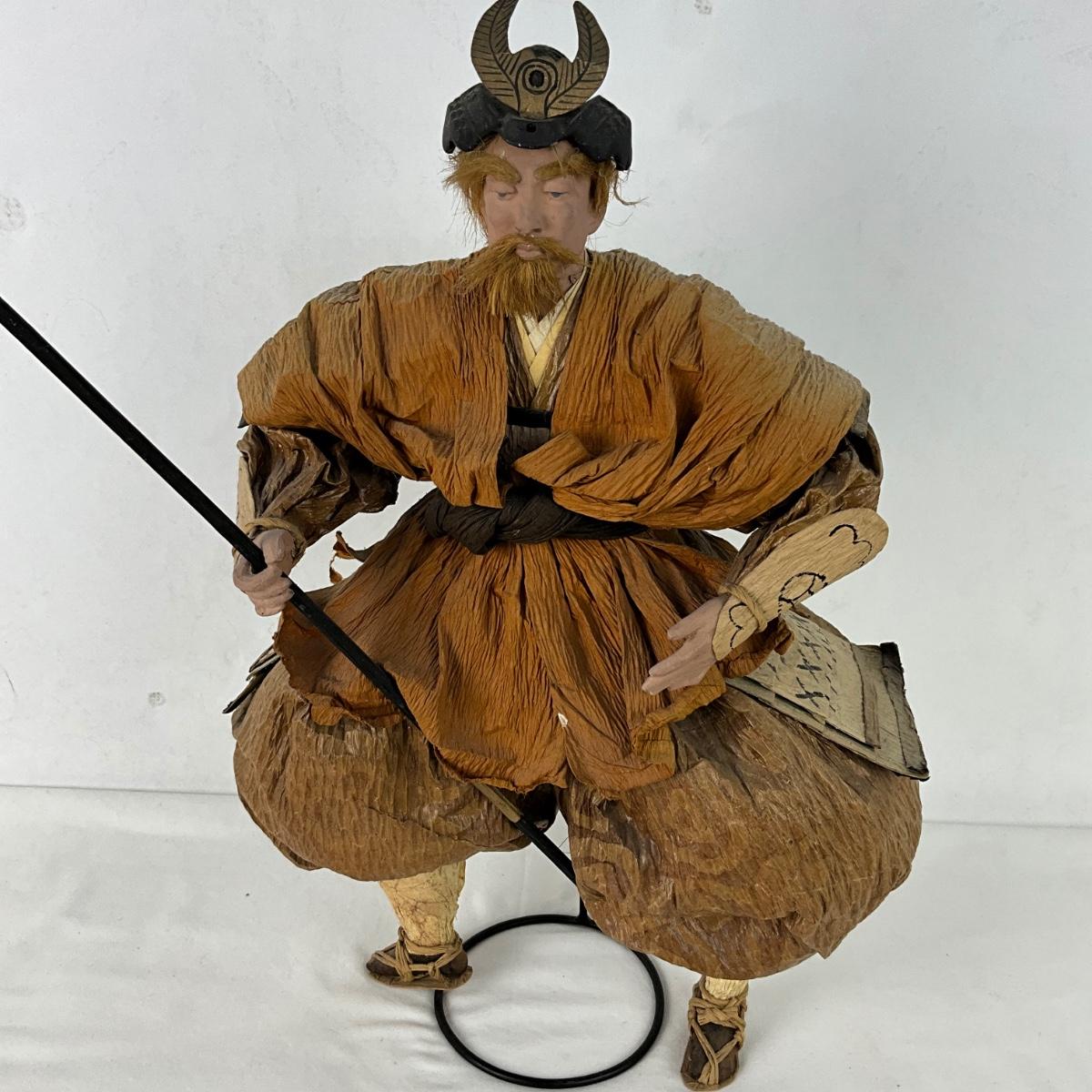 This samurai is made of hand pulped abaca and straw paper. He has a long spear and full traditional attire. It is 19"H x 14"W.