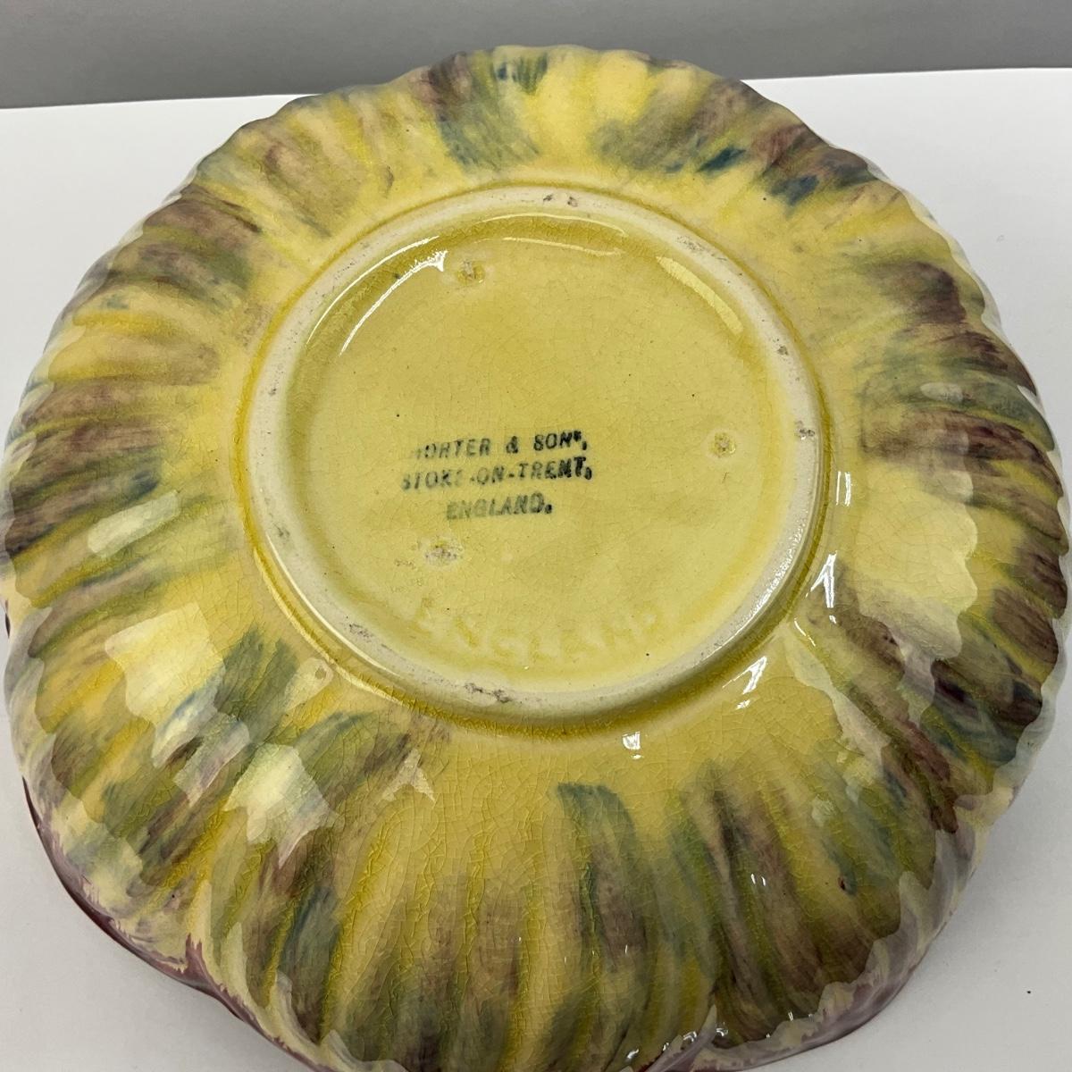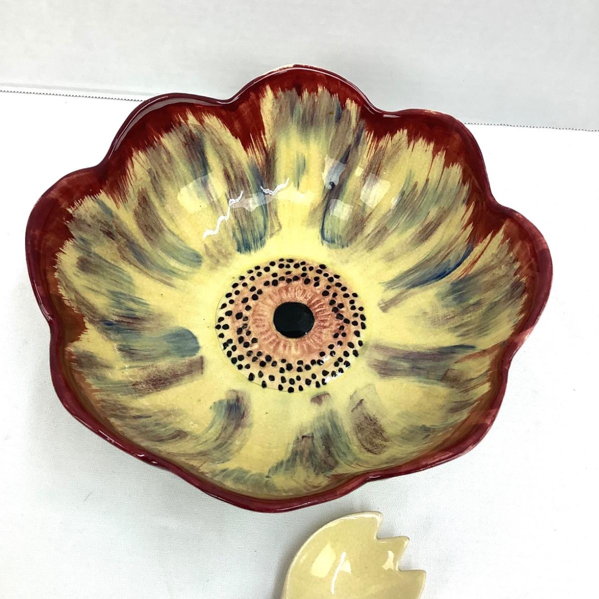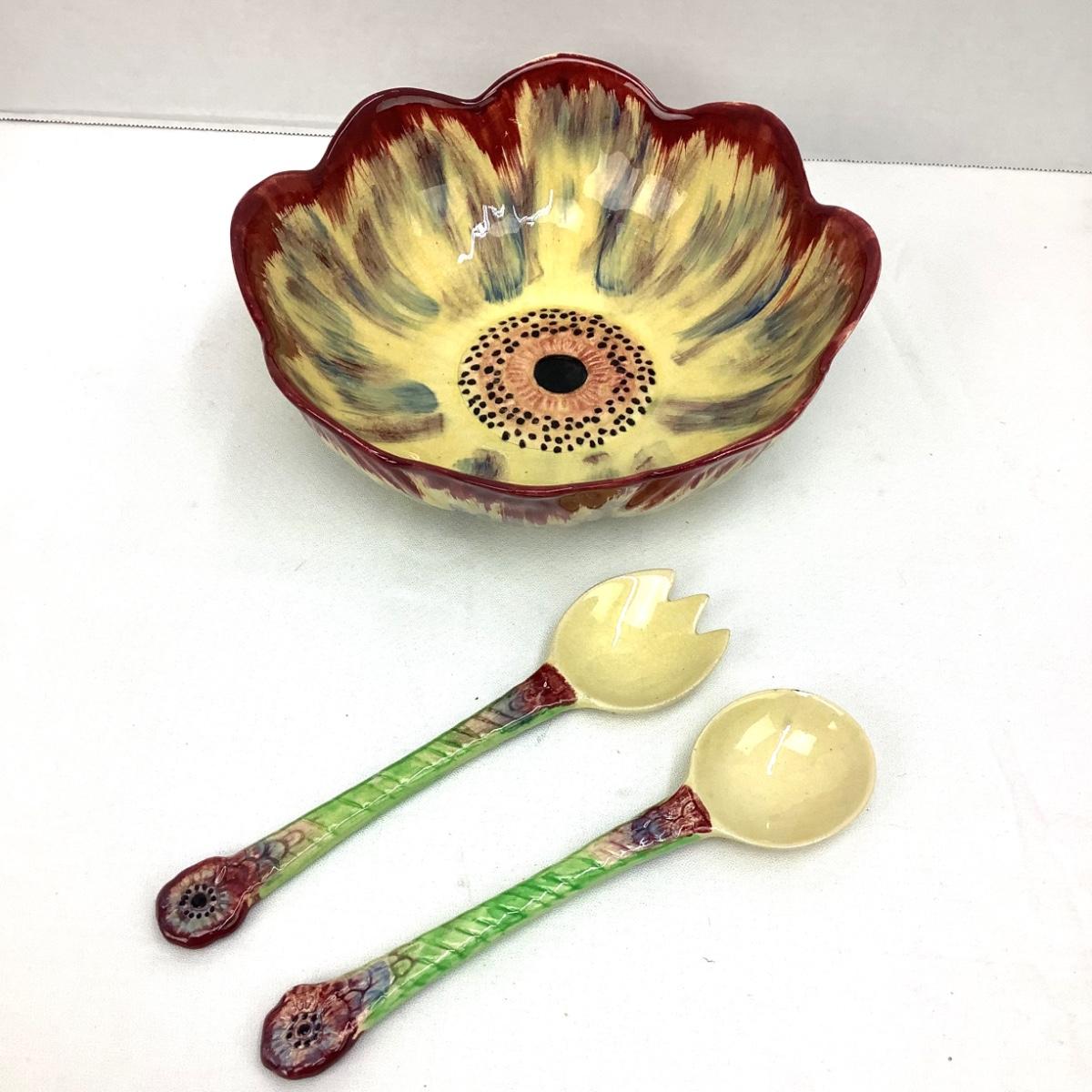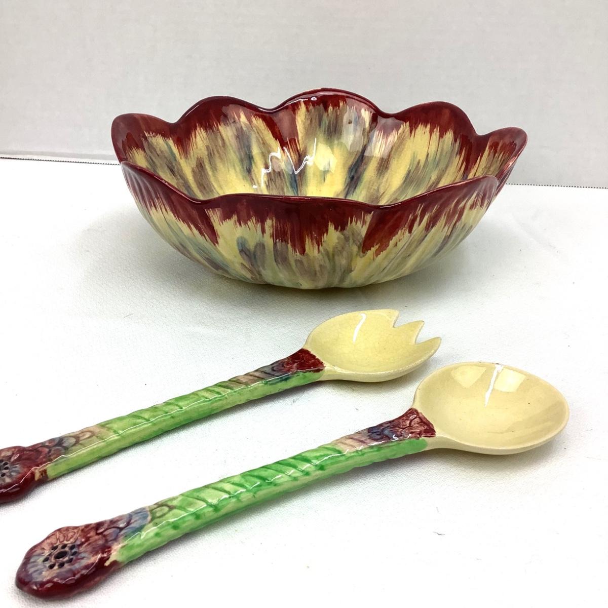 936 Antique Shorter & Sons Flower Salad Bowl with Utensils