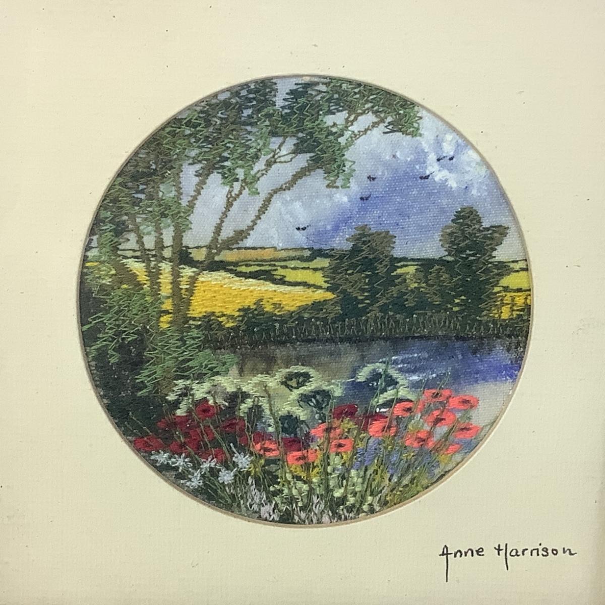 936 Hand-painted & Embroidered Landscape by Anne Harrison