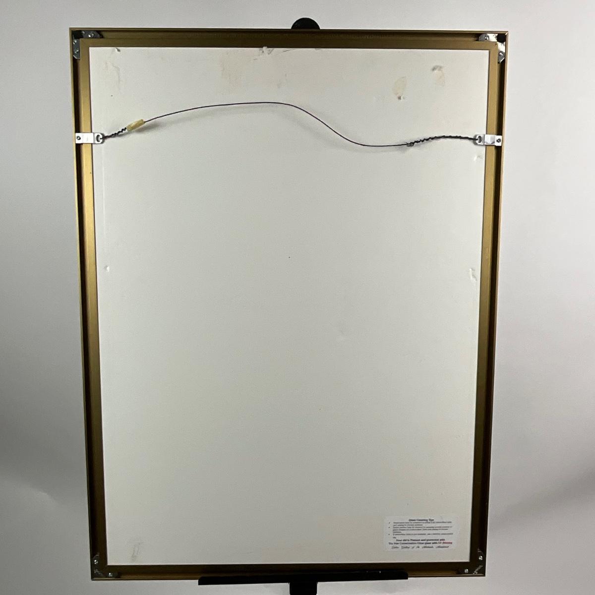 Single mat framed in a gold tone frame measuring 28" high x 21.25" wide