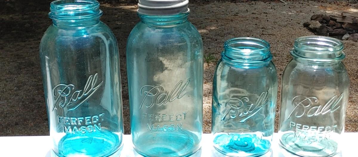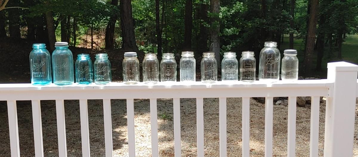 13 vintage mason jars several are blue some made by ball Atlas and others and some have the original sink tops please see all pictures as they are part of the description