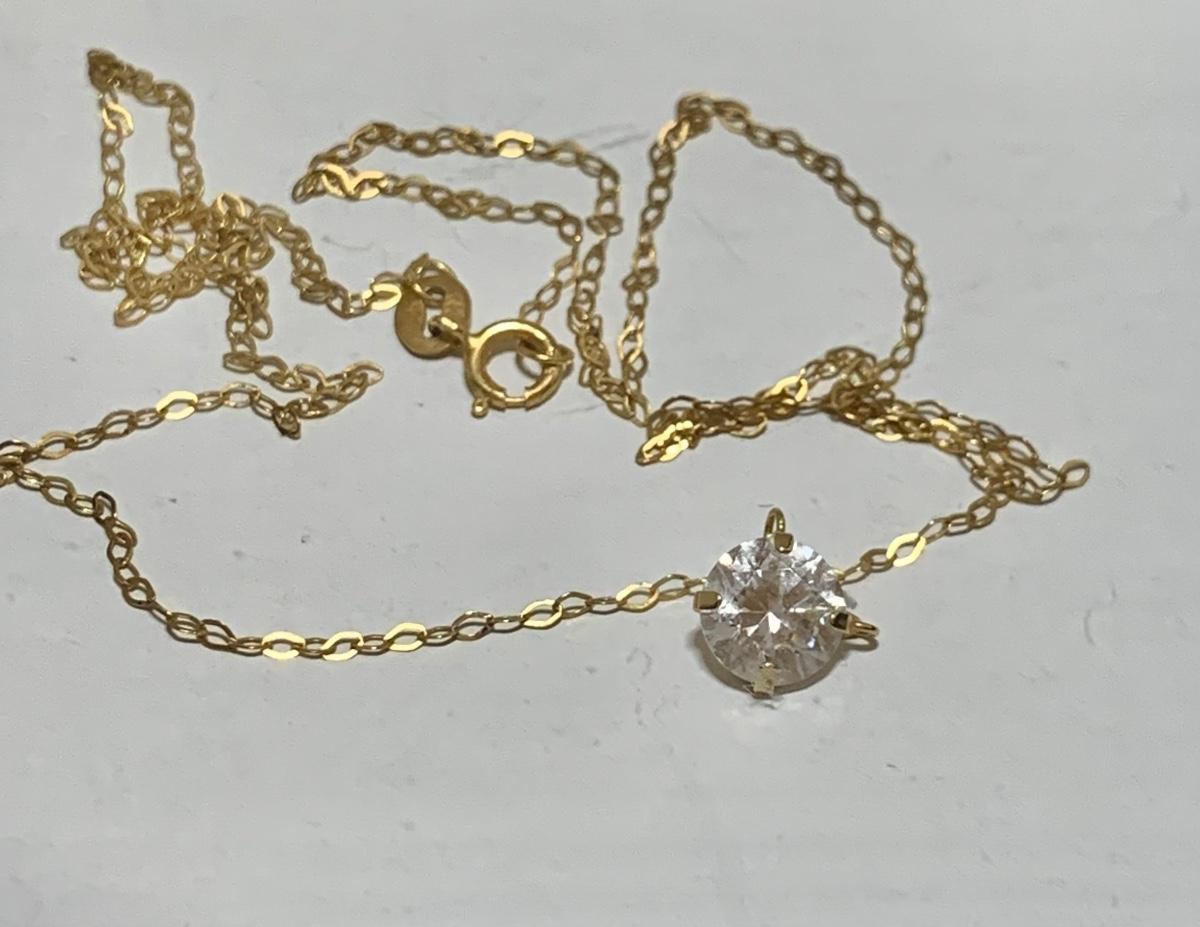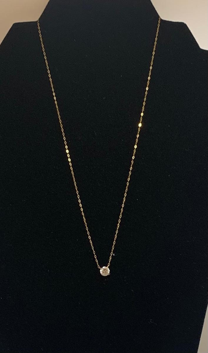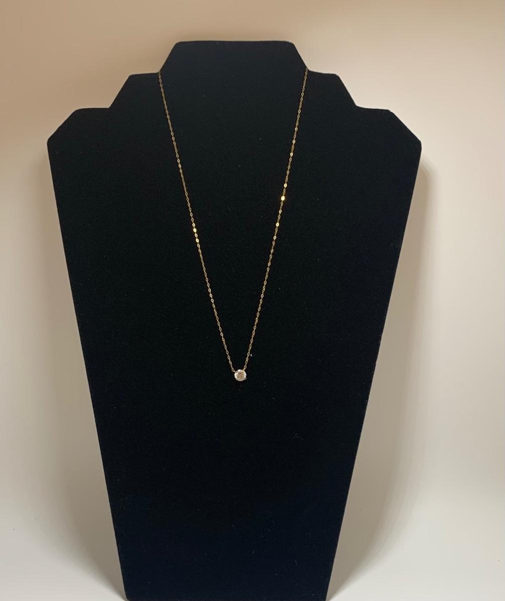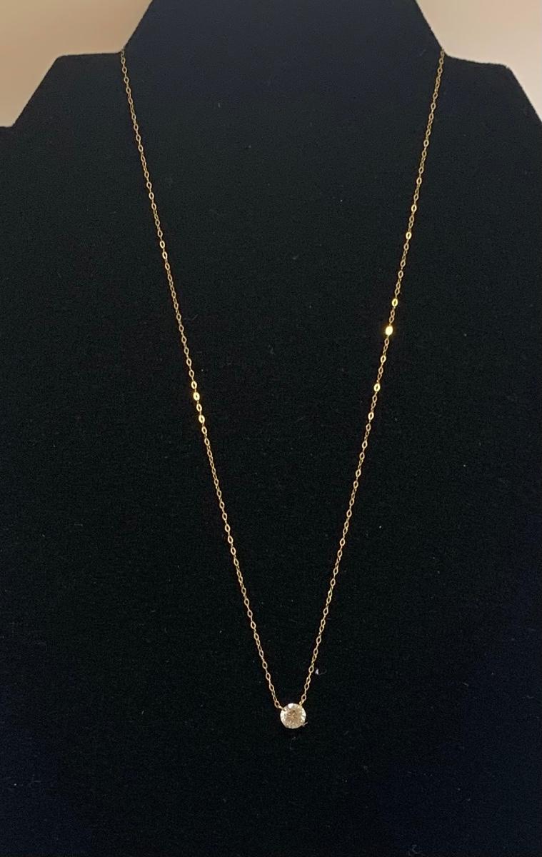 94:  14K JCM CZ single stone 18” fine chain necklace