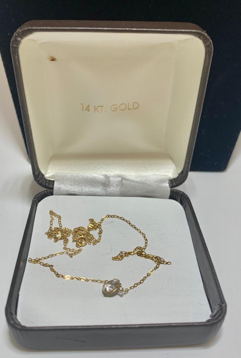.8g 14K JCM CZ single stone 18” fine chain necklace looks new in box. Please see all pictures as they are the best representation of the items. The pictures show condition, measurements if taken, and what is included in the lot. Due to the large amount that we photograph and the time frame, we are not always able to take measurements. All items unless noted, are pre-owned and have been used.