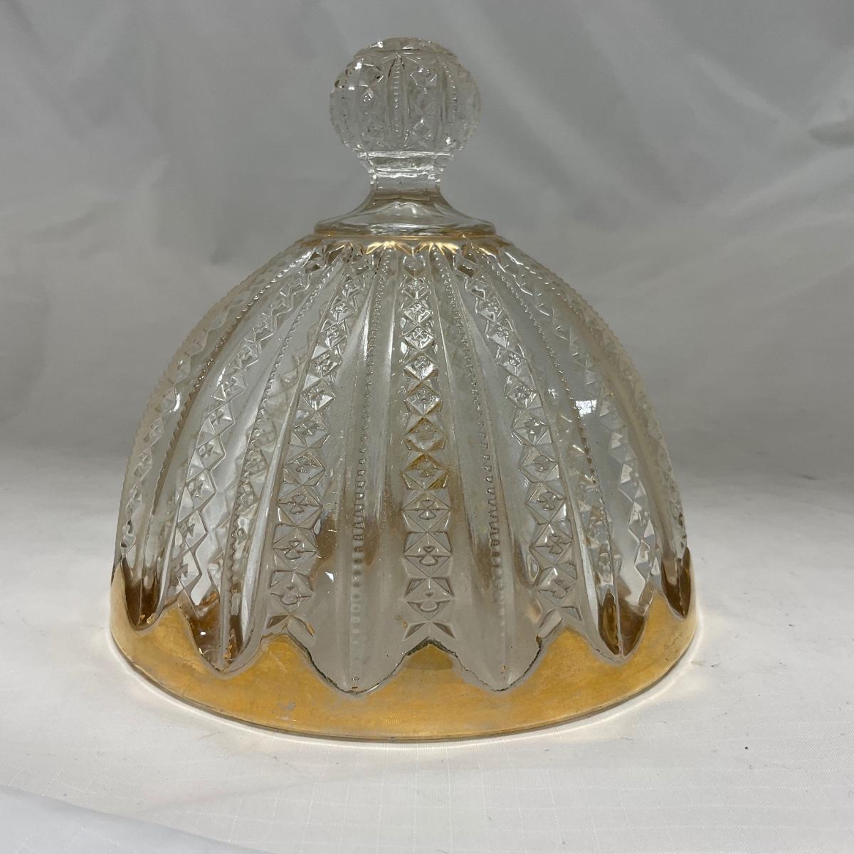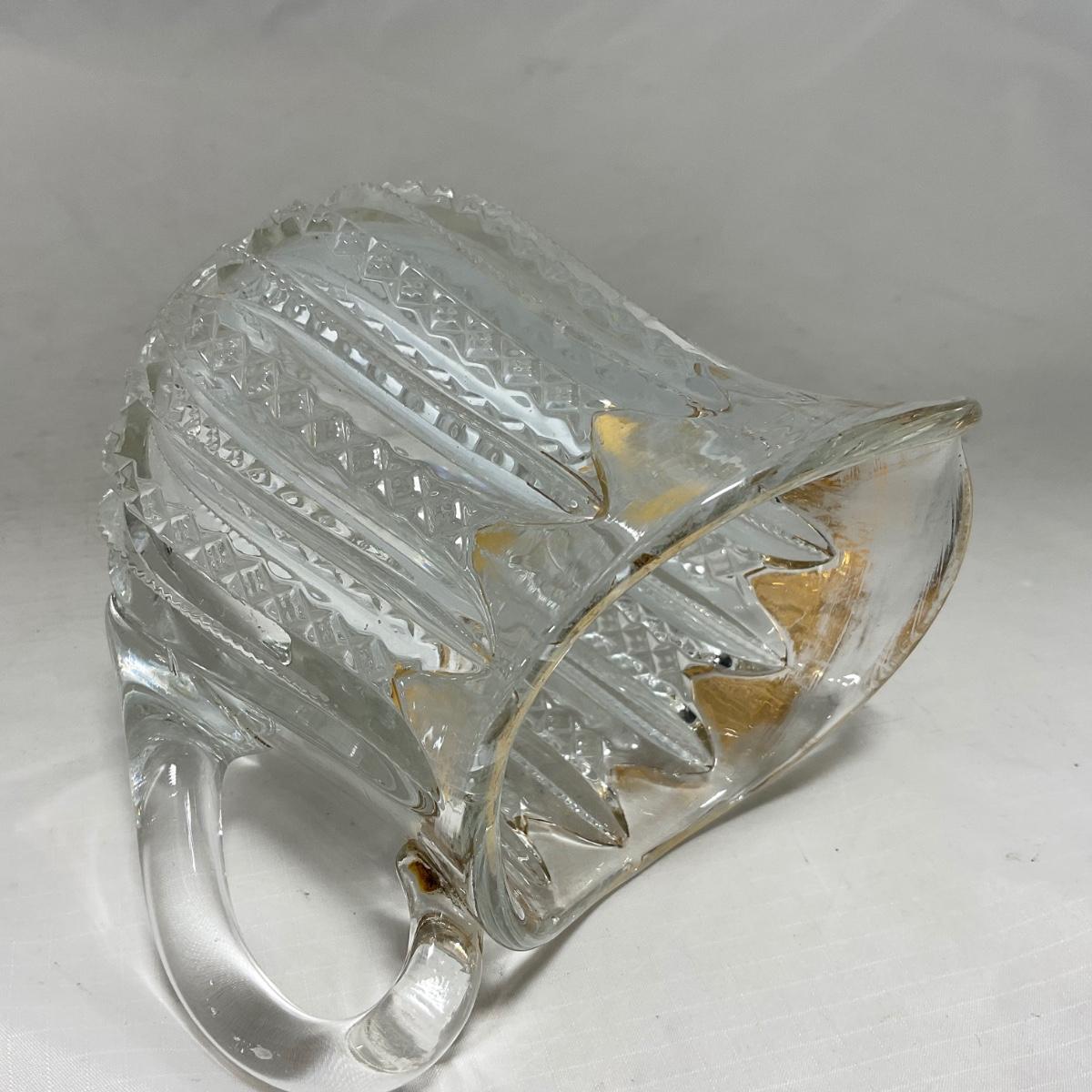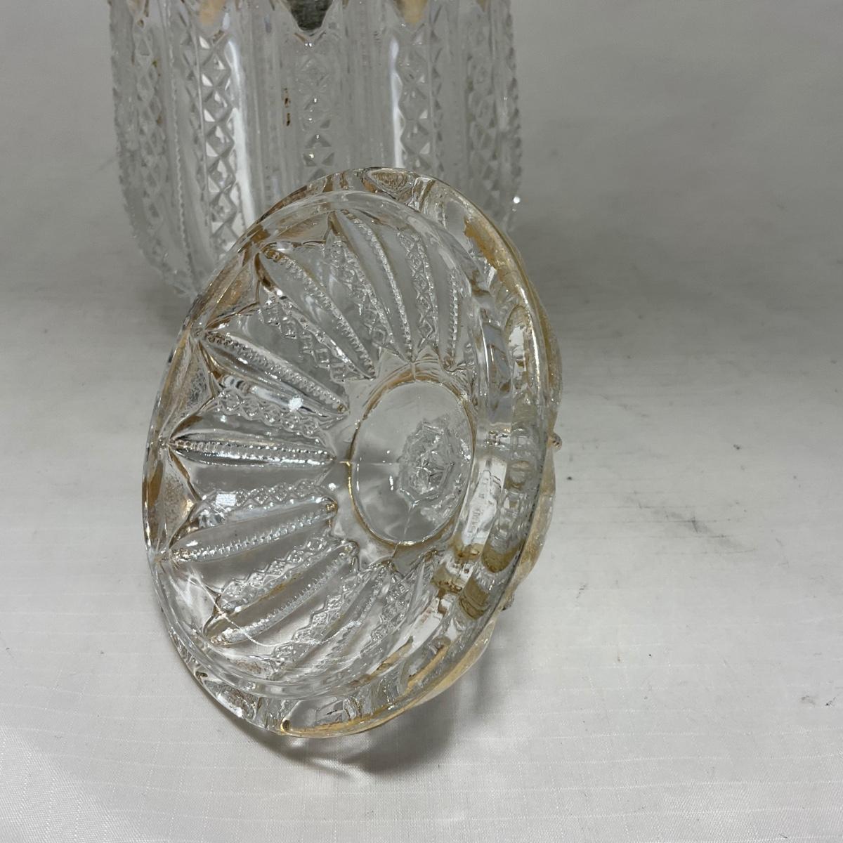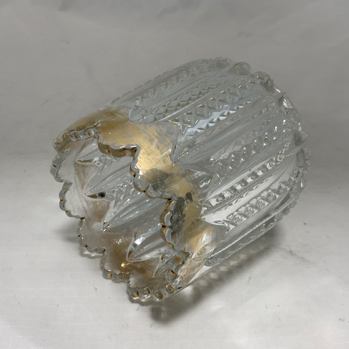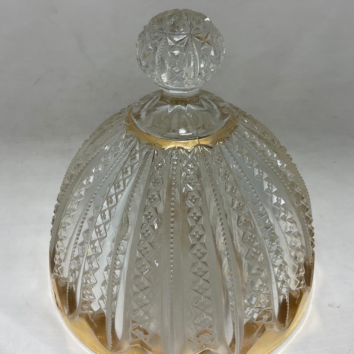 Clear glass with gold accents set. With gold accents and a cross checked type pattern this set has a classic elegant look. Set includes covered butter dish, lidded jar, creamer and sugar set. Please see photos for details and condition. ::: Shipping is available on this lot. If you require shipping you must let us know at the close of the auction. We will coordinate with you after the item has been won. Shipping fees will include insurance up to or exceeding the value of all items being mailed. If you have any questions regarding this lot please contact the auctioneer either via this website, by direct email or by phone. PICK UP TIMES and other important information can be found in the TERMS and DESCRIPTION of the auction. Please take a look for pertinent information. Thanks!