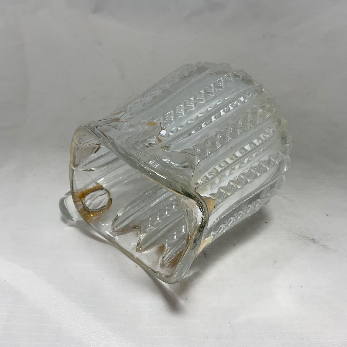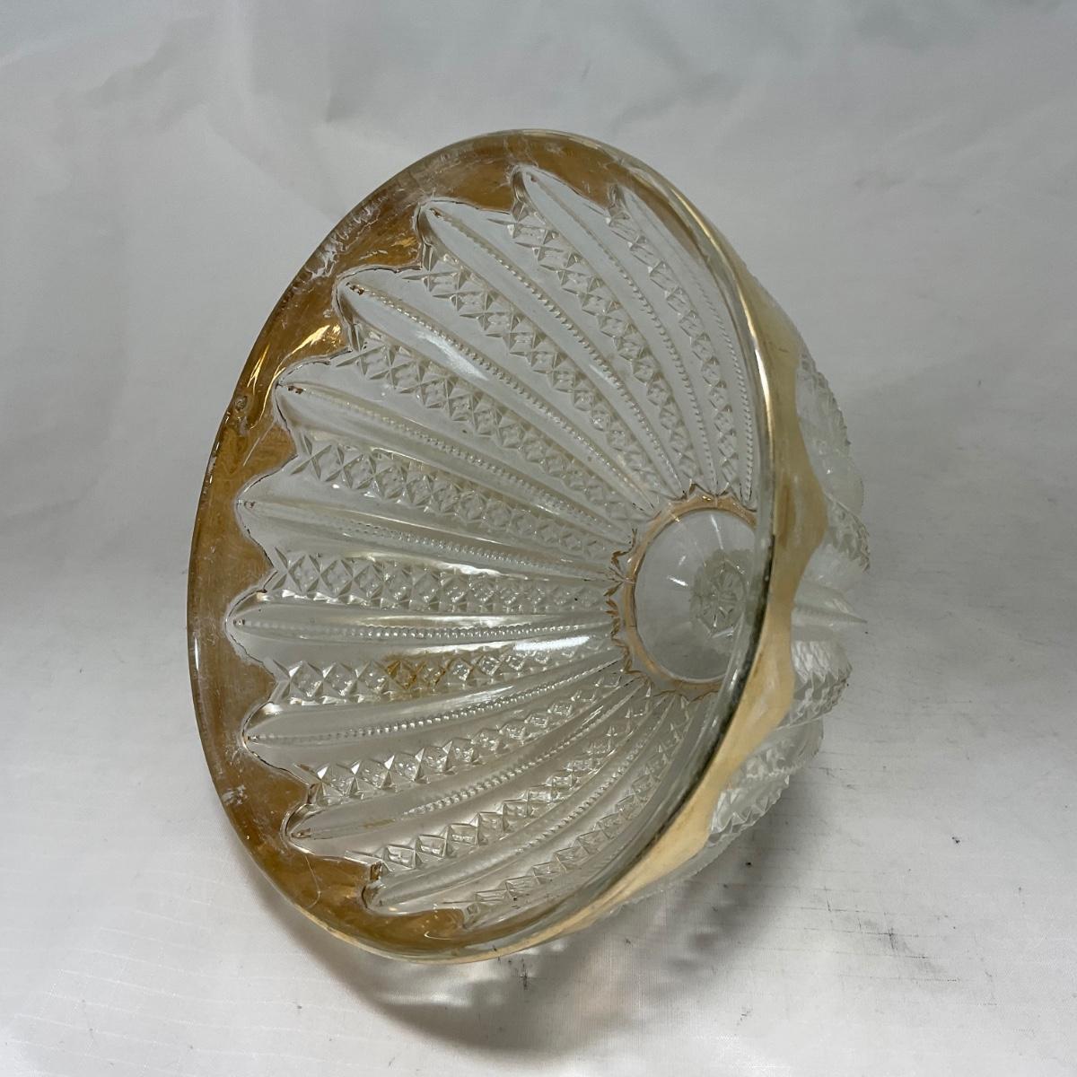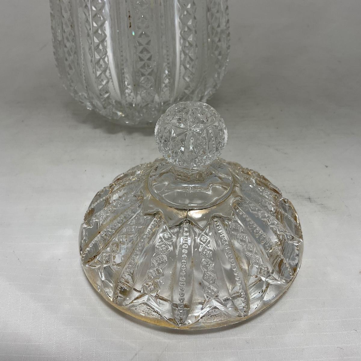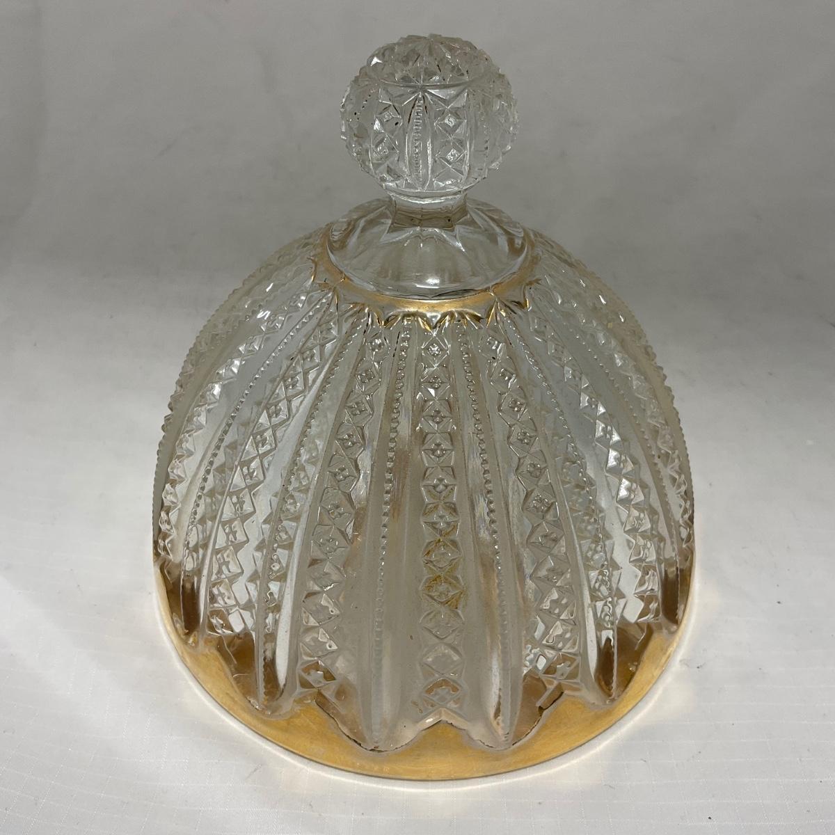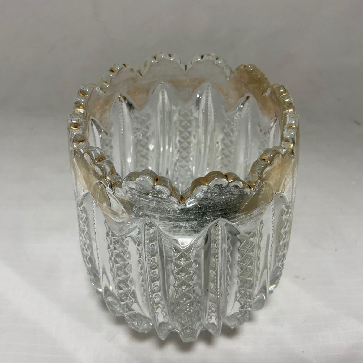 Clear glass with gold accents set. With gold accents and a cross checked type pattern this set has a classic elegant look. Set includes covered butter dish, lidded jar, creamer and sugar set. Please see photos for details and condition. ::: Shipping is available on this lot. If you require shipping you must let us know at the close of the auction. We will coordinate with you after the item has been won. Shipping fees will include insurance up to or exceeding the value of all items being mailed. If you have any questions regarding this lot please contact the auctioneer either via this website, by direct email or by phone. PICK UP TIMES and other important information can be found in the TERMS and DESCRIPTION of the auction. Please take a look for pertinent information. Thanks!