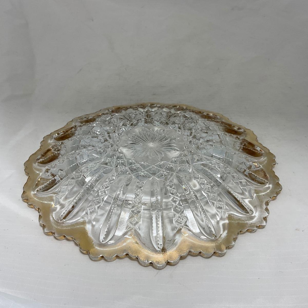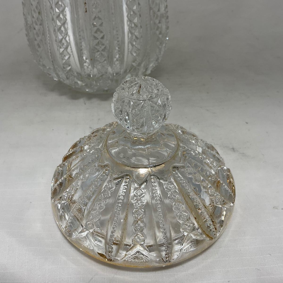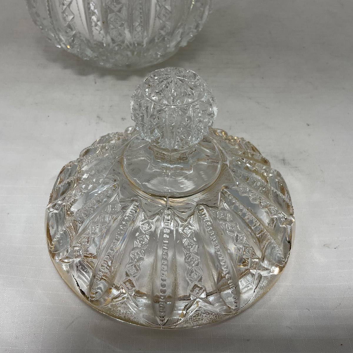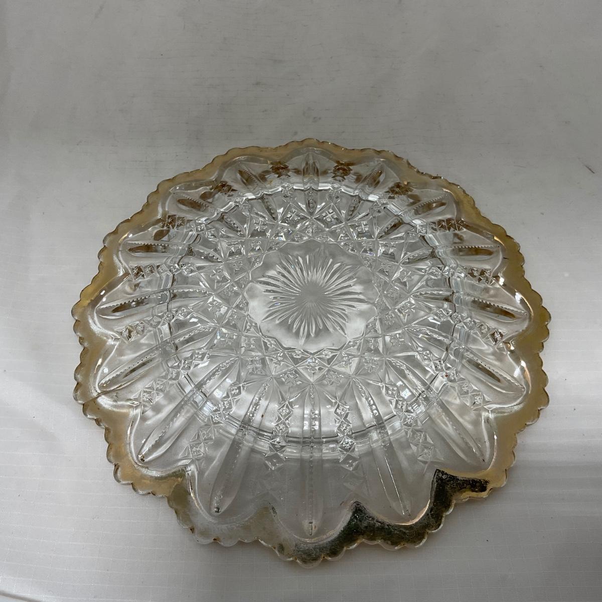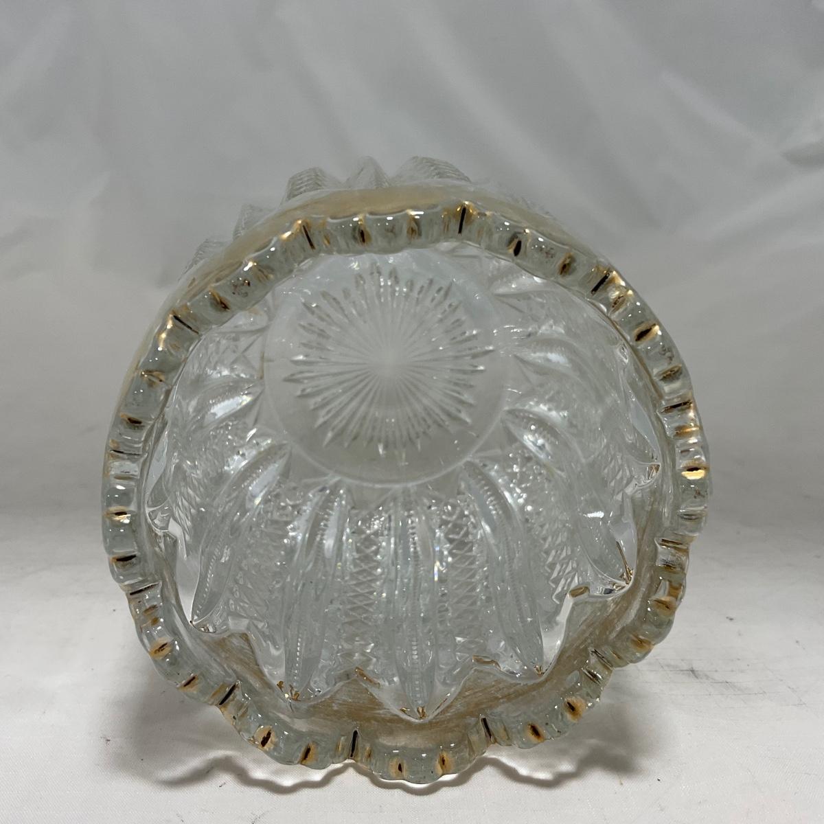 Clear glass with gold accents set. With gold accents and a cross checked type pattern this set has a classic elegant look. Set includes covered butter dish, lidded jar, creamer and sugar set. Please see photos for details and condition. ::: Shipping is available on this lot. If you require shipping you must let us know at the close of the auction. We will coordinate with you after the item has been won. Shipping fees will include insurance up to or exceeding the value of all items being mailed. If you have any questions regarding this lot please contact the auctioneer either via this website, by direct email or by phone. PICK UP TIMES and other important information can be found in the TERMS and DESCRIPTION of the auction. Please take a look for pertinent information. Thanks!