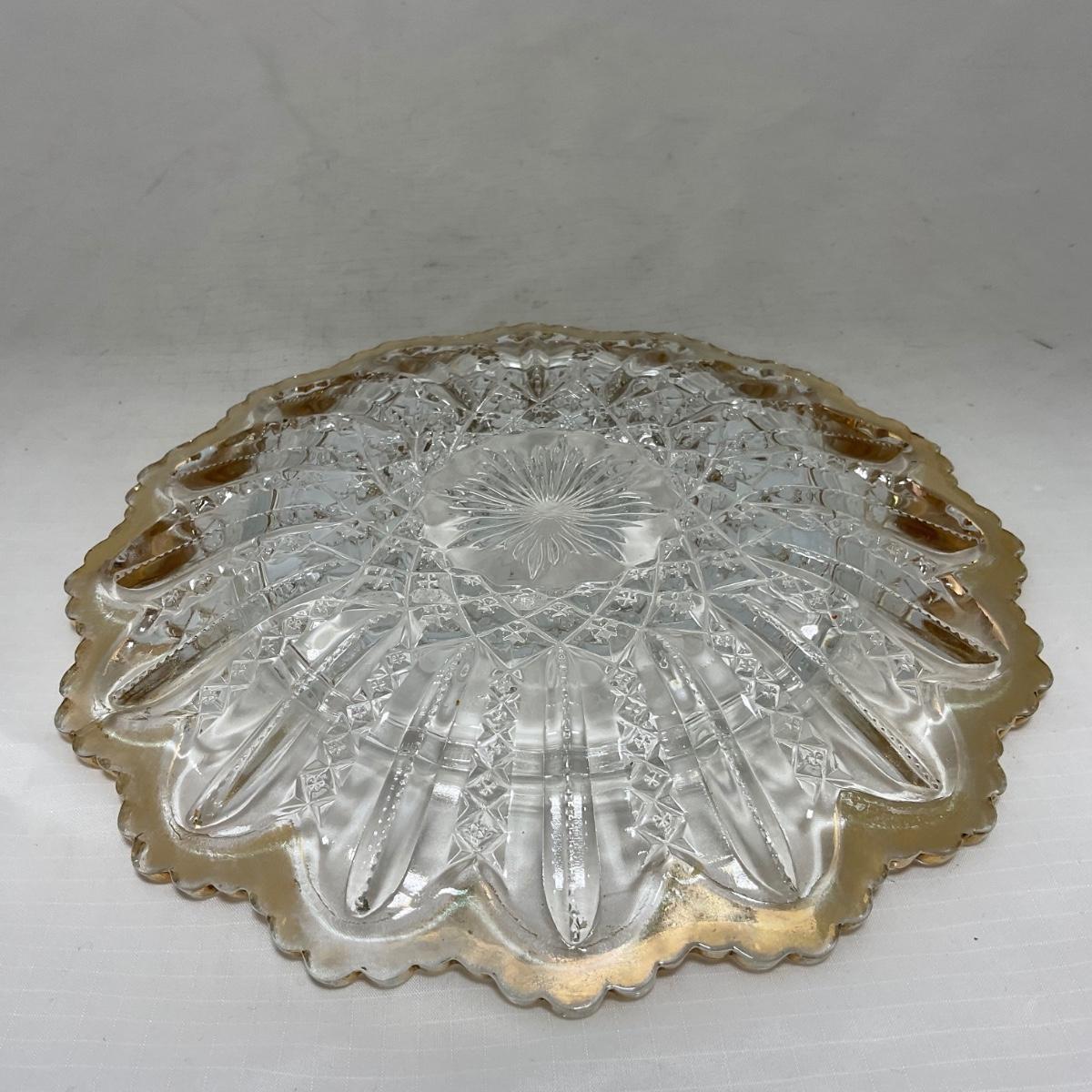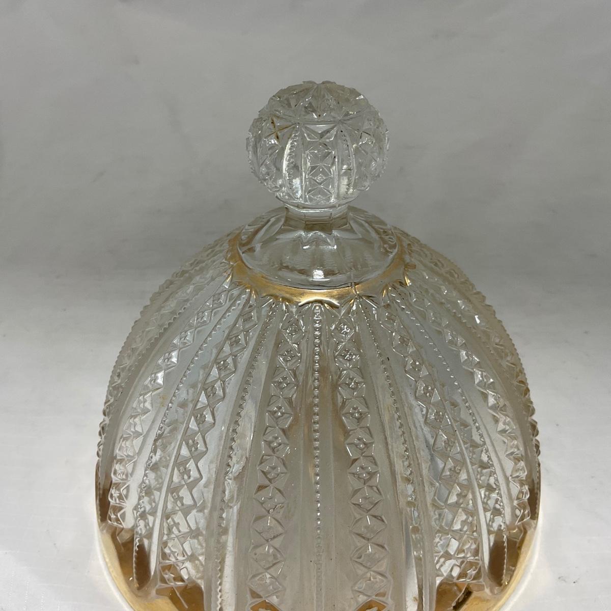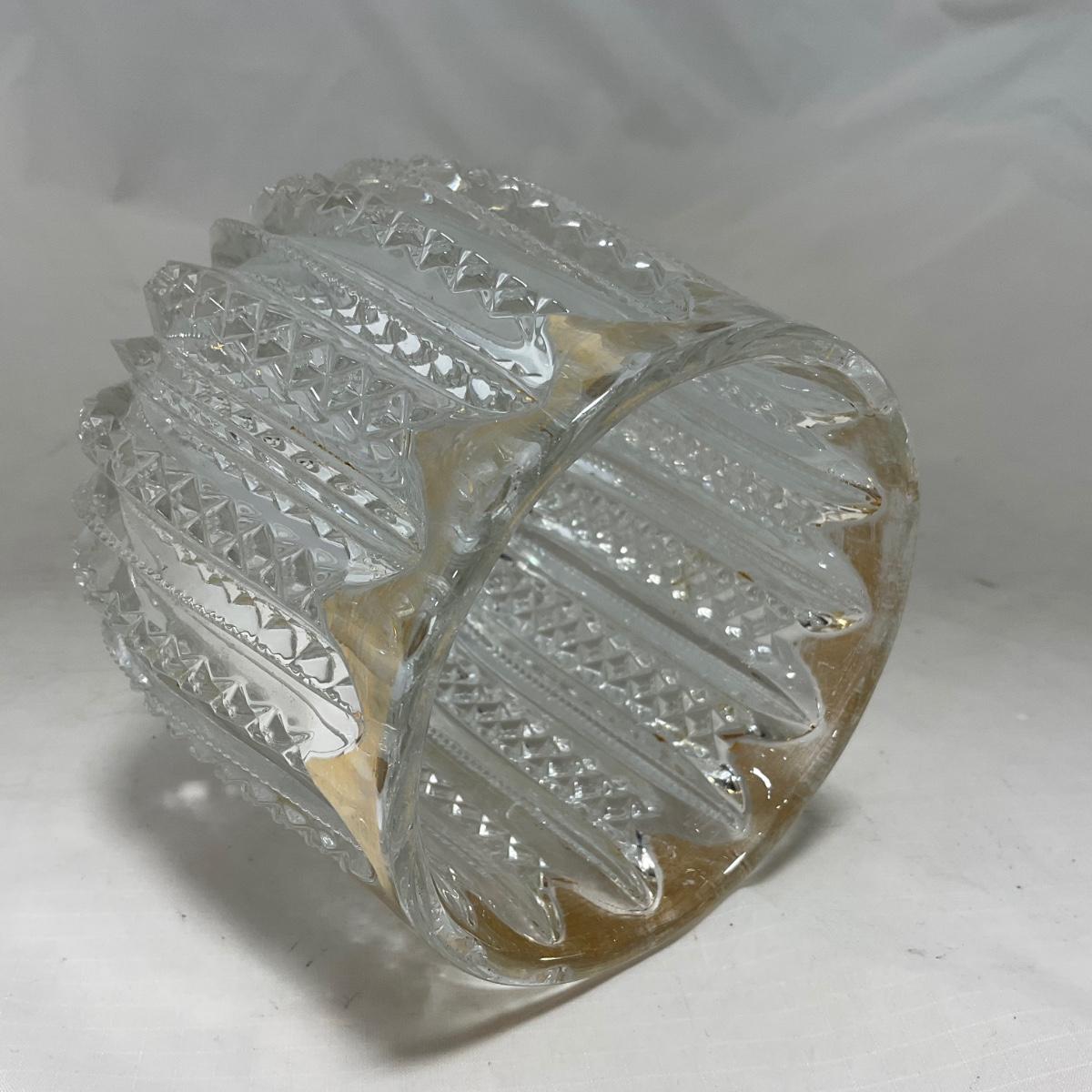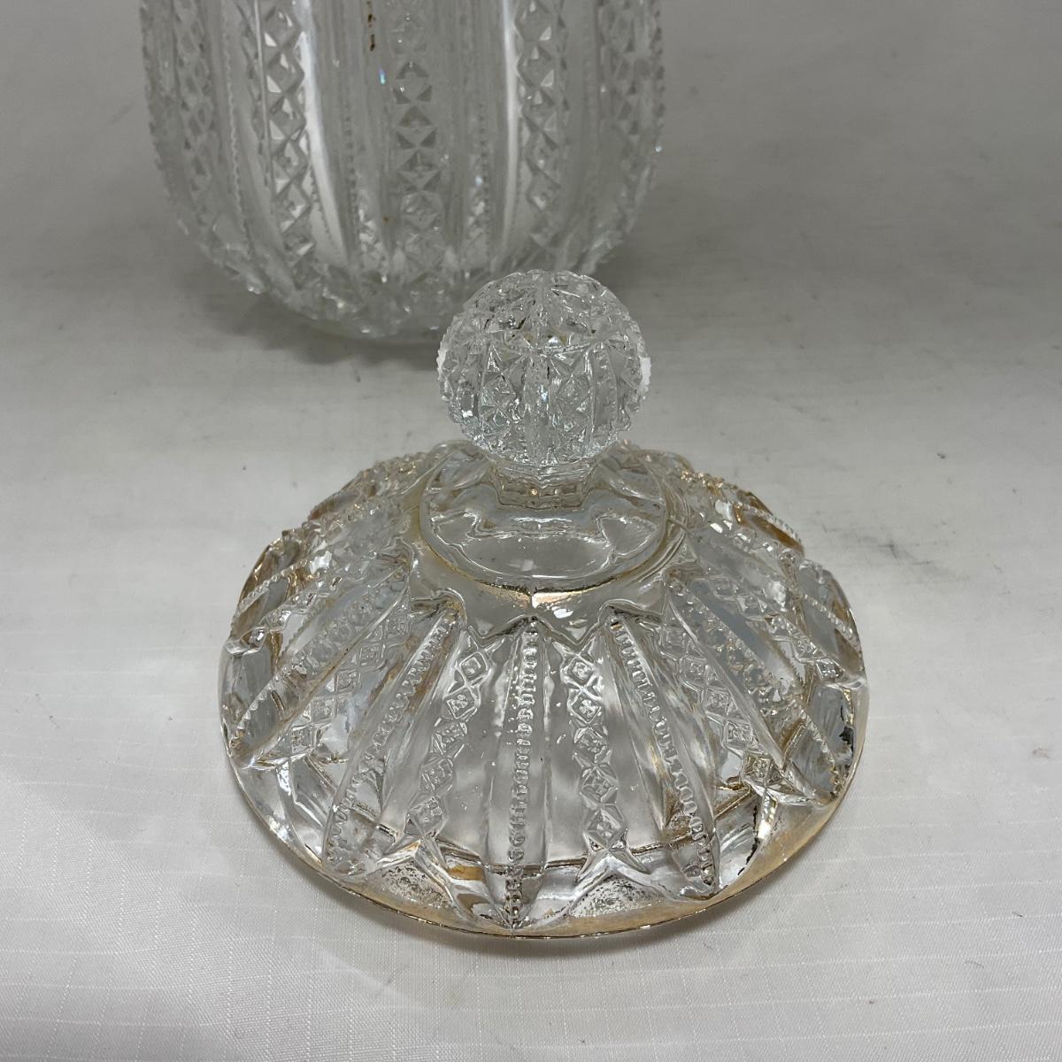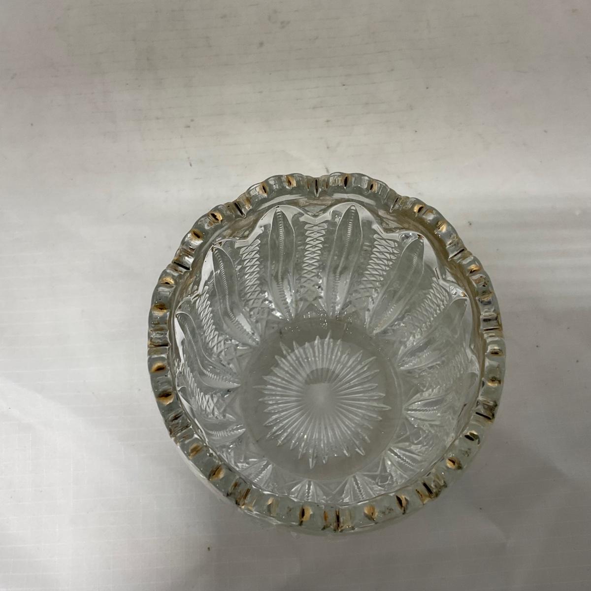 Clear glass with gold accents set. With gold accents and a cross checked type pattern this set has a classic elegant look. Set includes covered butter dish, lidded jar, creamer and sugar set. Please see photos for details and condition. ::: Shipping is available on this lot. If you require shipping you must let us know at the close of the auction. We will coordinate with you after the item has been won. Shipping fees will include insurance up to or exceeding the value of all items being mailed. If you have any questions regarding this lot please contact the auctioneer either via this website, by direct email or by phone. PICK UP TIMES and other important information can be found in the TERMS and DESCRIPTION of the auction. Please take a look for pertinent information. Thanks!