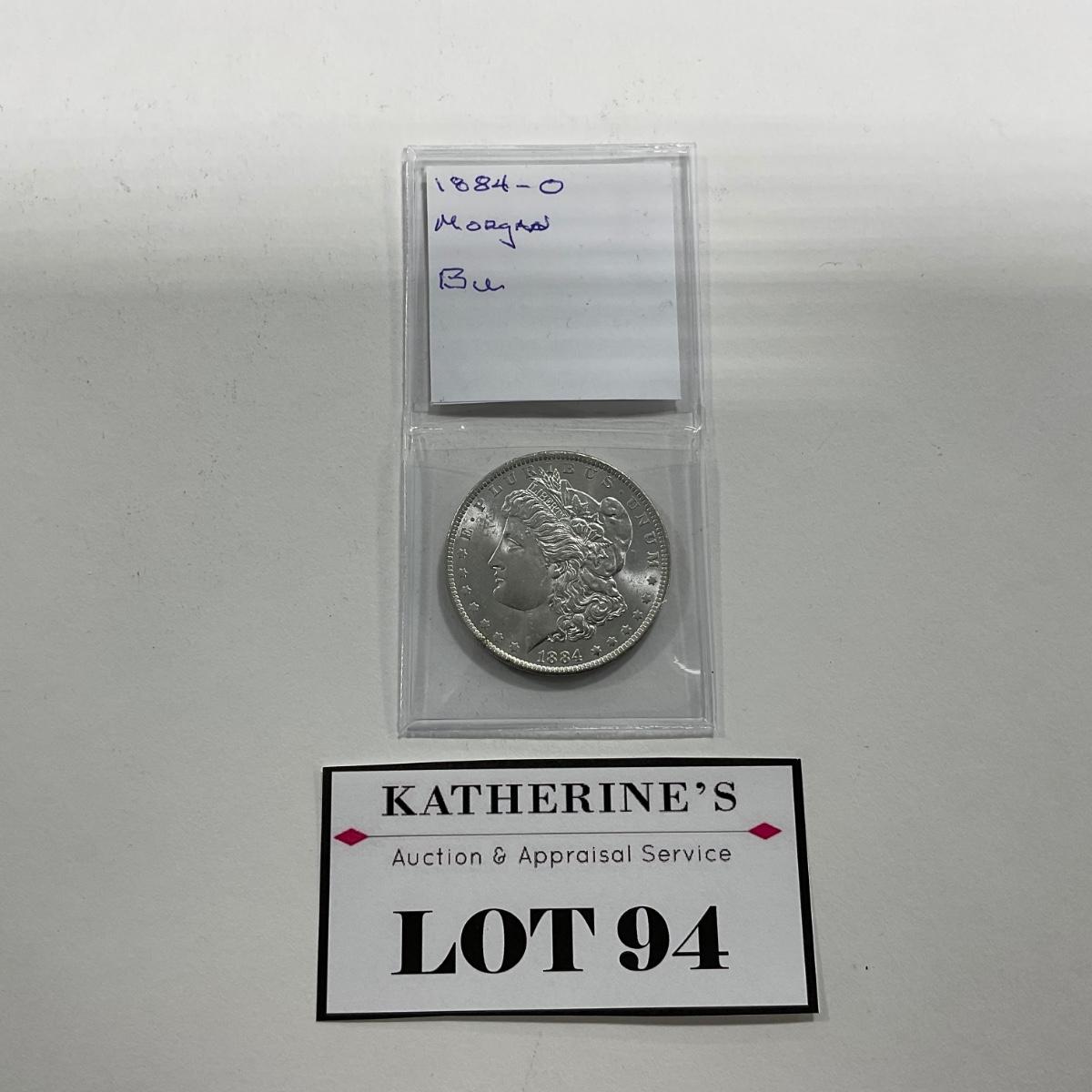 One 1884-O Morgan Dollar coin. Please see photos for details and condition. ::: Shipping is available on this lot. If you require shipping you must let us know at the close of the auction. We will coordinate with you after the item has been won. Shipping fees will include insurance up to or exceeding the value of all items being mailed. If you have any questions regarding this lot please contact the auctioneer either via this website, by direct email or by phone. PICK UP TIMES and other important information can be found in the TERMS and DESCRIPTION of the auction. Please take a look for pertinent information. Thanks!