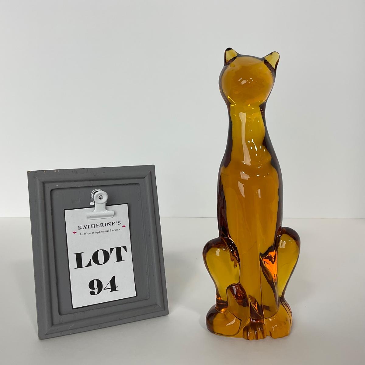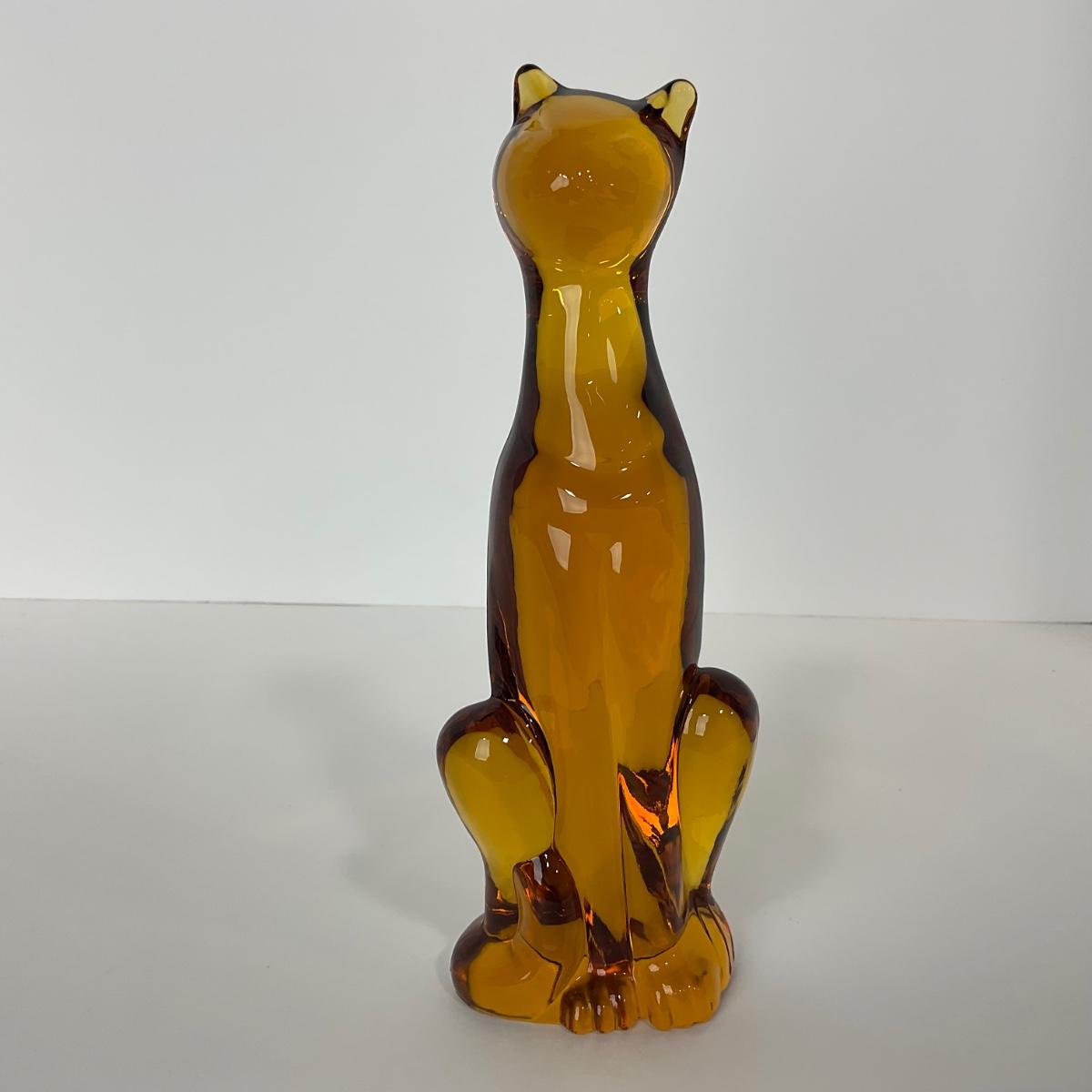 One Viking epic honey amber cat 3 inches wide by 8 1/2 inches tall. This piece has no damage, and appears to be in great shape with no visable chips, cracks, or broken pieces. Please see photos for details and condition. Any condition statement is given as a courtesy to a client, is an opinion, and should not be treated as a statement of fact. Reference to condition written, oral or within a condition report shall not be regarded as a full account of condition and may not include all defects, alterations, or restorations. Absence of a condition report does not imply a lot is flawless or lacking imperfections or damage. Katherine’s Auction & Appraisal Service shall have no responsibility for any error or omission. Returns shall not be accepted on the basis of condition. ::: Shipping is available on this lot. If you require shipping you must let us know at the close of the auction. We will coordinate with you after the item has been won. Shipping fees will include insurance up to or exceeding the value of all items being mailed. If you have any questions regarding this lot please contact the auctioneer either via this website, by direct email or by phone. PICK UP TIMES and other important information can be found in the TERMS and DESCRIPTION of the auction. Please take a look for pertinent information. Thanks!