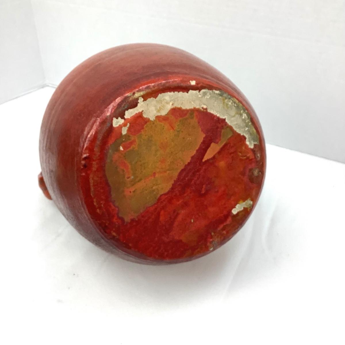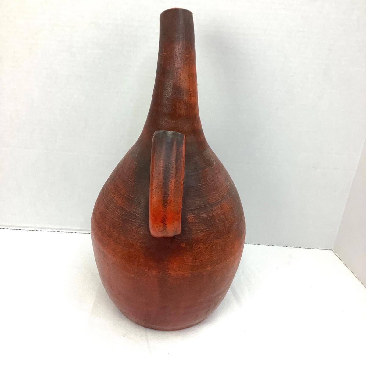 The goose neck pitcher is rust red in color, measures 16" x 7" and there is wear on the bottom of the pitcher. There is also a bowl by Noritake and plate without marks. The bowl is 4.5" x 2" and the plate is 5.25" in diameter.
