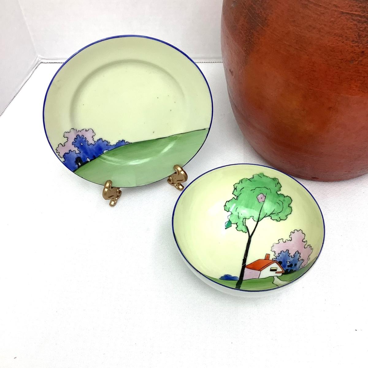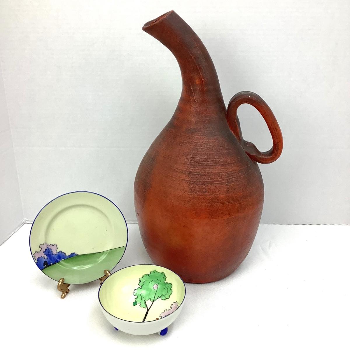 940 Artisan Goose Neck Pitcher and Clarice Cliff Style Noritake Pottery
