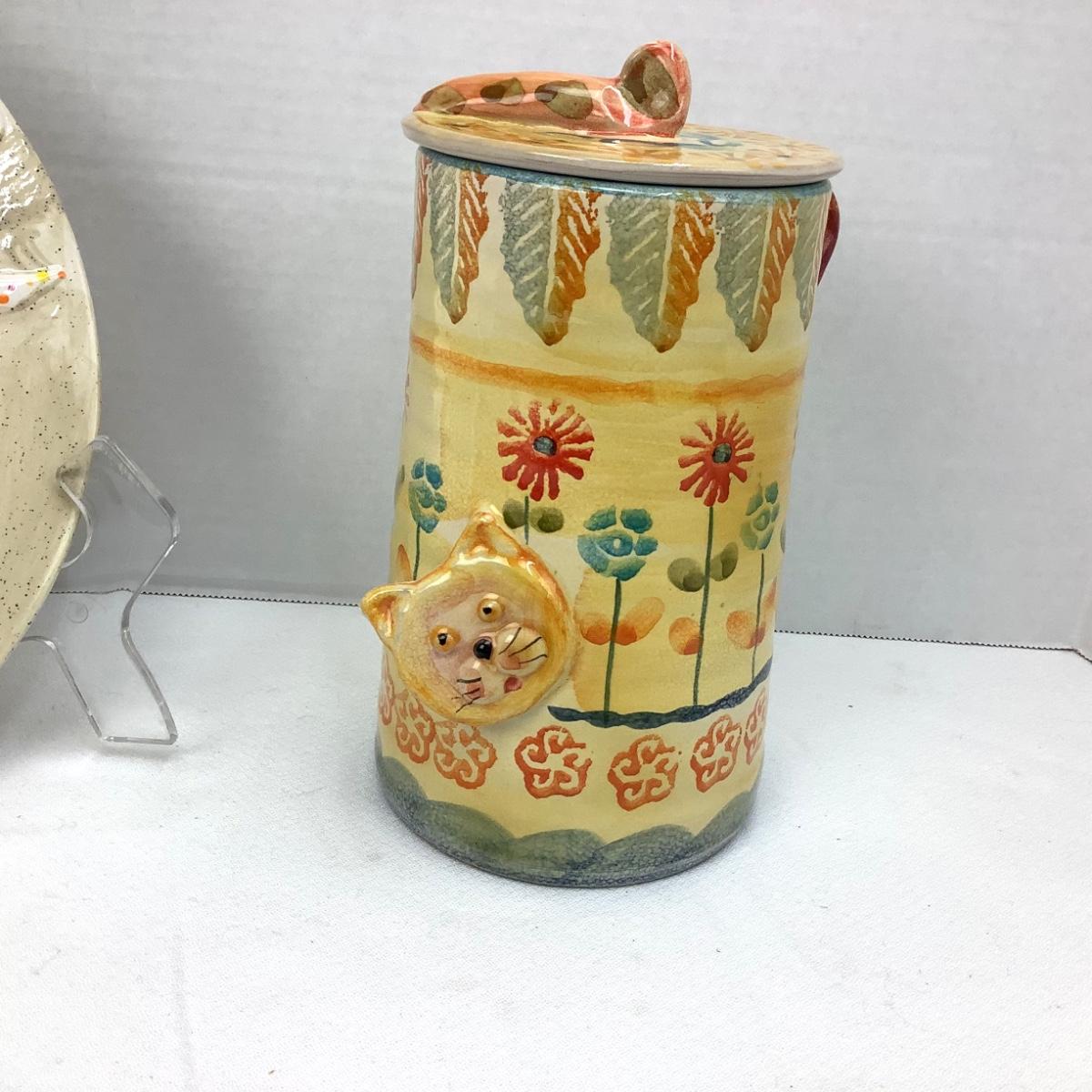 942 Italian Cat Pottery Covered Canister & Crab Plate